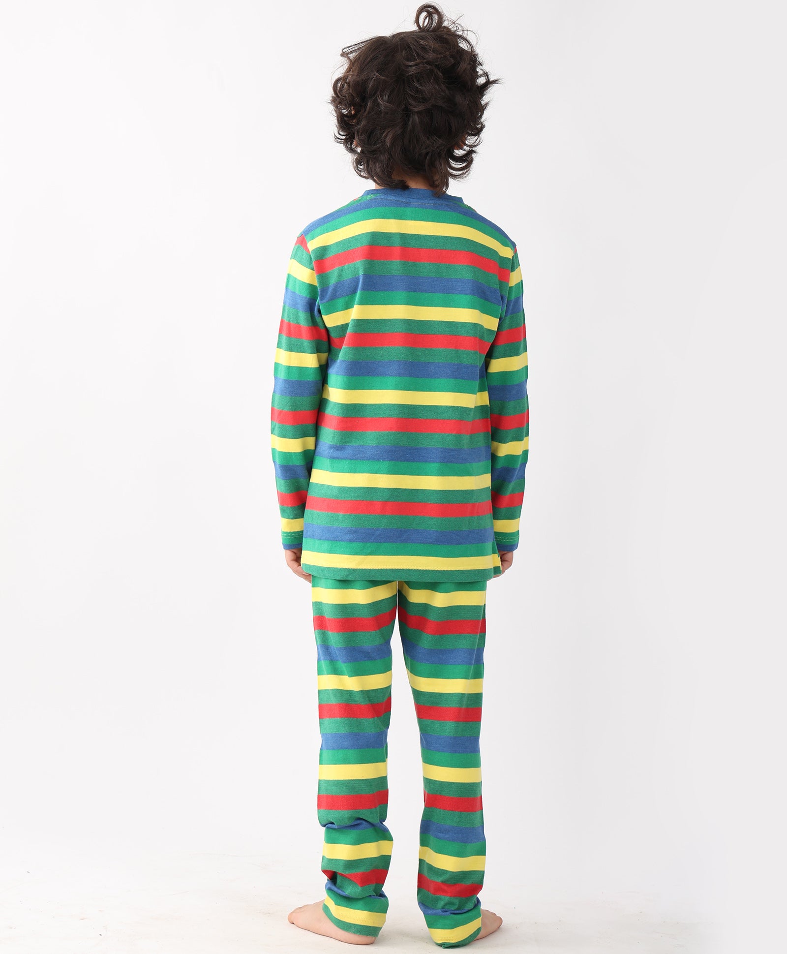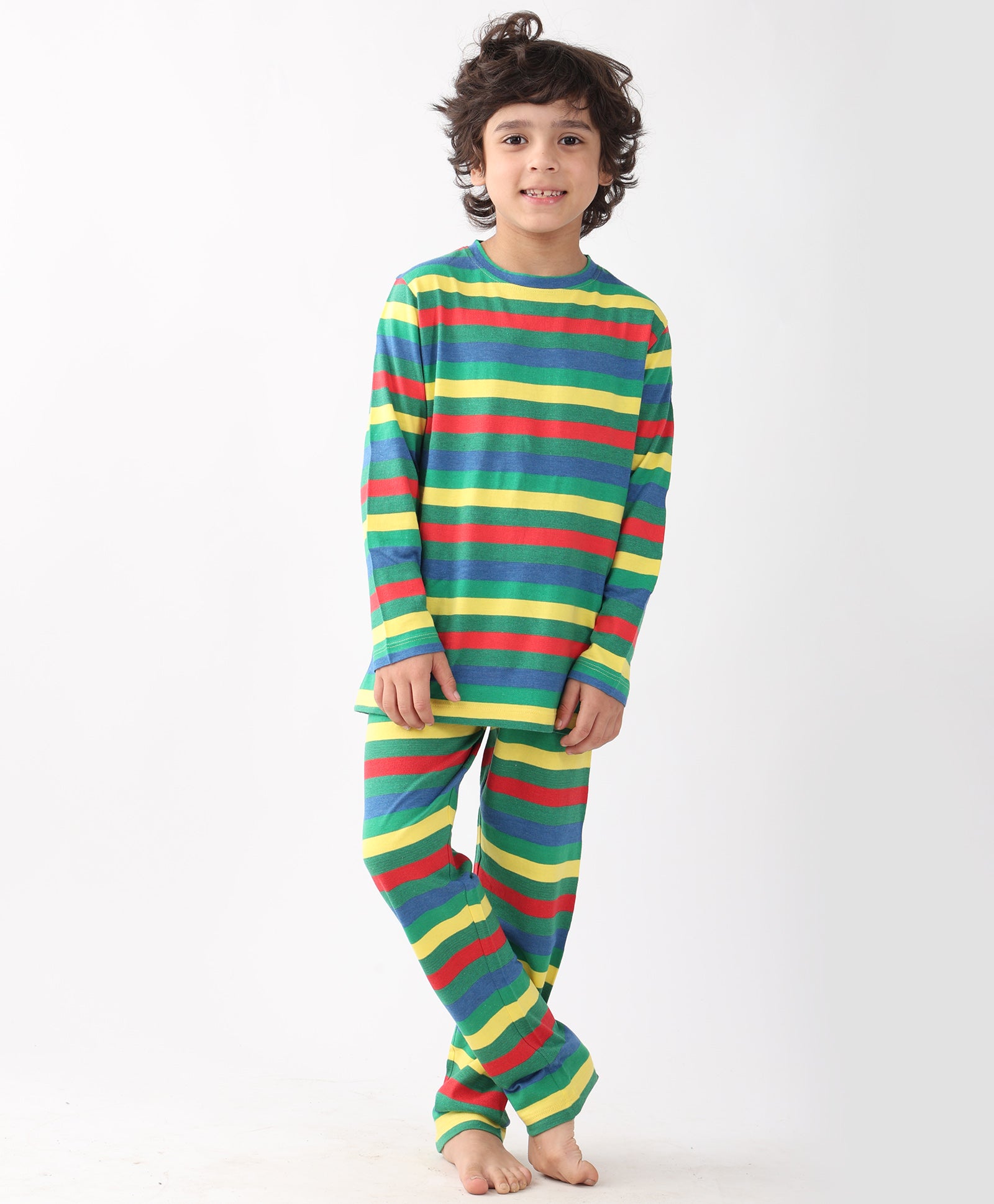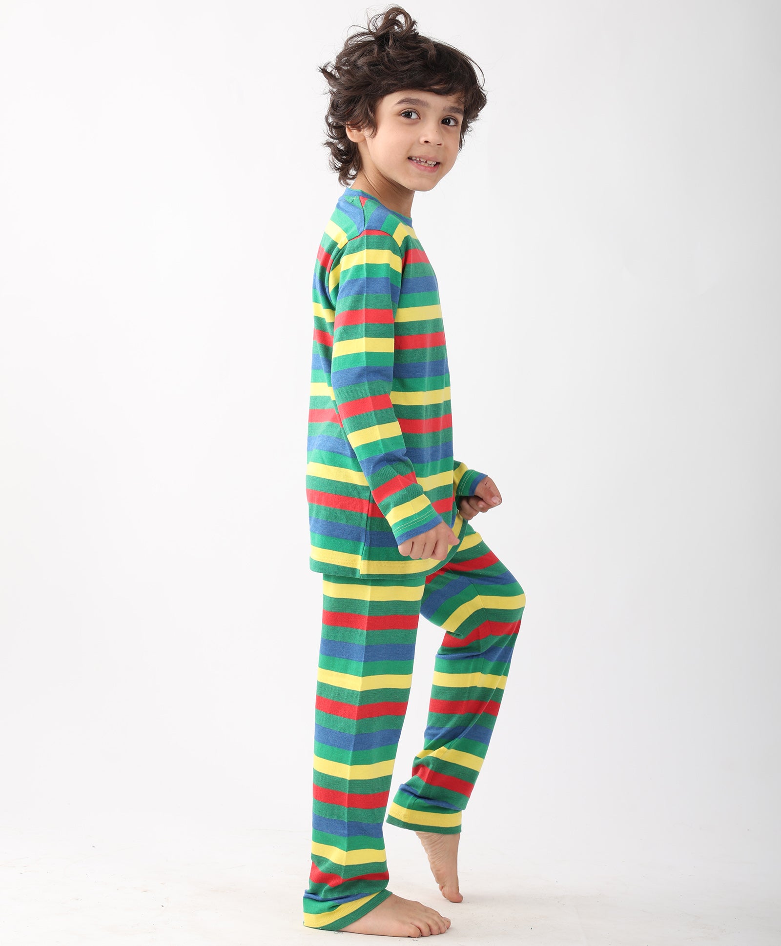 GREEN YELLOW RED STRIPE BOYS PYJAMA SET - MULTI