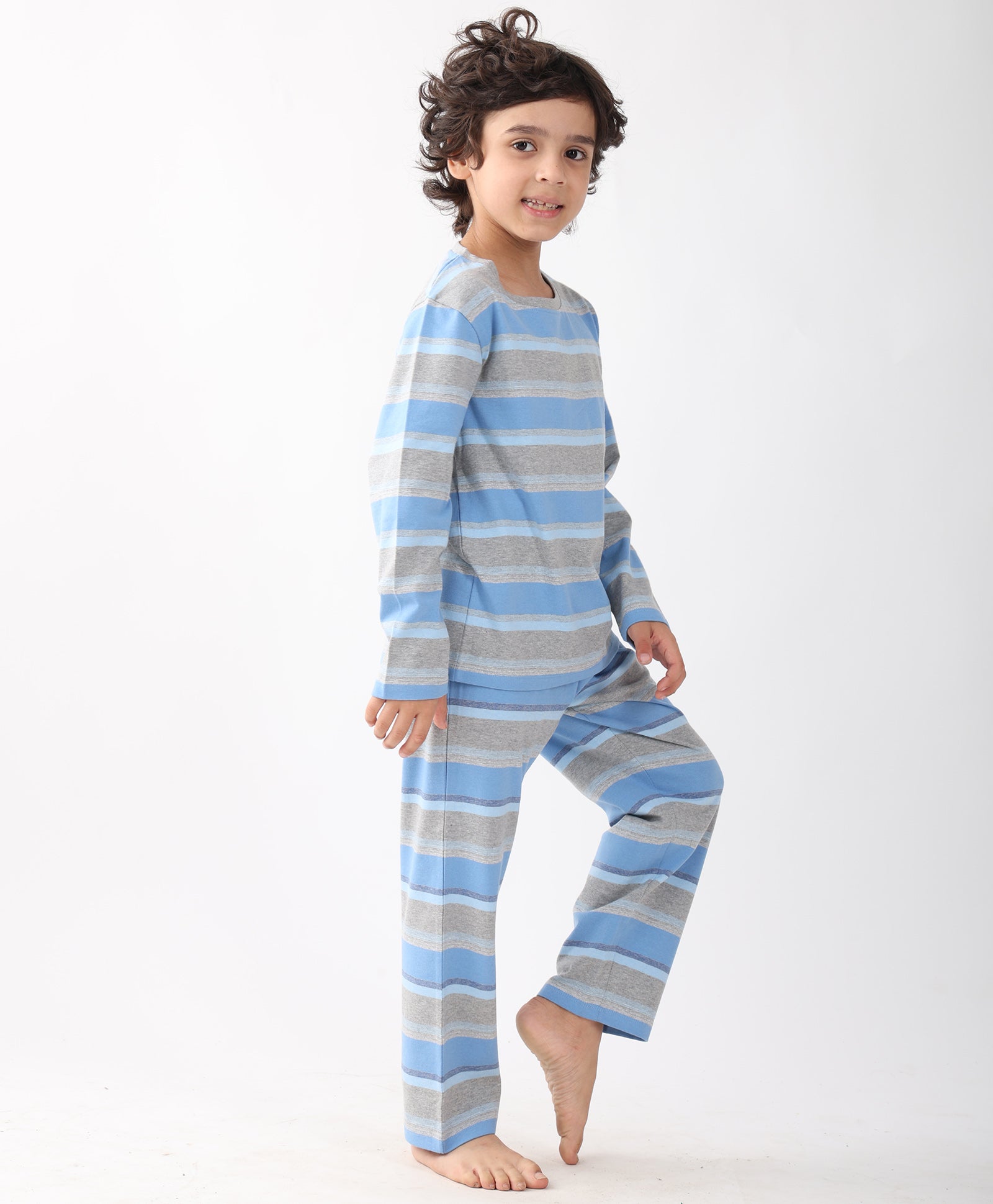GREY SKYBLUE STRIPED BOYS PYJAMA SET - MULTI