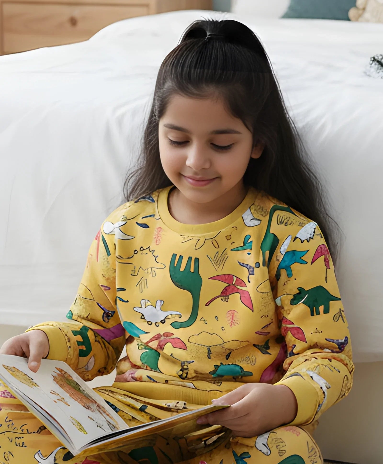 RAINING DINOSAUR GIRLS FLEECE SWEATSHIRT - YELLOW
