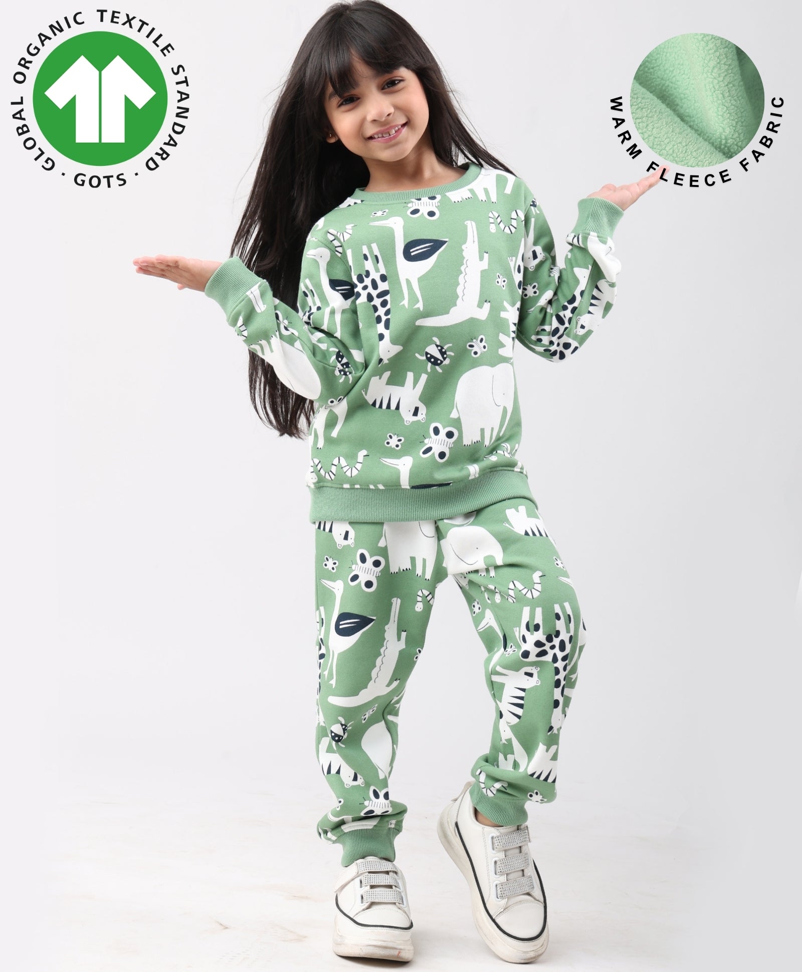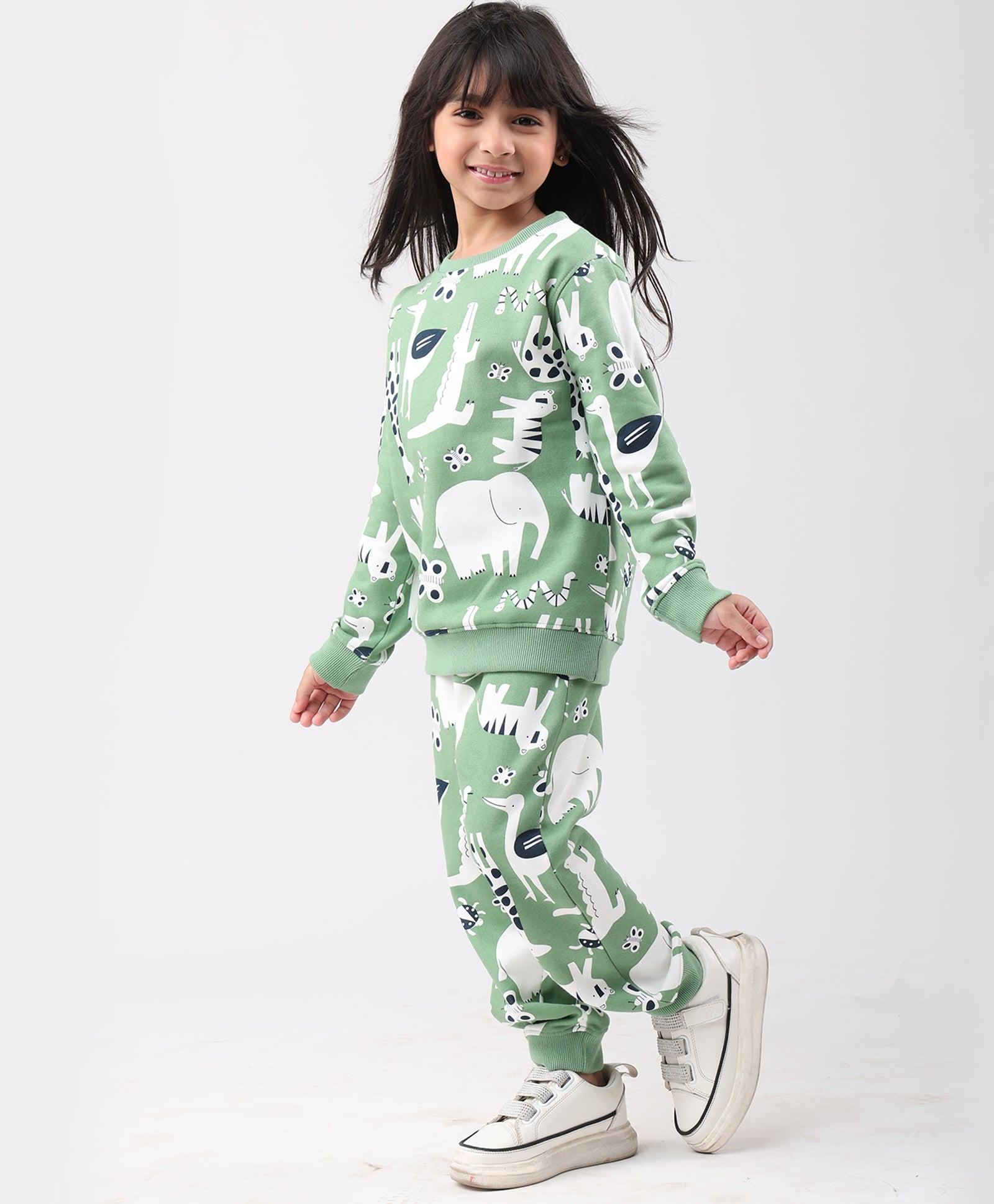 ANIMAL GREEN FLEECE GIRLS SWEATSHIRT JOGGER SET - GREEN