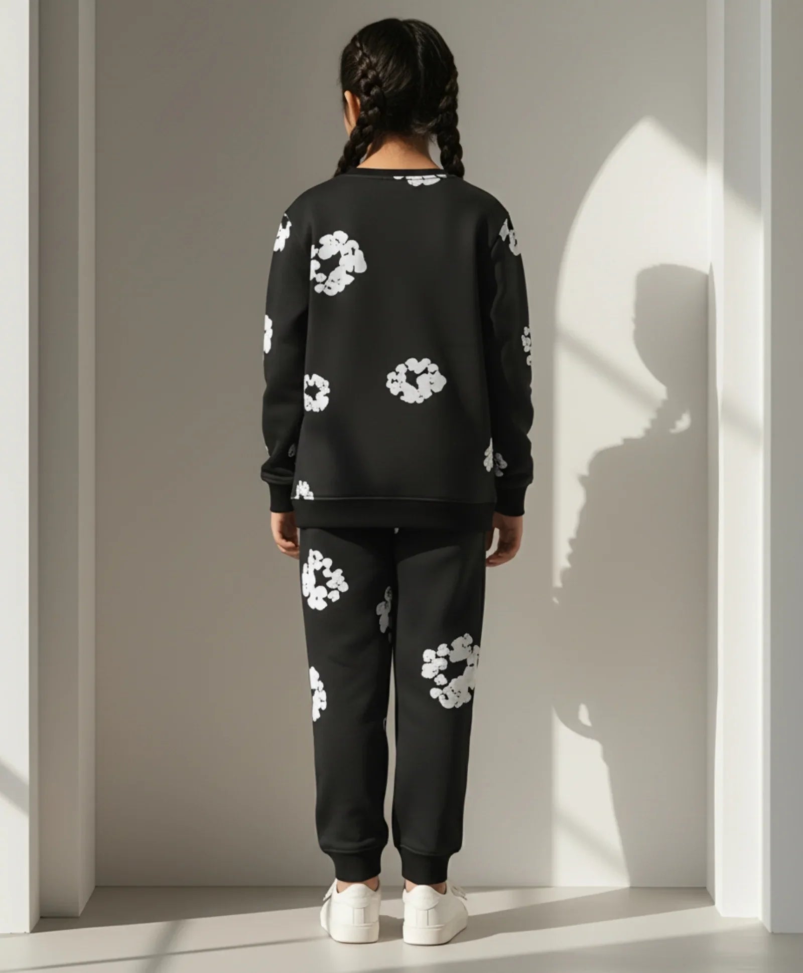 POP BLACK & WHITE GIRLS FLEECE SWEATSHIRT JOGGER WINTER SET - BLACK