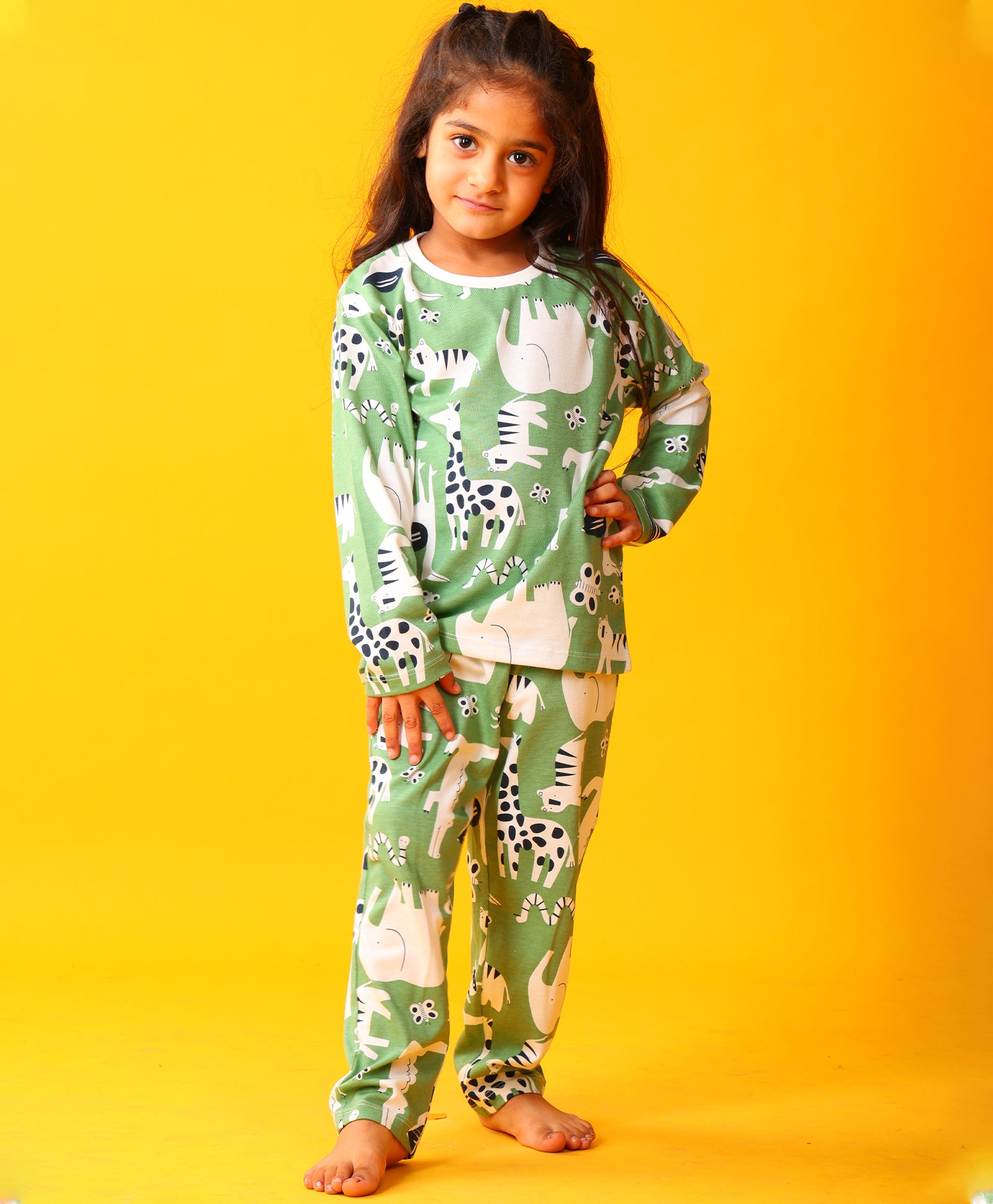 ANIMAL GREEN GIRLS LONG SLEEVE PYJAMA SET - GREEN