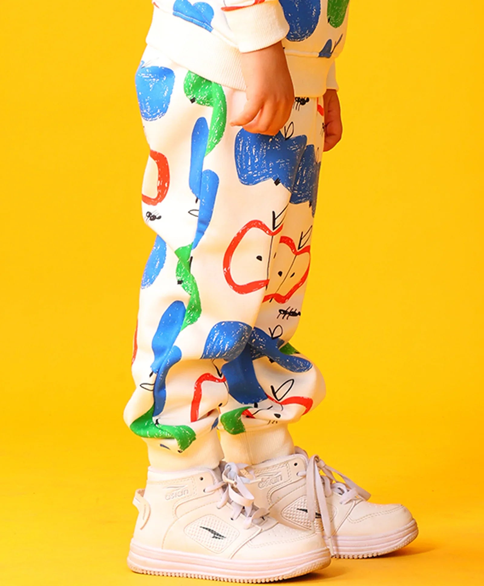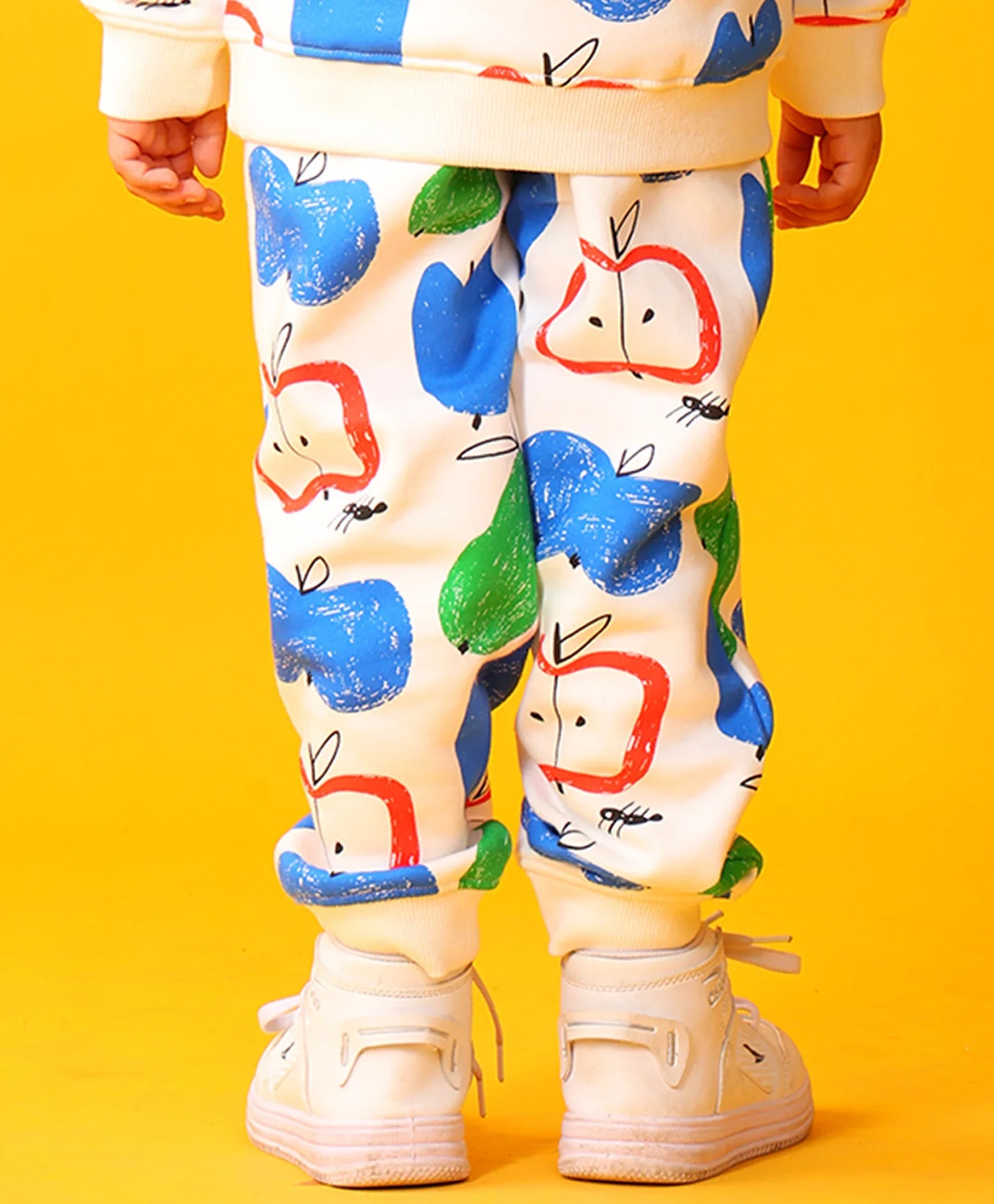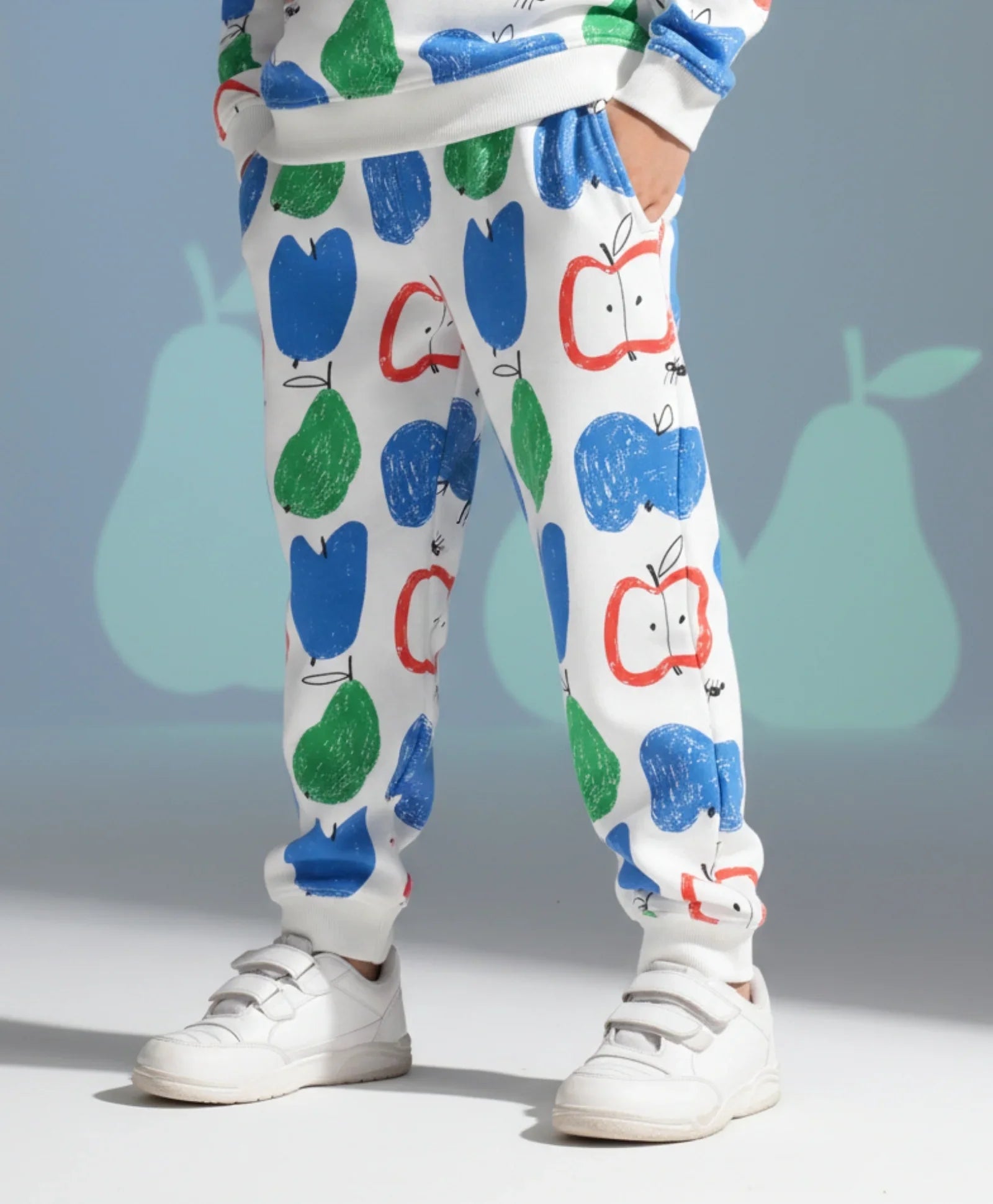 Assemble the perfect comfy look with the APPLE PEAR BOYS FLEECE JOGGER - WHITE. These fresh joggers feature a crisp, ALL OVER PRINTED design of apples and pears on white fabric. Crafted from soft FLEECE, they promise supreme warmth and a relaxed fit, adding a touch of fruity fun to his day.
