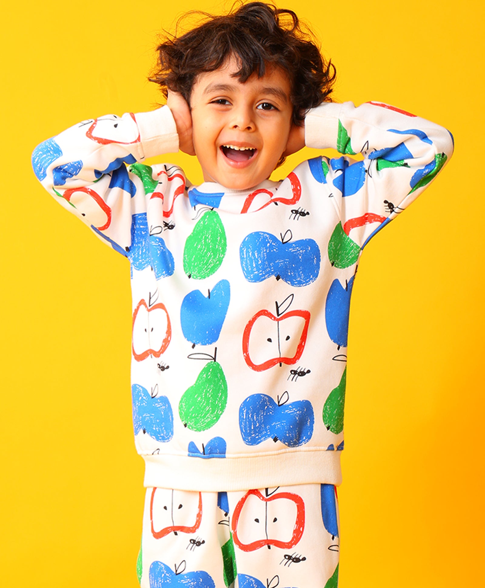APPLE PEAR BOYS FLEECE SWEATSHIRT - WHITE