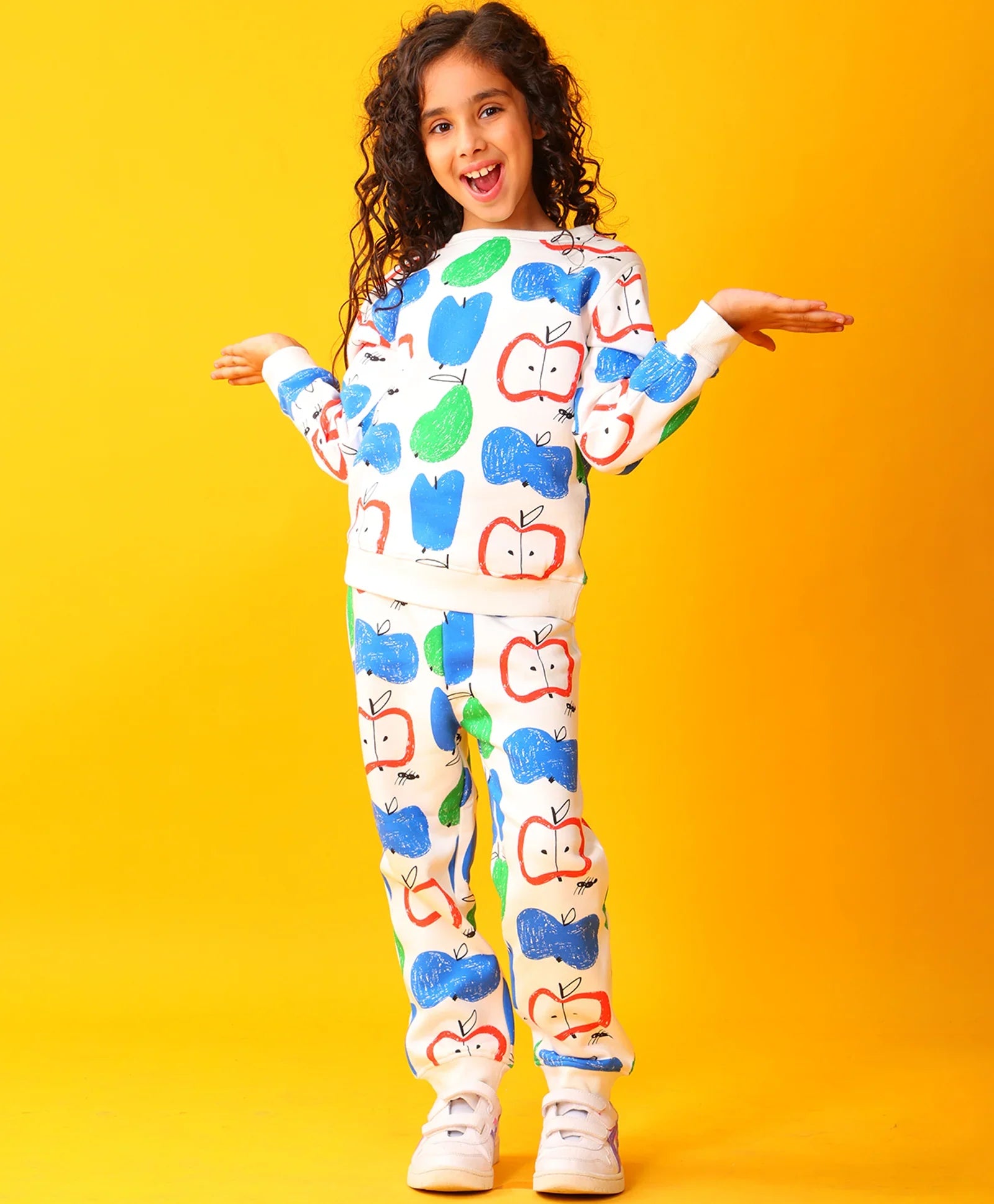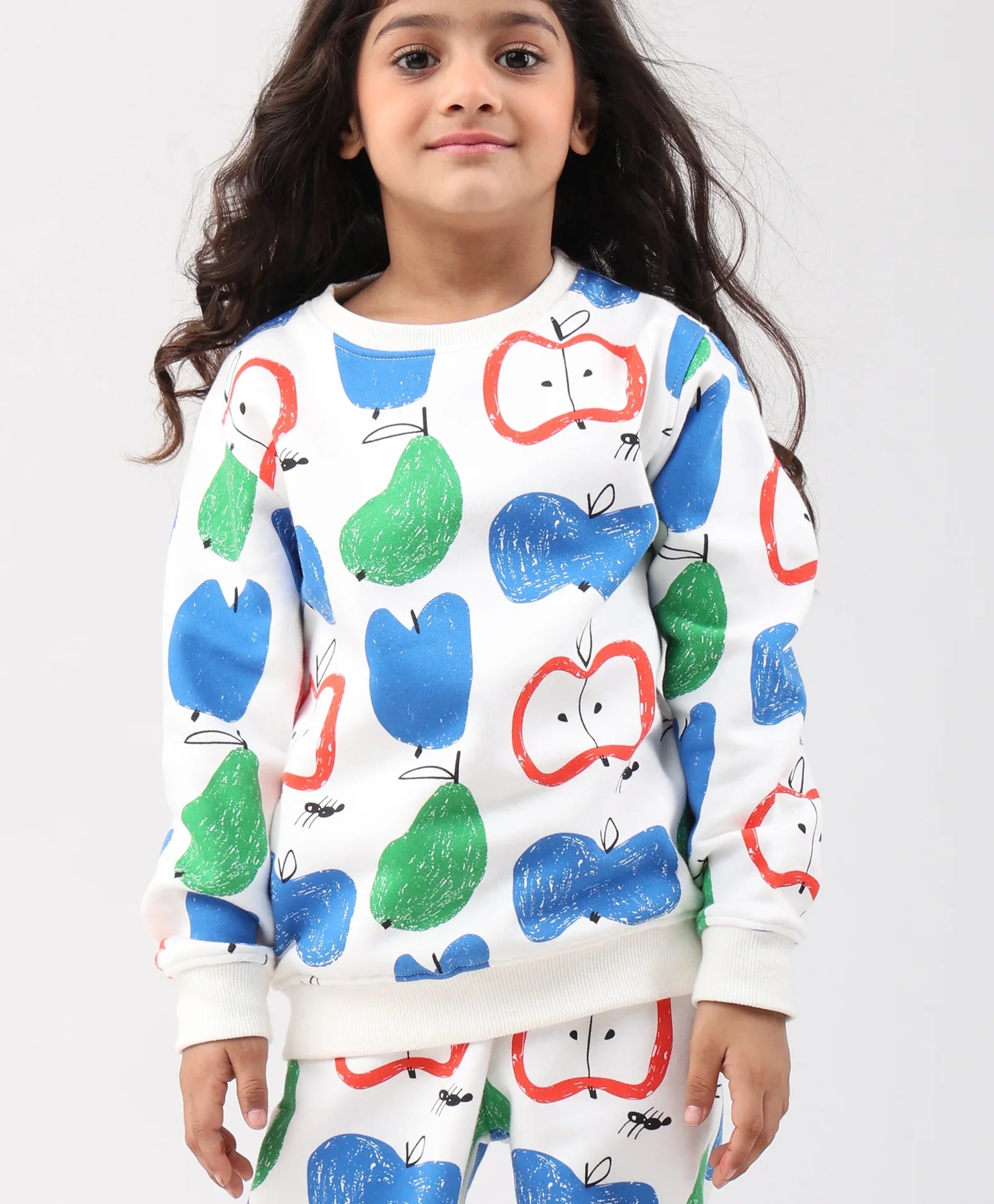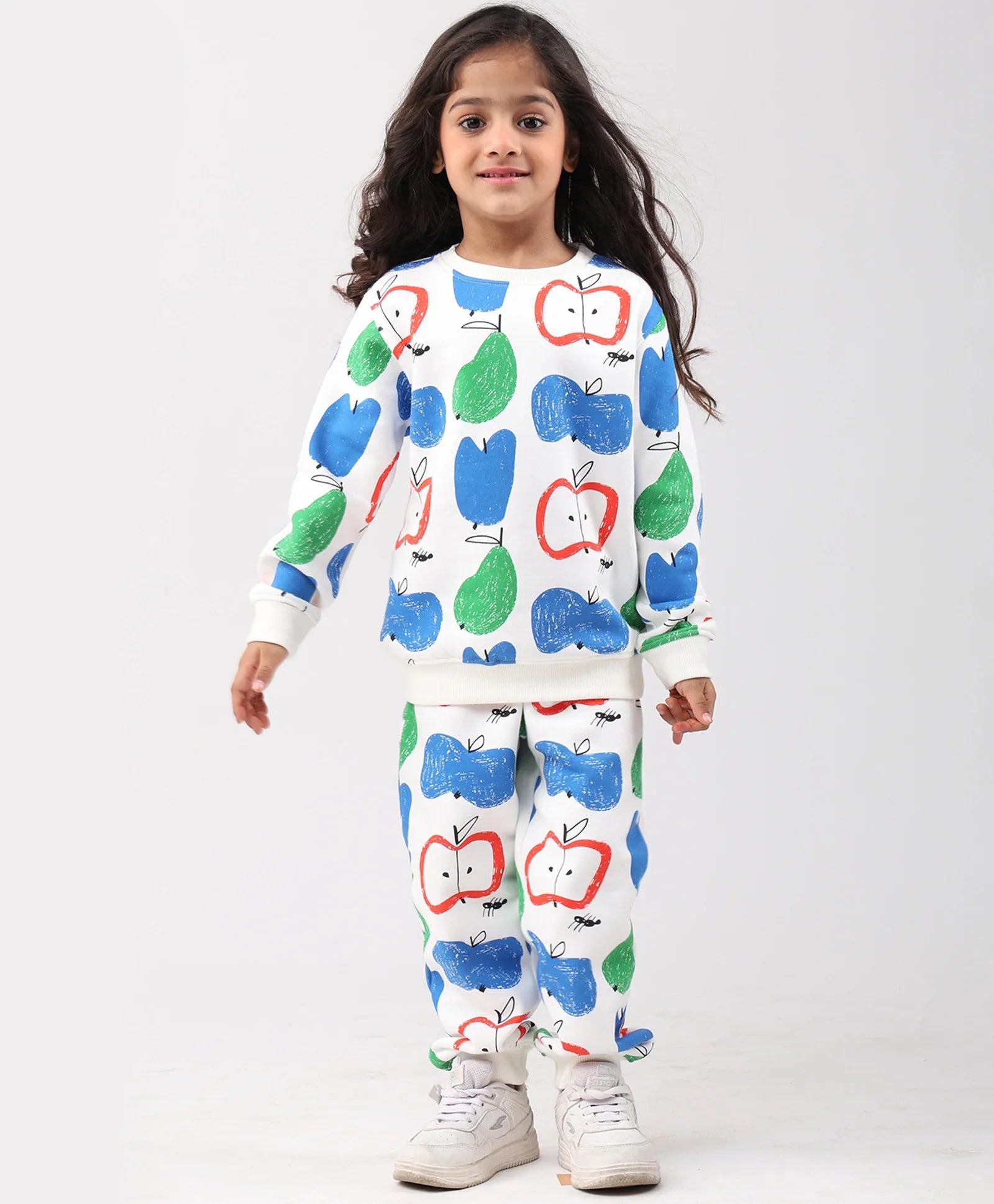 APPLE PEAR GIRLS FLEECE SWEATSHIRT JOGGER SET - WHITE
