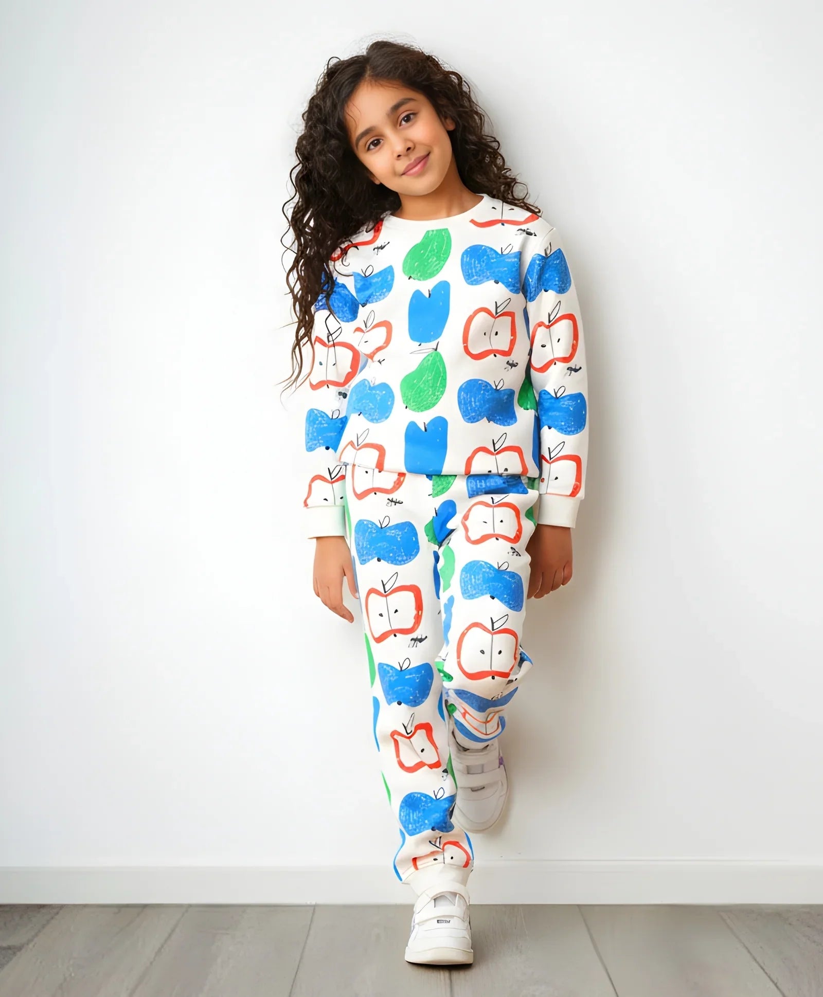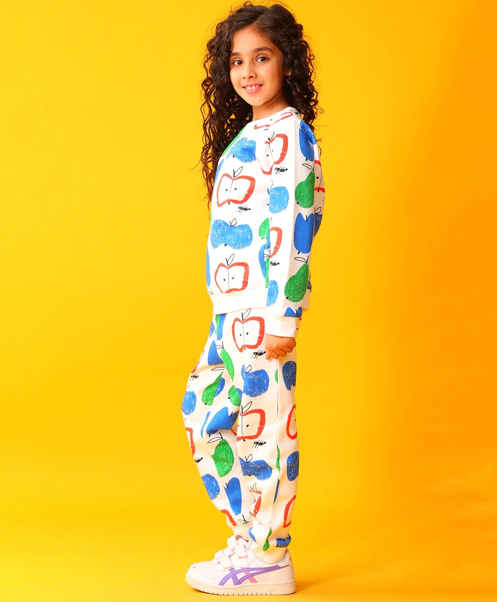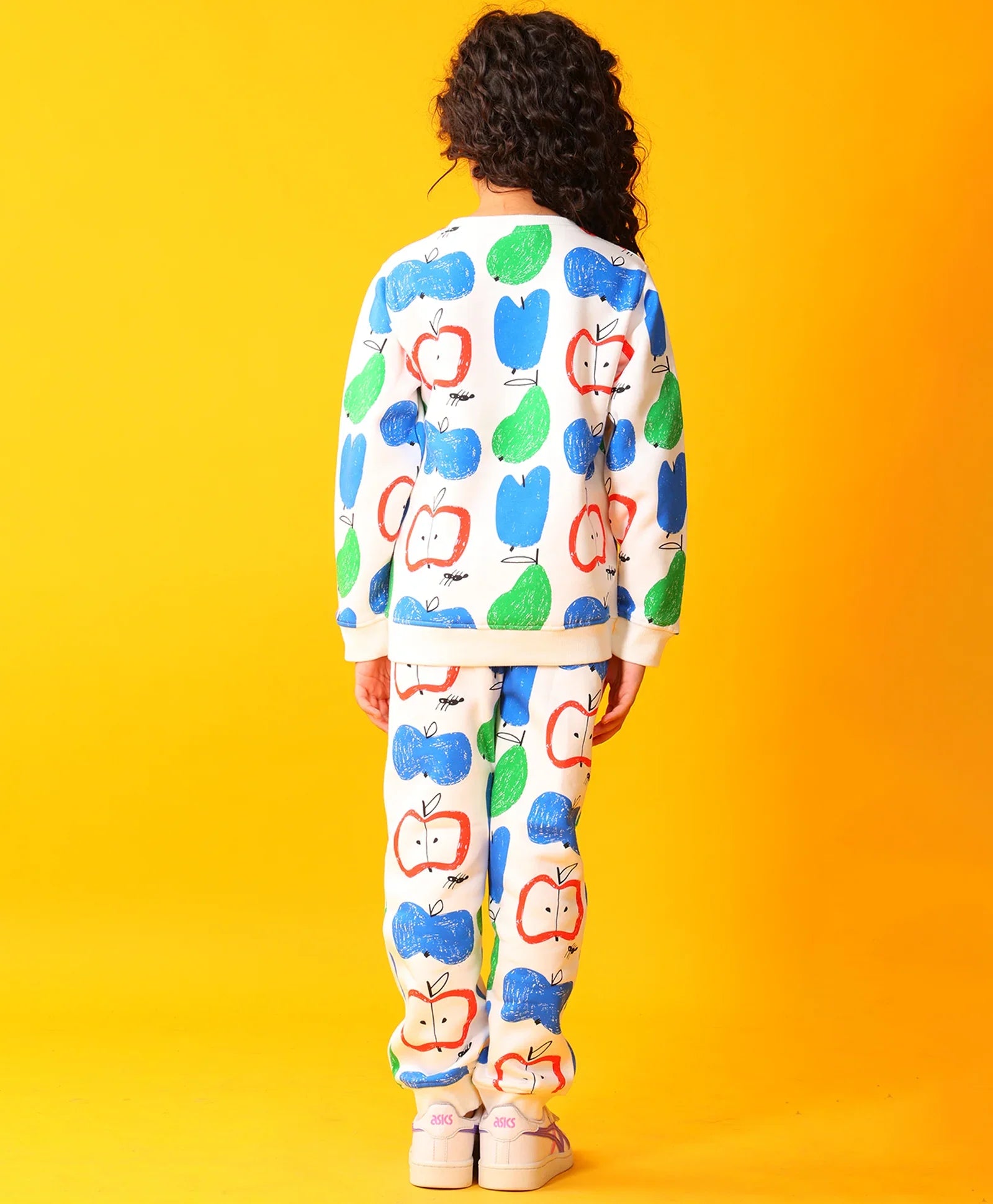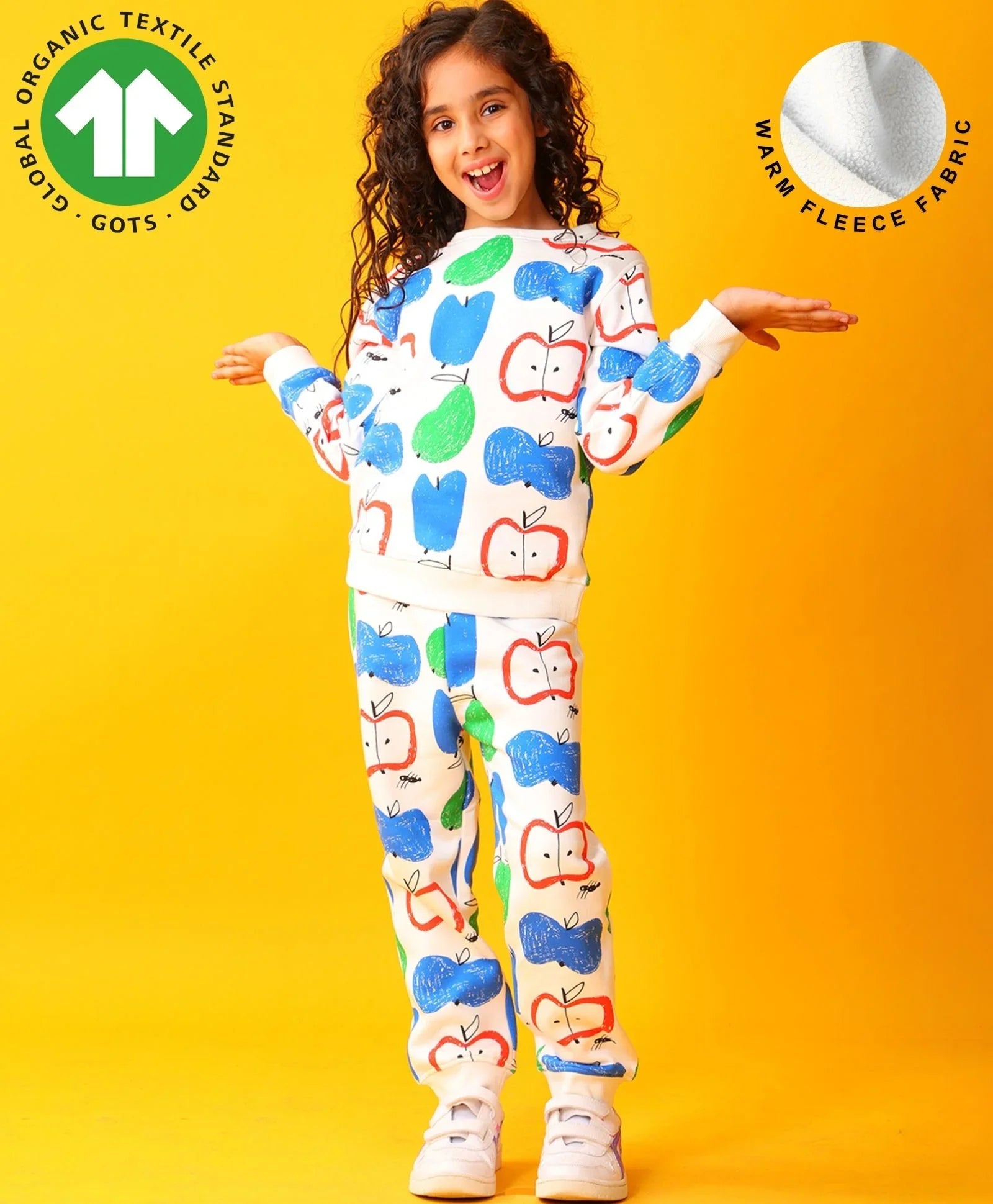 APPLE PEAR GIRLS FLEECE SWEATSHIRT JOGGER SET - WHITE