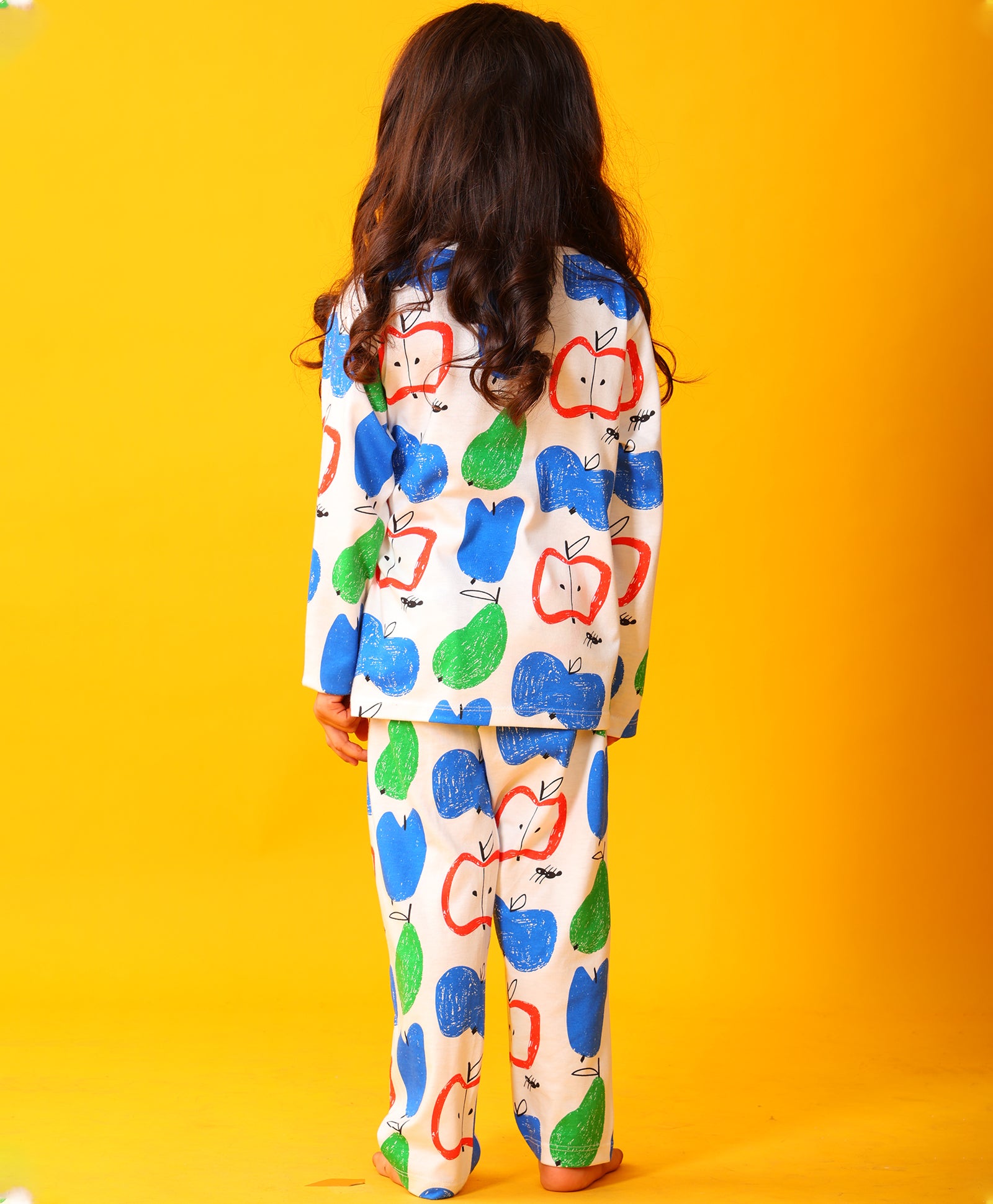 APPLE PEAR GIRLS LONG SLEEVE PYJAMA SET - WHITE