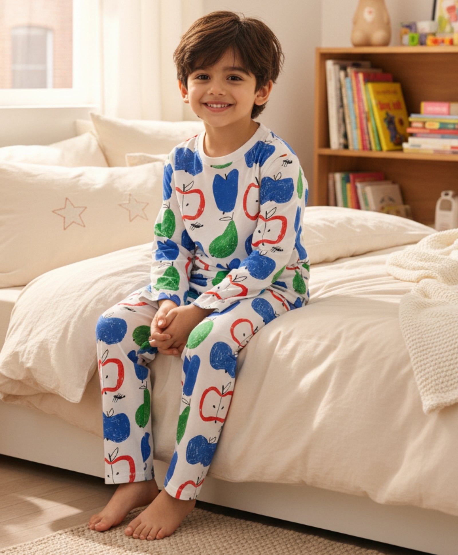 APPLE PEAR LONG SLEEVE PYJAMA SET -WHITE