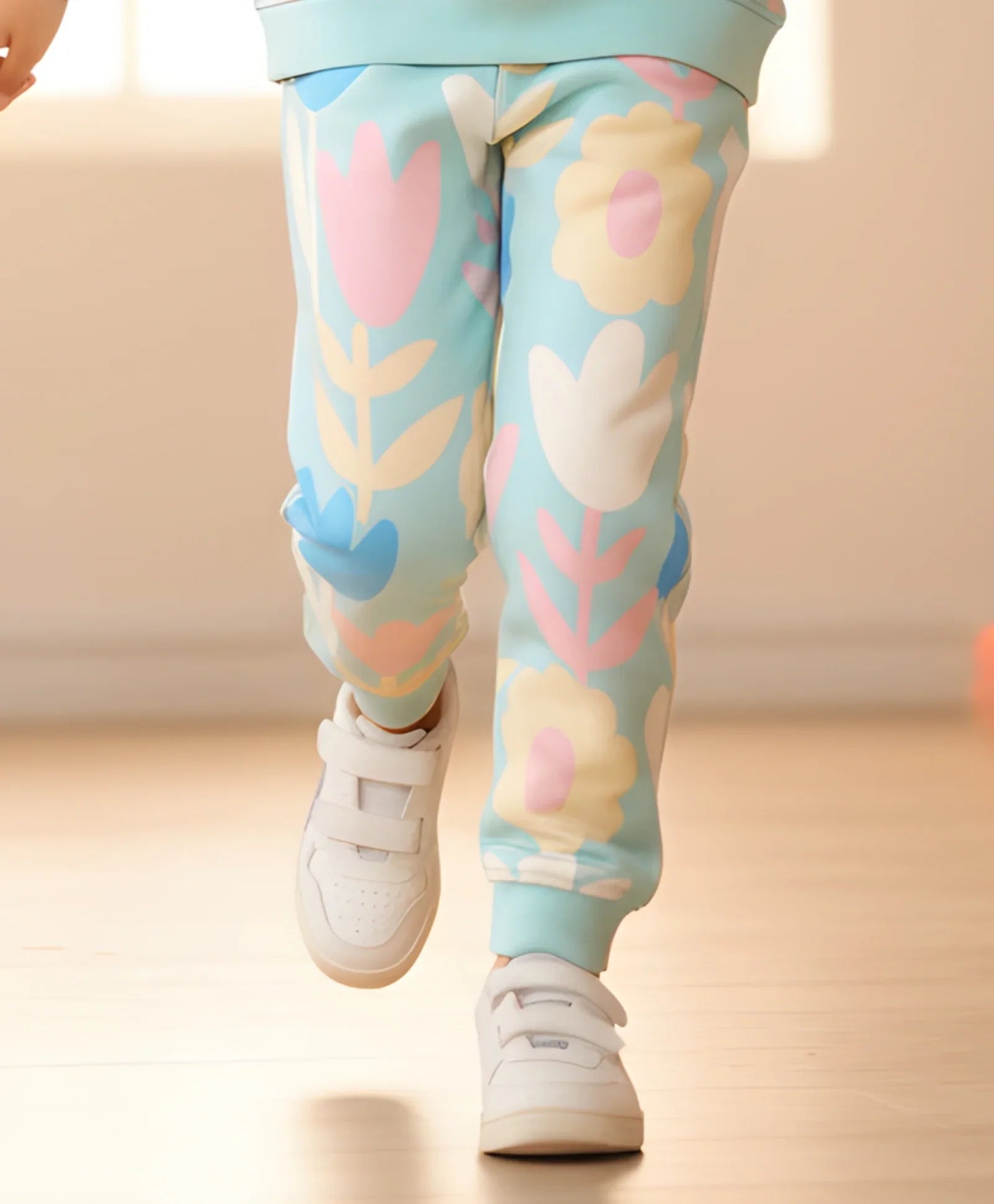 AQUA FLOWER FLEECE GIRLS JOGGER - AQUA