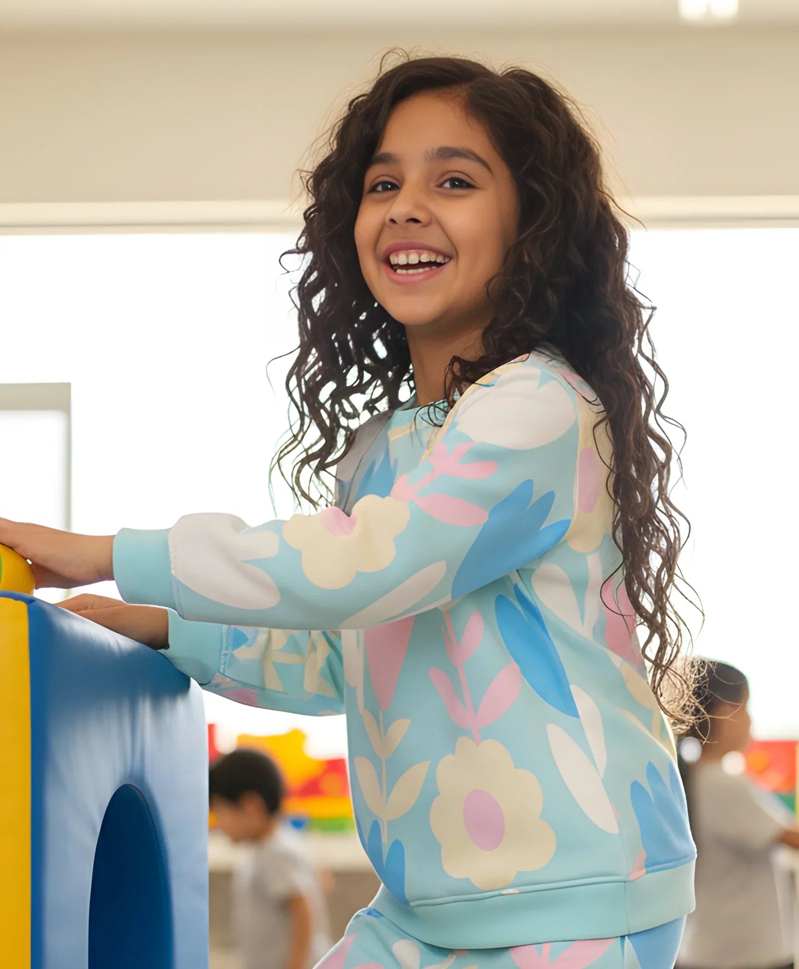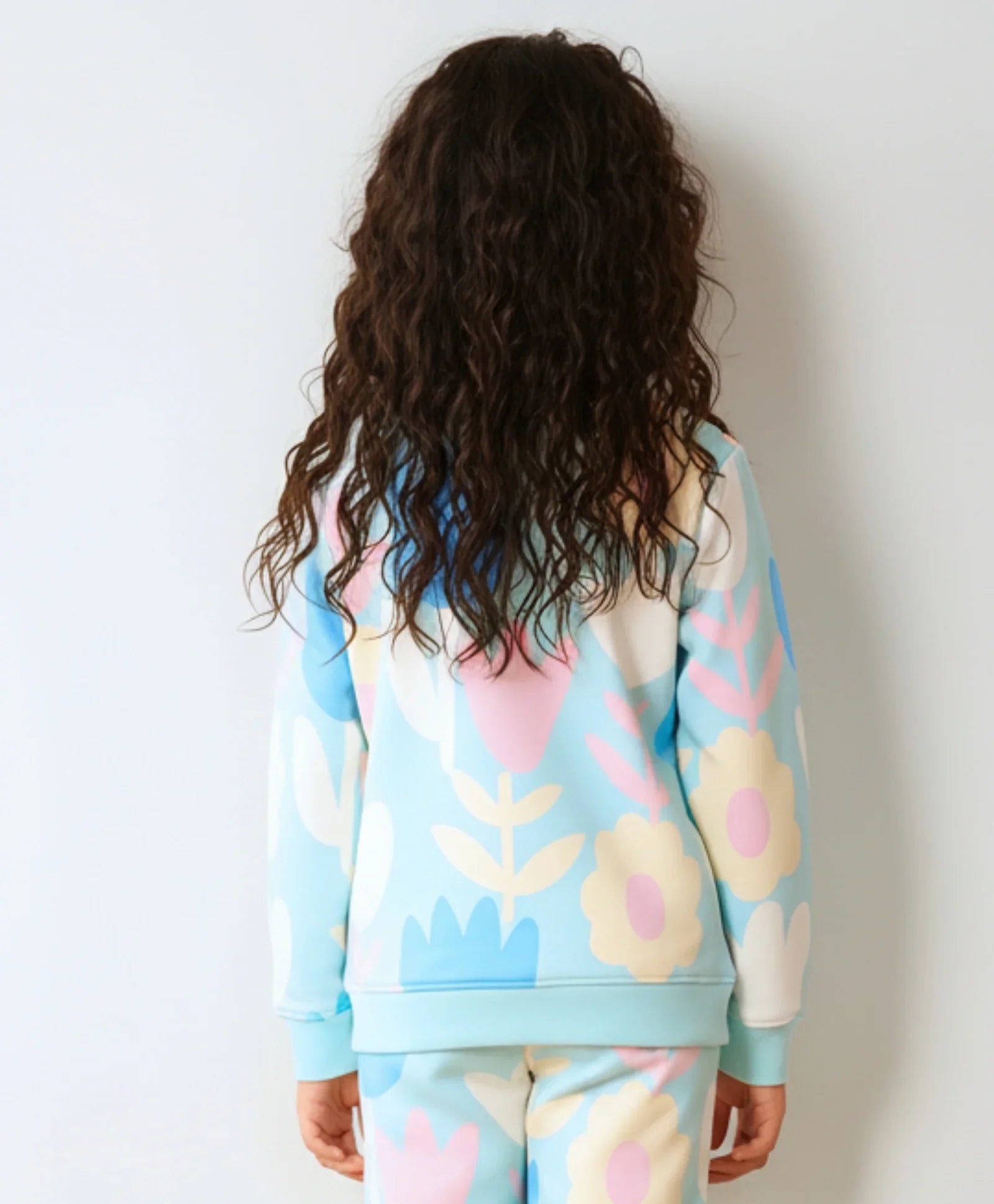 AQUA FLOWER GIRLS FLEECE SWEATSHIRT - AQUA