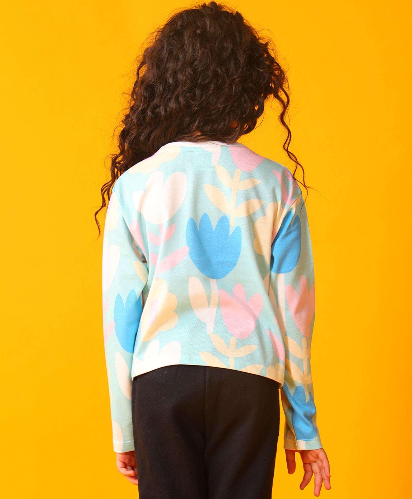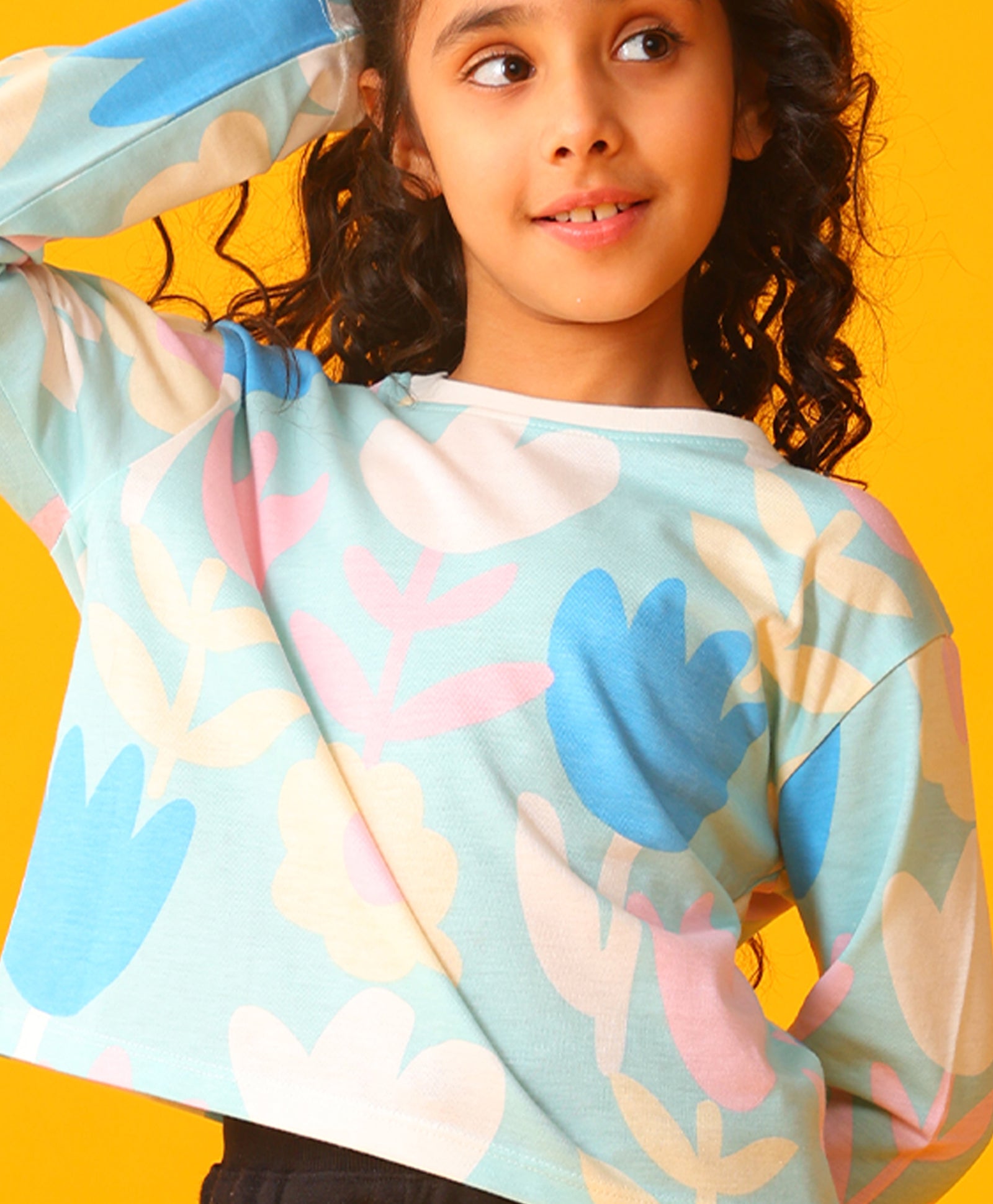 AQUA FLOWER LONG SLEEVE GIRLS T-SHIRT - AQUA