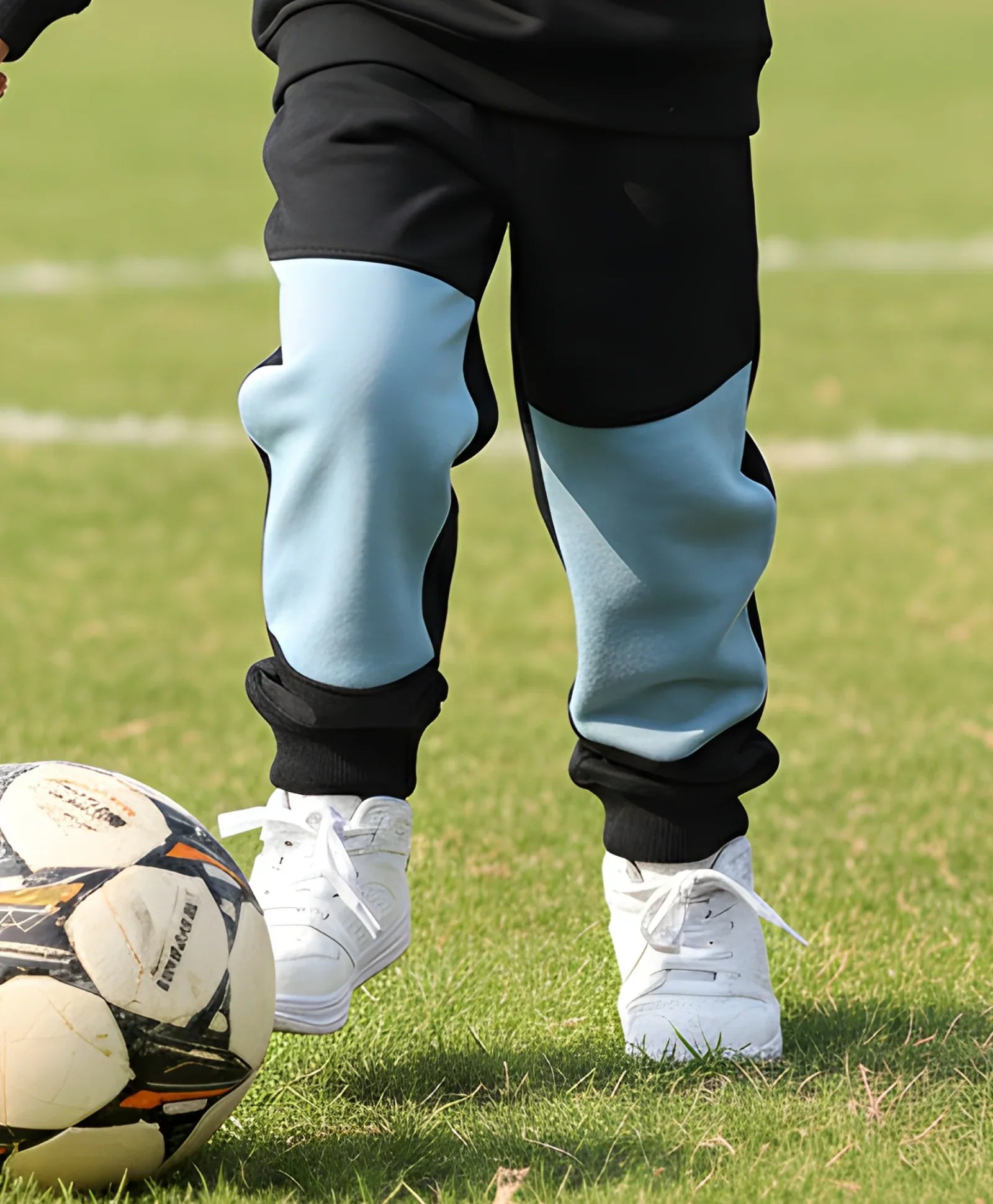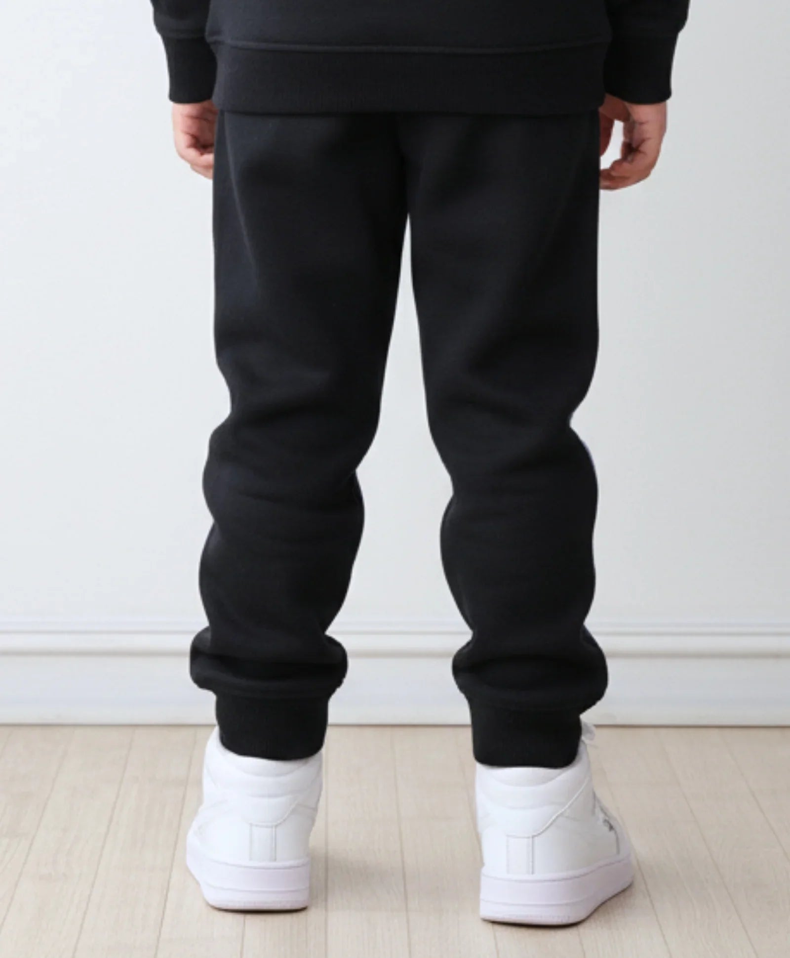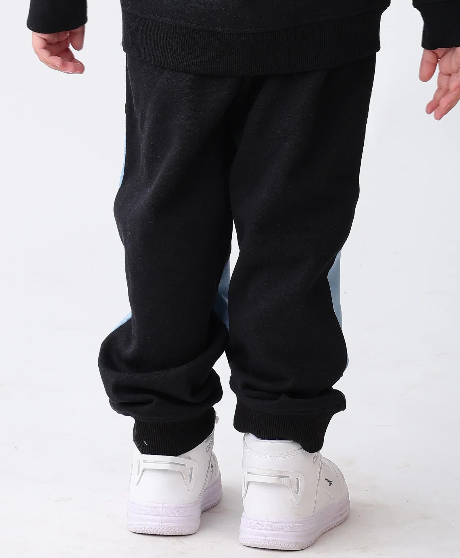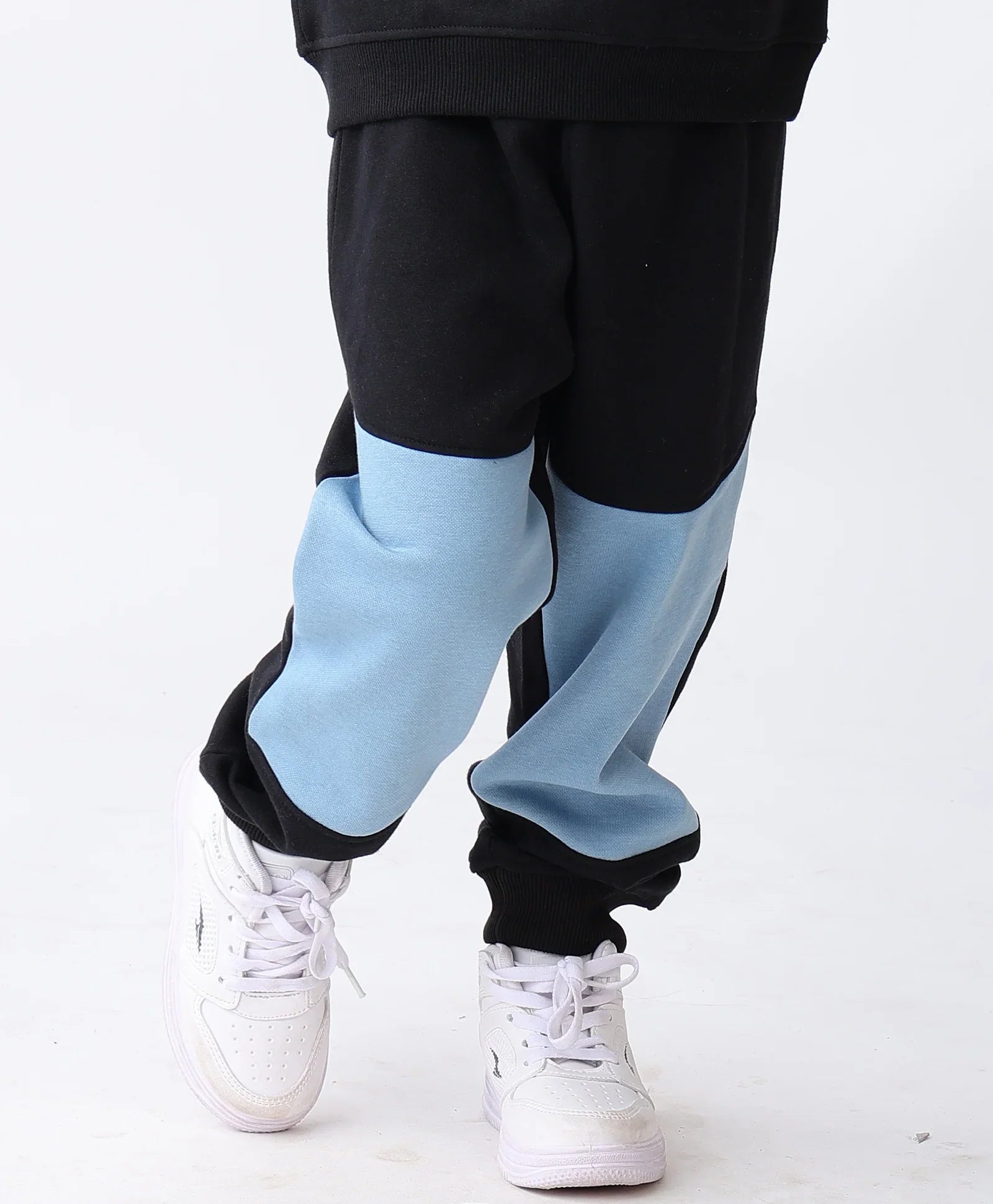The Black Blue Interlock Boys Fleece Jogger is crafted from soft fleece fabric for all-day warmth and comfort. Featuring a stylish black base with blue panel accents, it includes an elastic waistband and ribbed cuffs for a snug fit. Perfect for playtime or casual outings, these joggers combine function with a sporty, modern look
