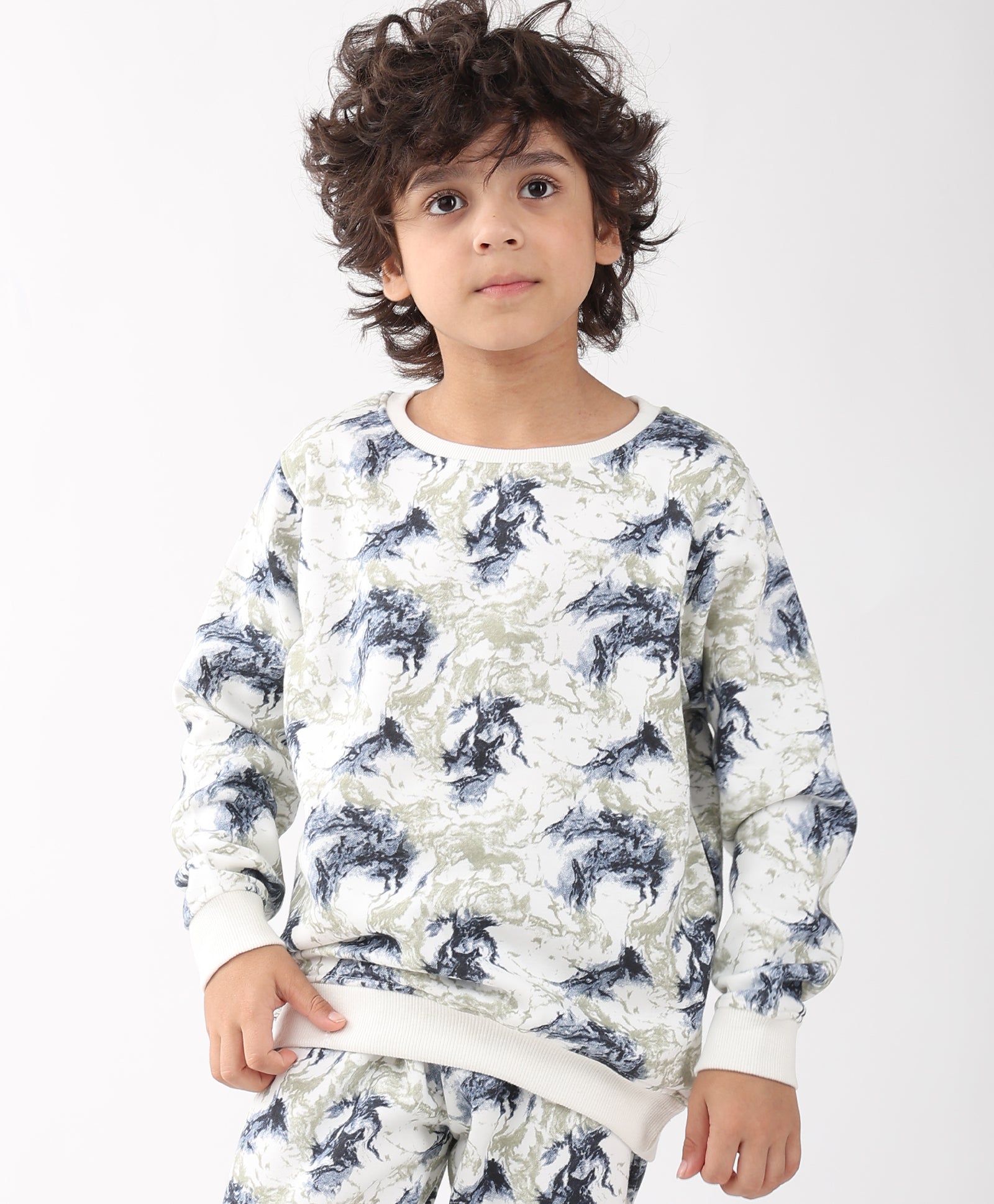 Experience an electric surge of style with the BLACK BLUE LIGHTING BOYS FLEECE SWEATSHIRT - BLUE. Featuring a dynamic, ALL OVER PRINTED black and blue lightning design, this fleece is anything but static. Its soft, warm fabric provides ultimate comfort, perfect for keeping young adventurers cozy while they light up the room.