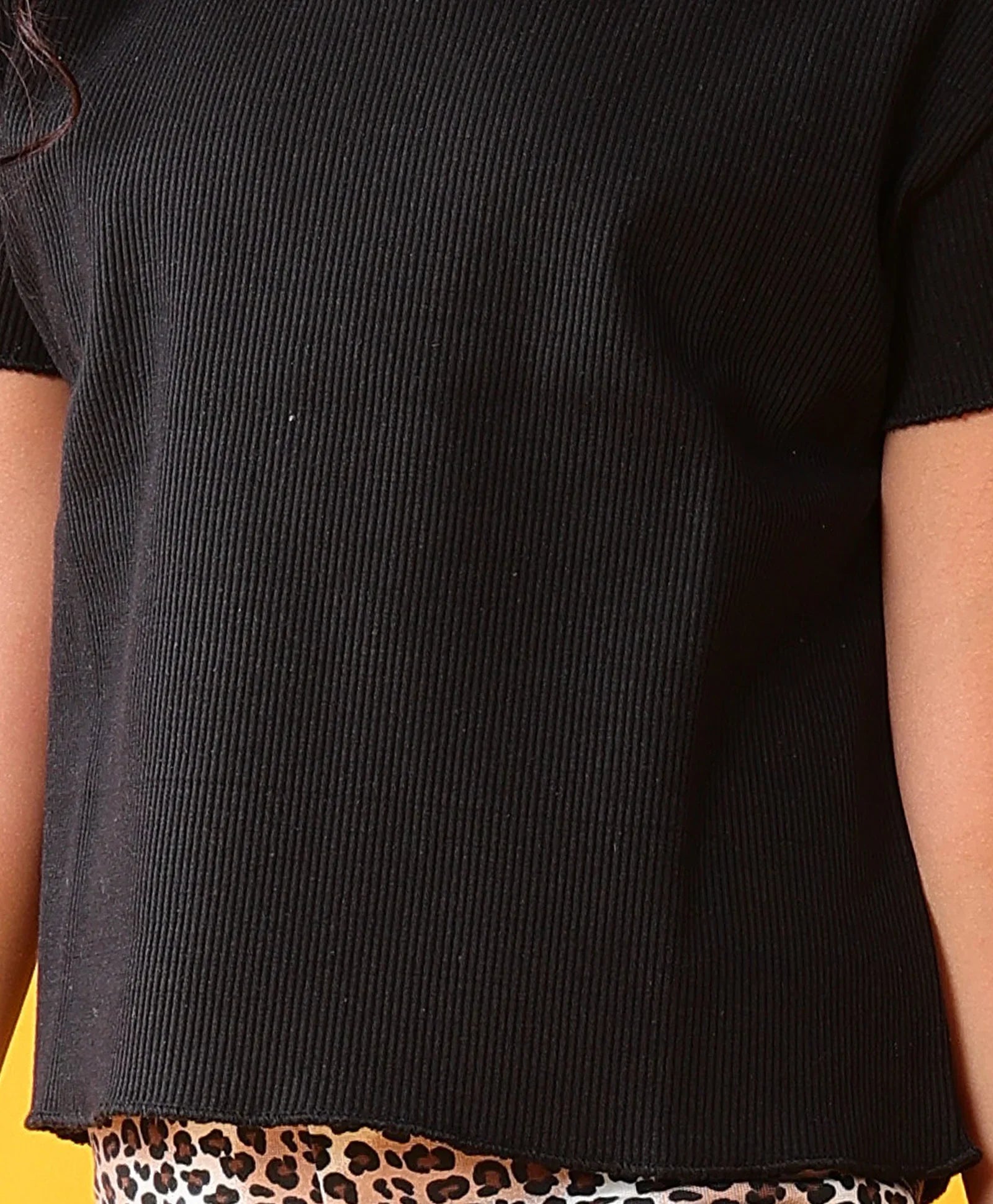 BLACK RIBBED SUMMER TSHIRT LEOPARD LEGGINGS SET - BLACK/PEACH