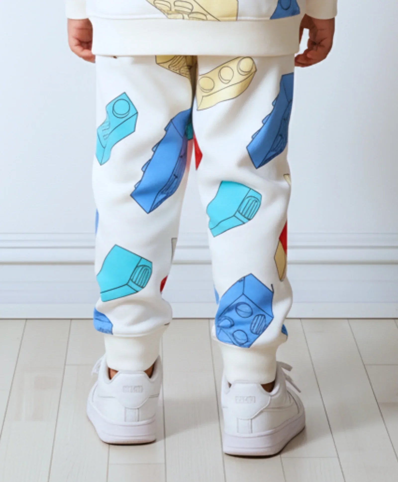 Build awesome comfort into his day with the BLOCK BUILDER FLEECE BOYS JOGGER - OFF WHITE. These cool joggers feature a fun, ALL OVER PRINTED pattern of construction blocks on a neutral base. Made from warm FLEECE, they offer supreme coziness and a practical, creative style for endless play.