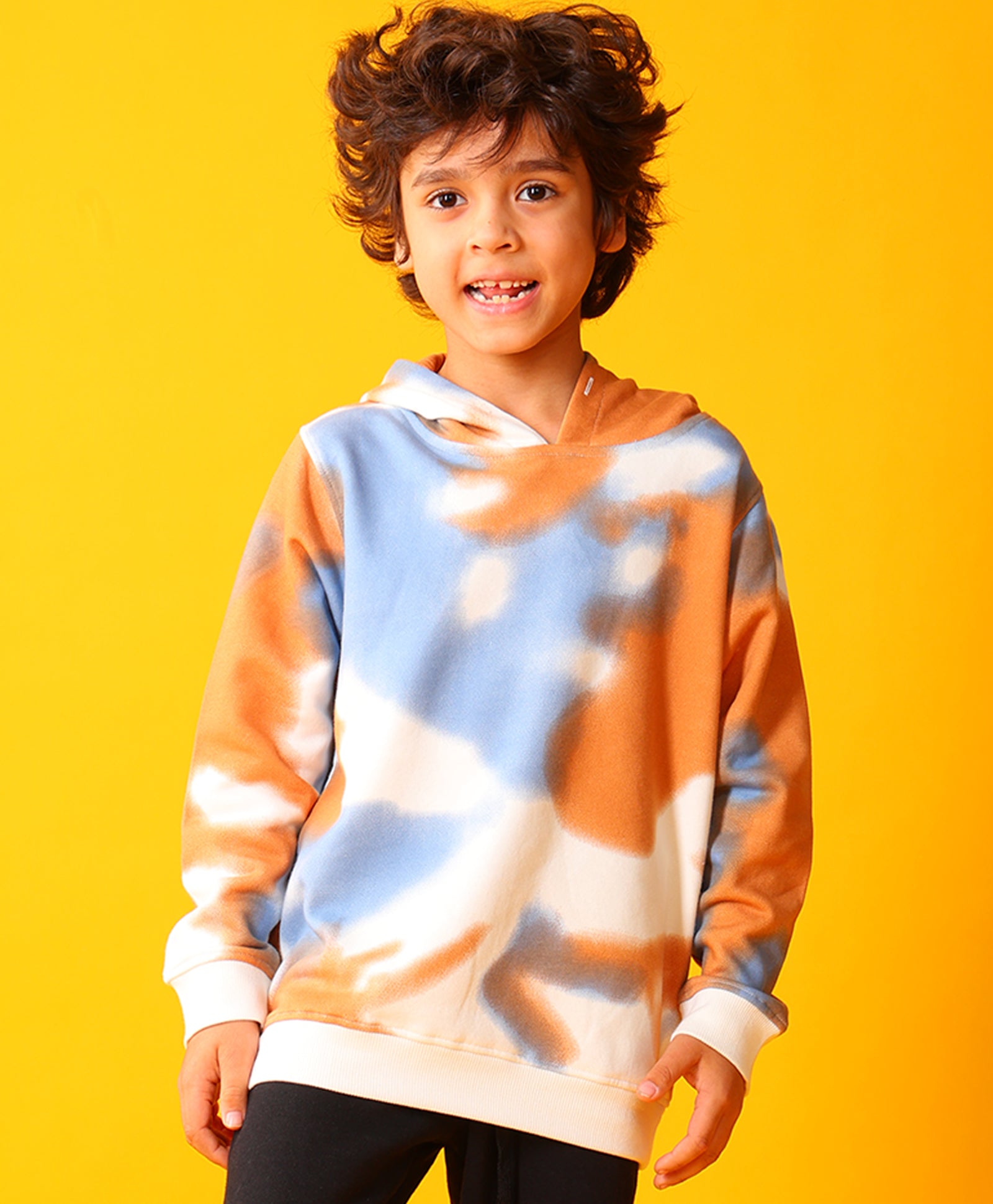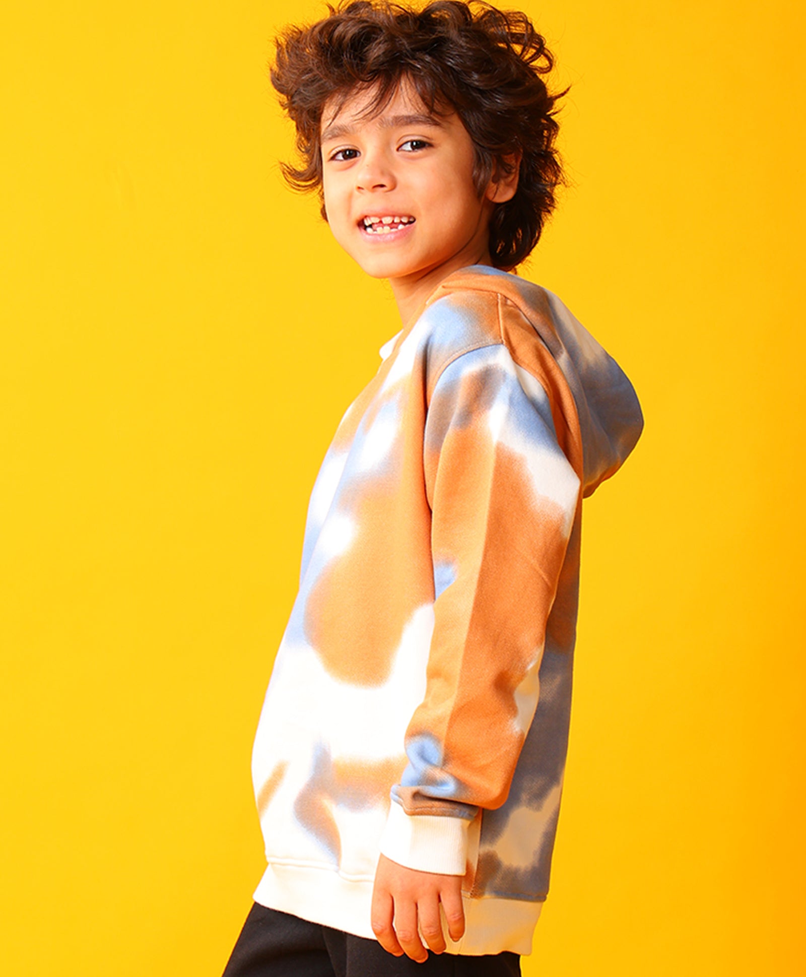 BLUE BROWN TIE DYE FLEECE HOODIE - BROWN