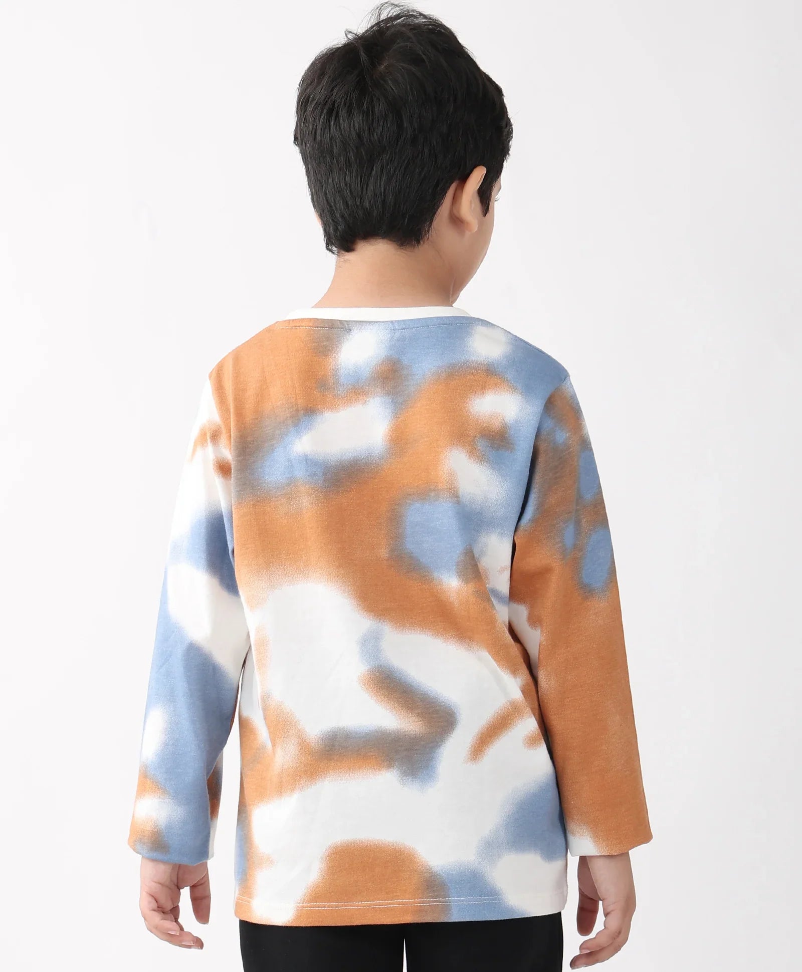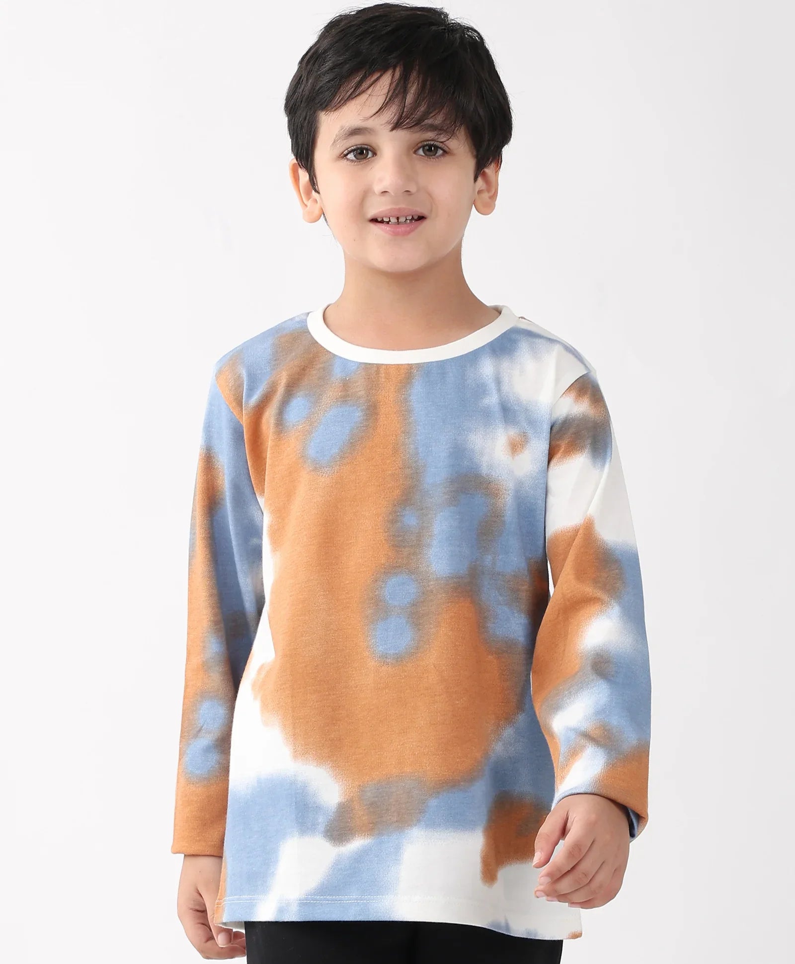 BLUE BROWN TIE DYE LONG SLEEVE BOYS T-SHIRT -BROWN