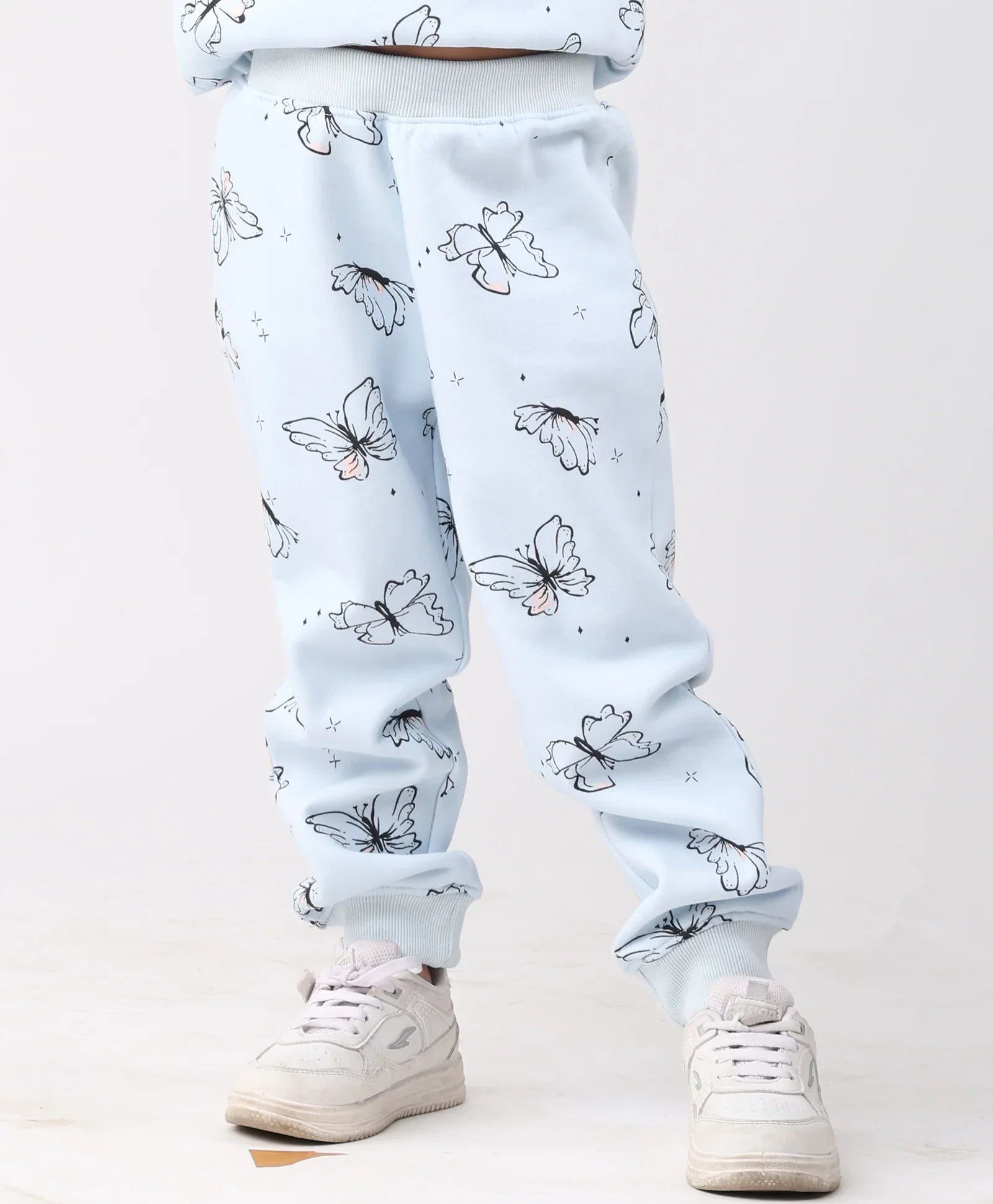 BLUE BUTTERFLY FLEECE GIRLS JOGGER - BLUE