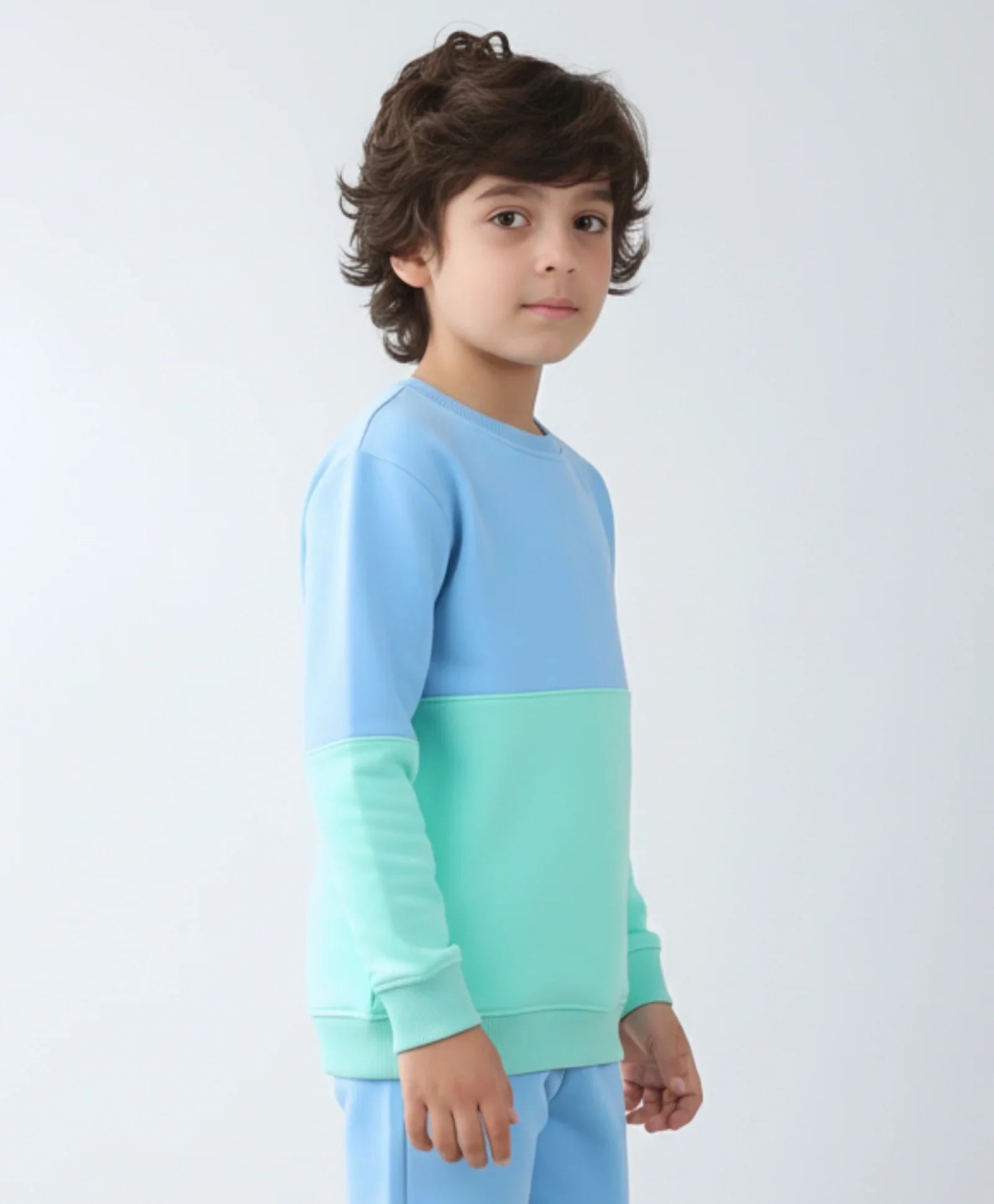 Dive into comfort and style with this fantastic Blue/Green Color Block Boys Fleece Sweatshirt. This bold pullover features a cool, refreshing pairing of tranquil ocean blue and lush forest green. Made with snuggly, soft fleece, it’s designed to keep him warm and cozy whether he’s exploring the backyard or relaxing inside. A dynamic, comfy essential for every adventure.