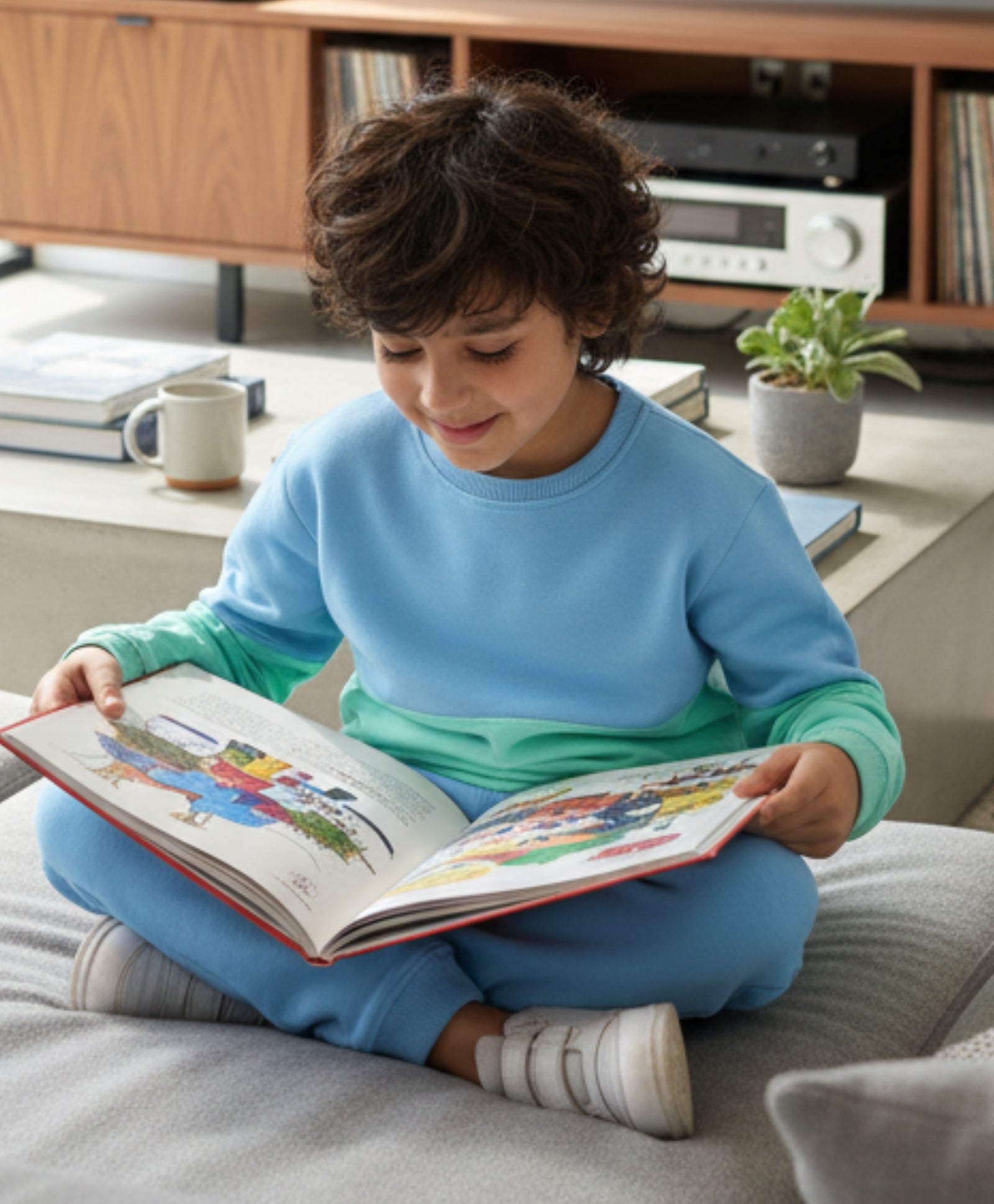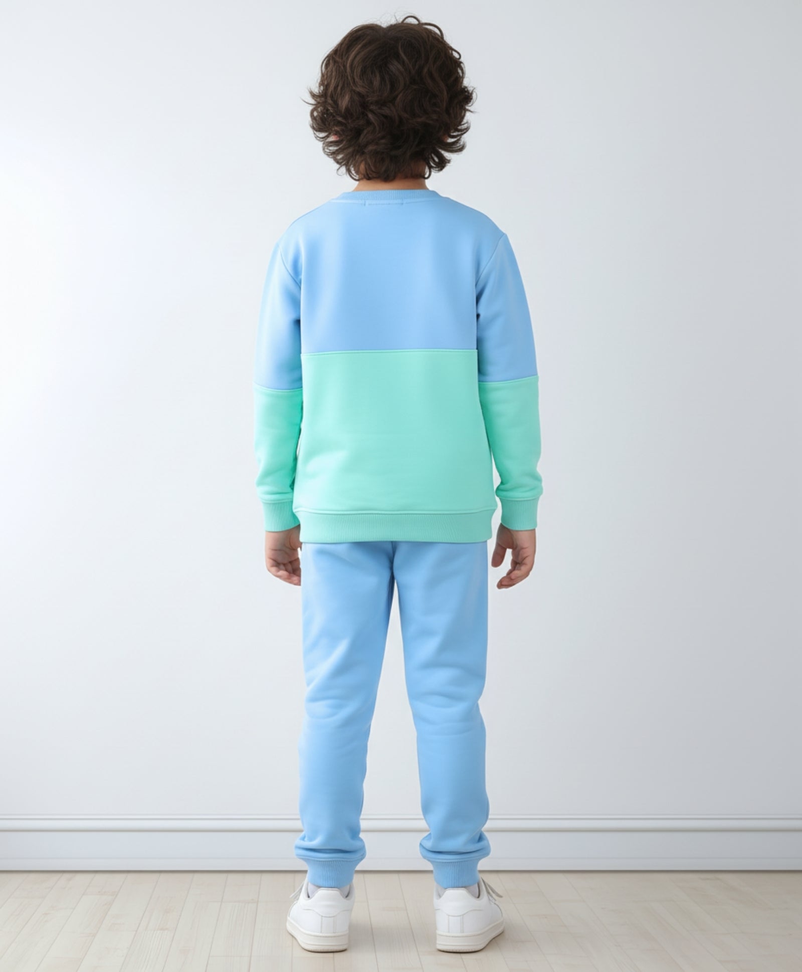 Keep your little one cozy in this Blue Green Color Block Fleece Sweatshirt and Blue Jogger Set. Made from soft, warm fleece, the sweatshirt showcases a vibrant sea green and blue color block, paired with comfy blue joggers. Perfect for playdates or casual outings, this set combines all-day comfort with playful, stylish charm.