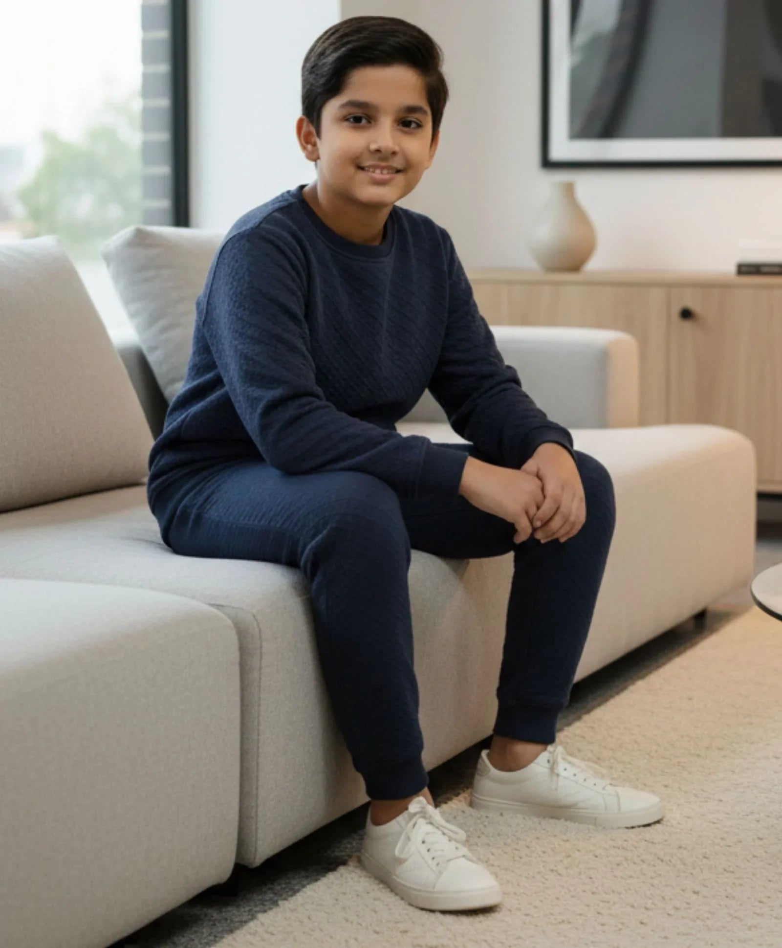 Move freely in the Unbound Essentials Fleece Sweatshirt Jogger Set in classic Navy. This comfortable set features a soft fleece sweatshirt and matching joggers, designed for warmth and unrestricted movement. It’s the perfect relaxed ensemble for active days or casual lounging, ensuring ultimate cozy comfort anytime, anywhere.