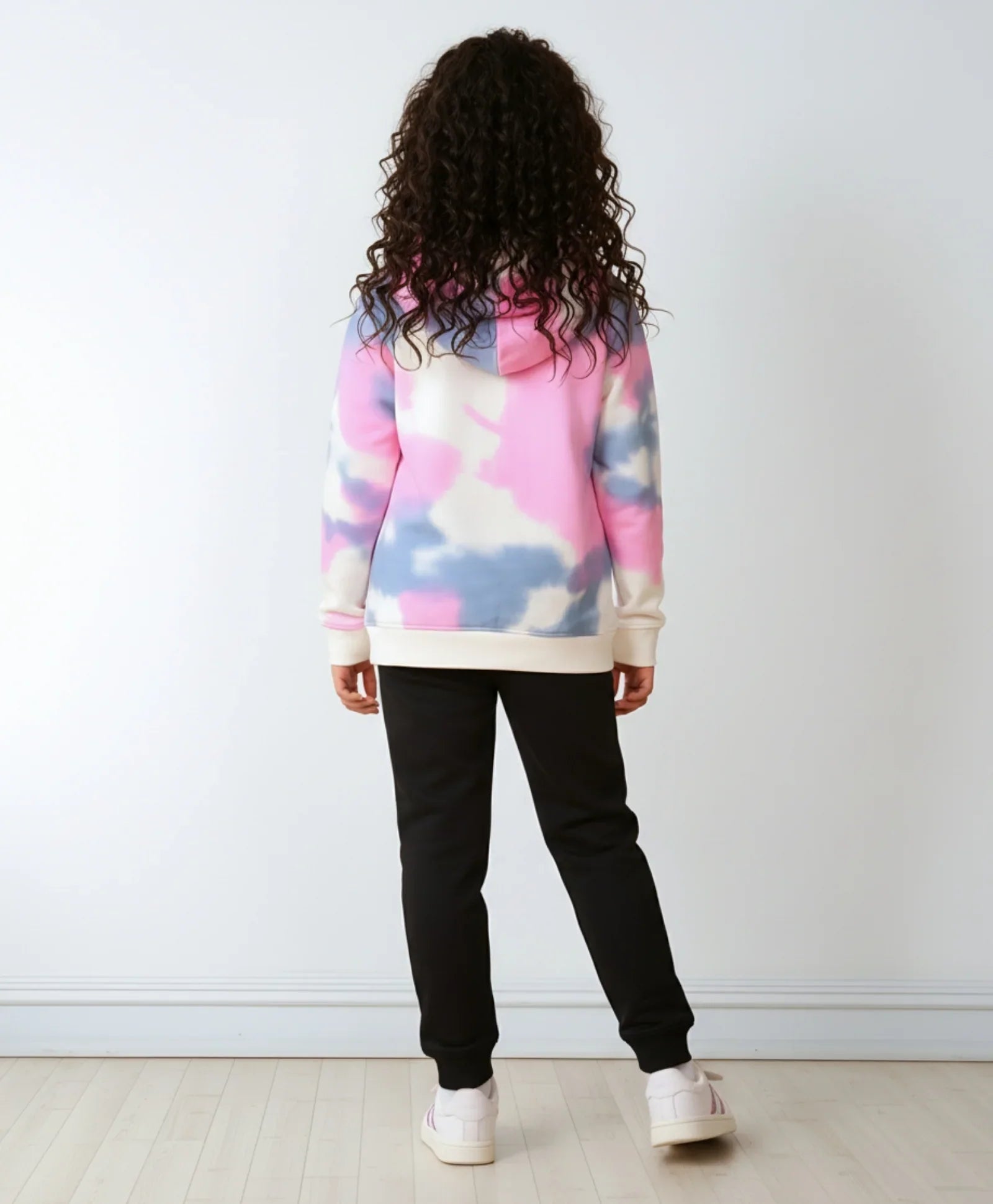 Brighten her wardrobe with the Blue-Pink Tie Dye Fleece Girls Hoodie & Black Jogger Set. Made from soft, cozy fleece, the hoodie features playful tie-dye shades, while the black joggers ensure comfort and flexibility. Ideal for casual outings or cozy indoor days, this stylish set keeps her warm, comfy, and ready for fun.