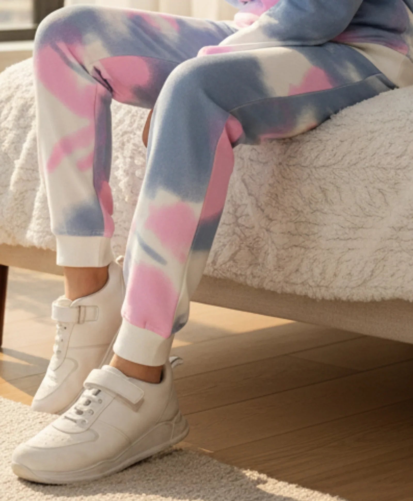 Bliss out in the vibrant BLUE PINK TIE DYE FLEECE JOGGER - PINK. These cozy bottoms feature an energetic, ALL OVER PRINTED swirl of blue and pink hues. Crafted from soft fleece, they promise ultimate warmth and a relaxed fit, making them the perfect stylish staple for embracing colorful comfort.