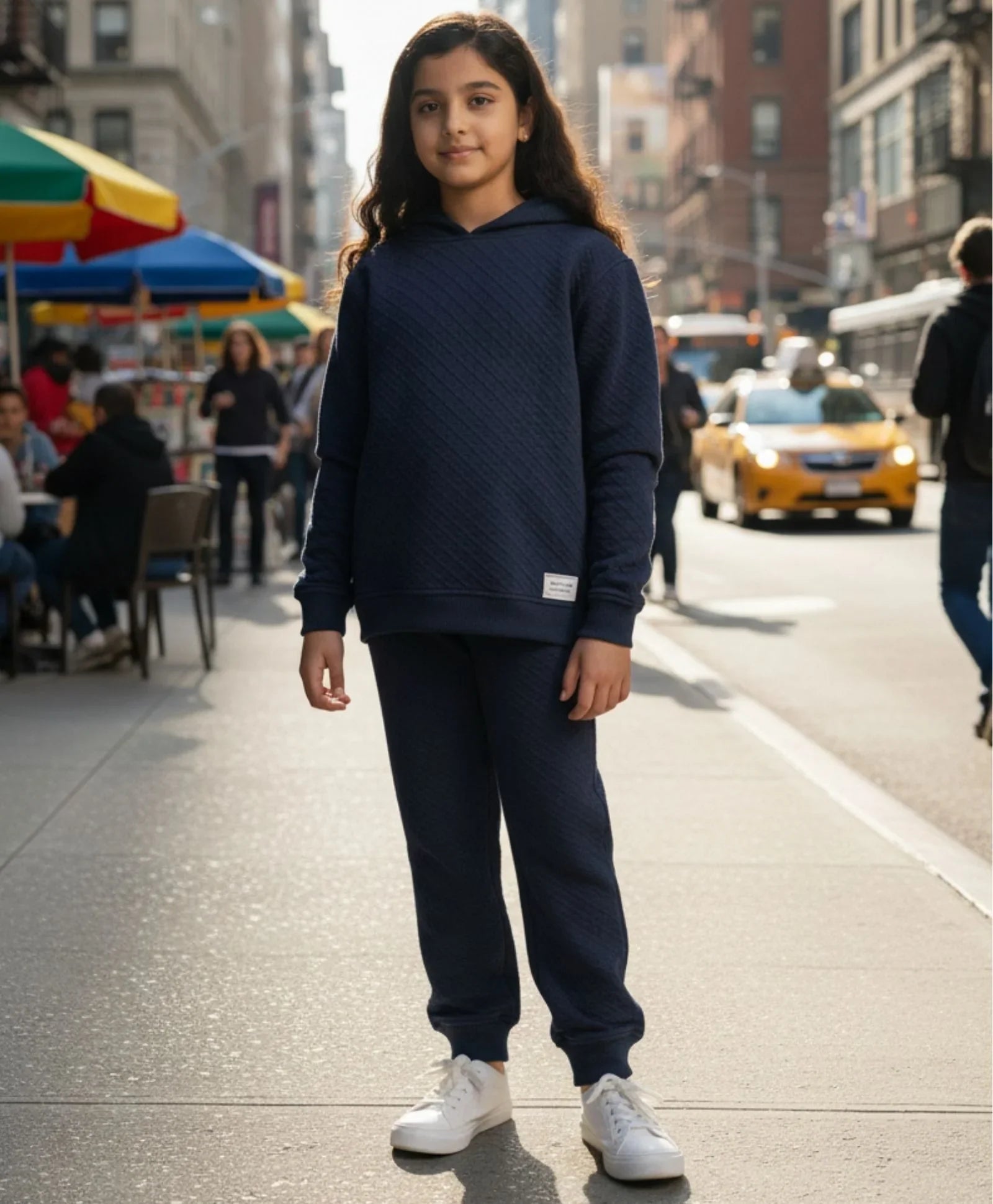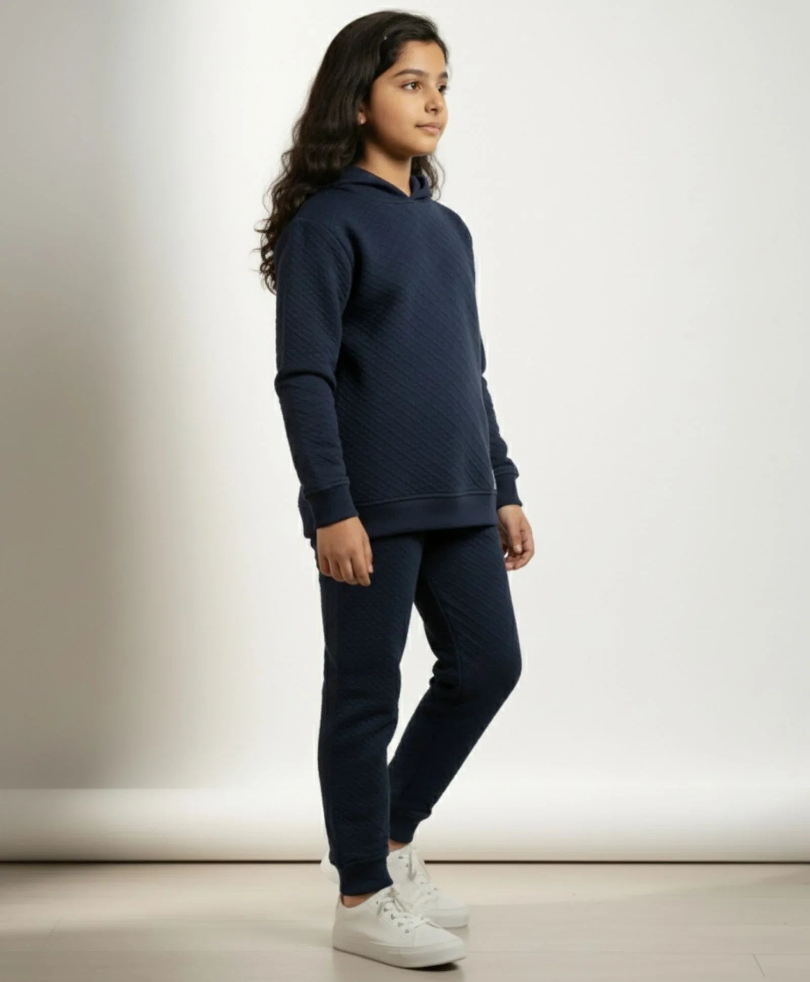 MINIMAL ESSENTIALS GIRLS FLEECE HOODIE JOGGER SET - NAVY