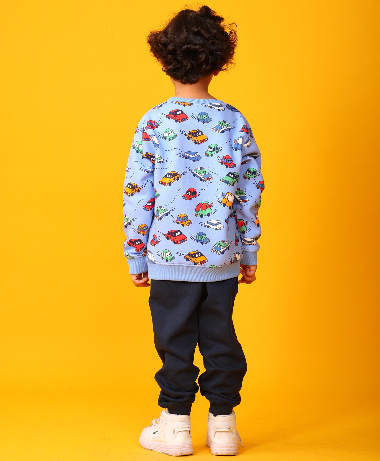 Zoom into comfort with the Cars Fleece Sweatshirt and Jogger Set! Made from soft fleece fabric, the black sweatshirt features vibrant car graphics, paired with matching black joggers for all-day coziness. Perfect for playtime or casual outings, this set keeps kids warm, stylish, and ready for fun adventures. Available in blue/black.
