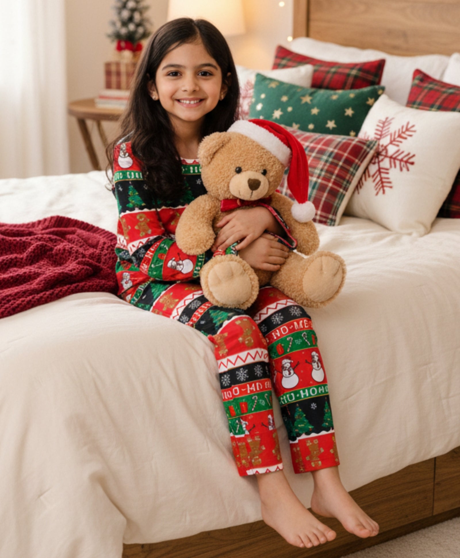 CHRISTMAS RED GIRLS LONG SLEEVE PYJAMA SET - RED
