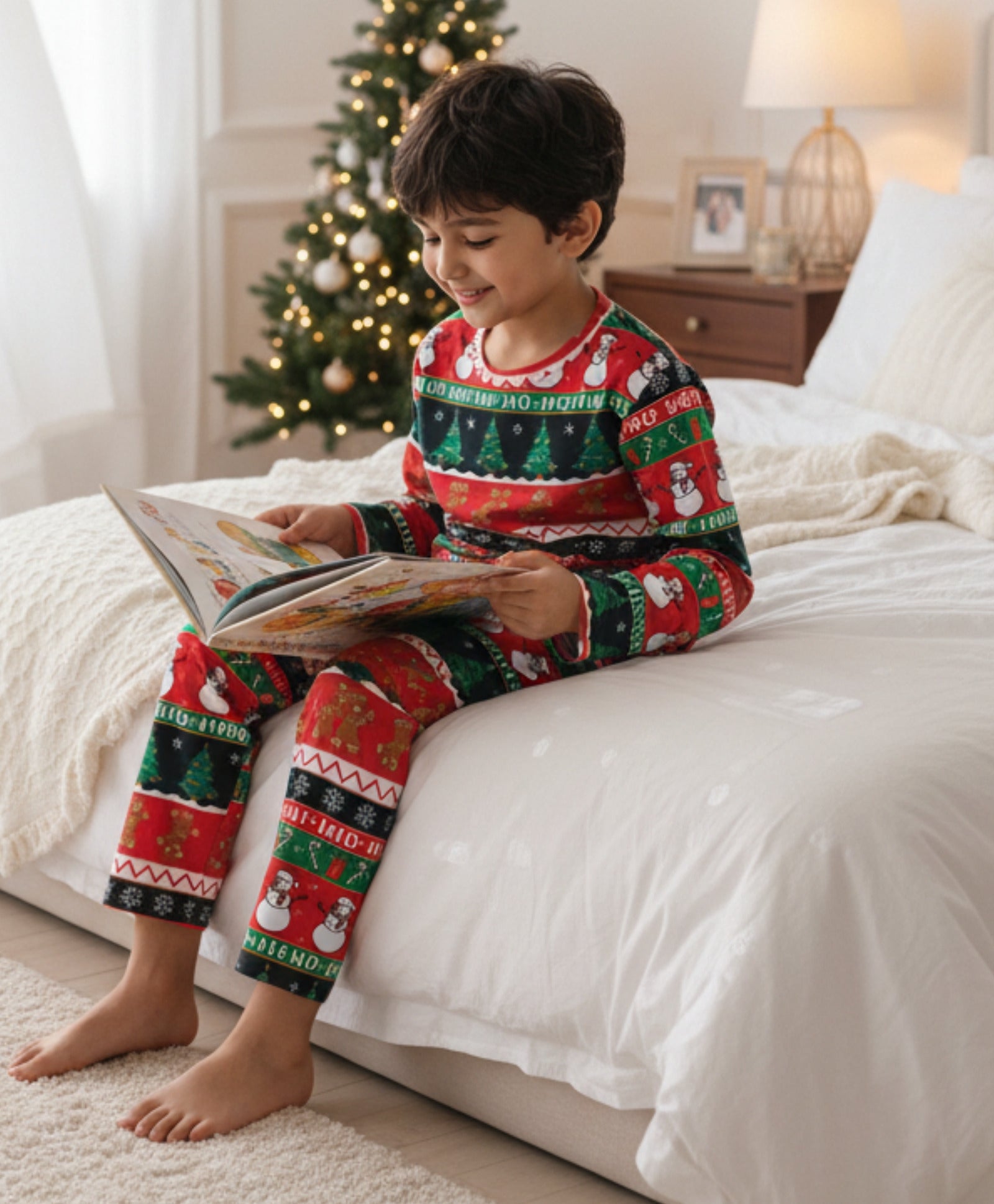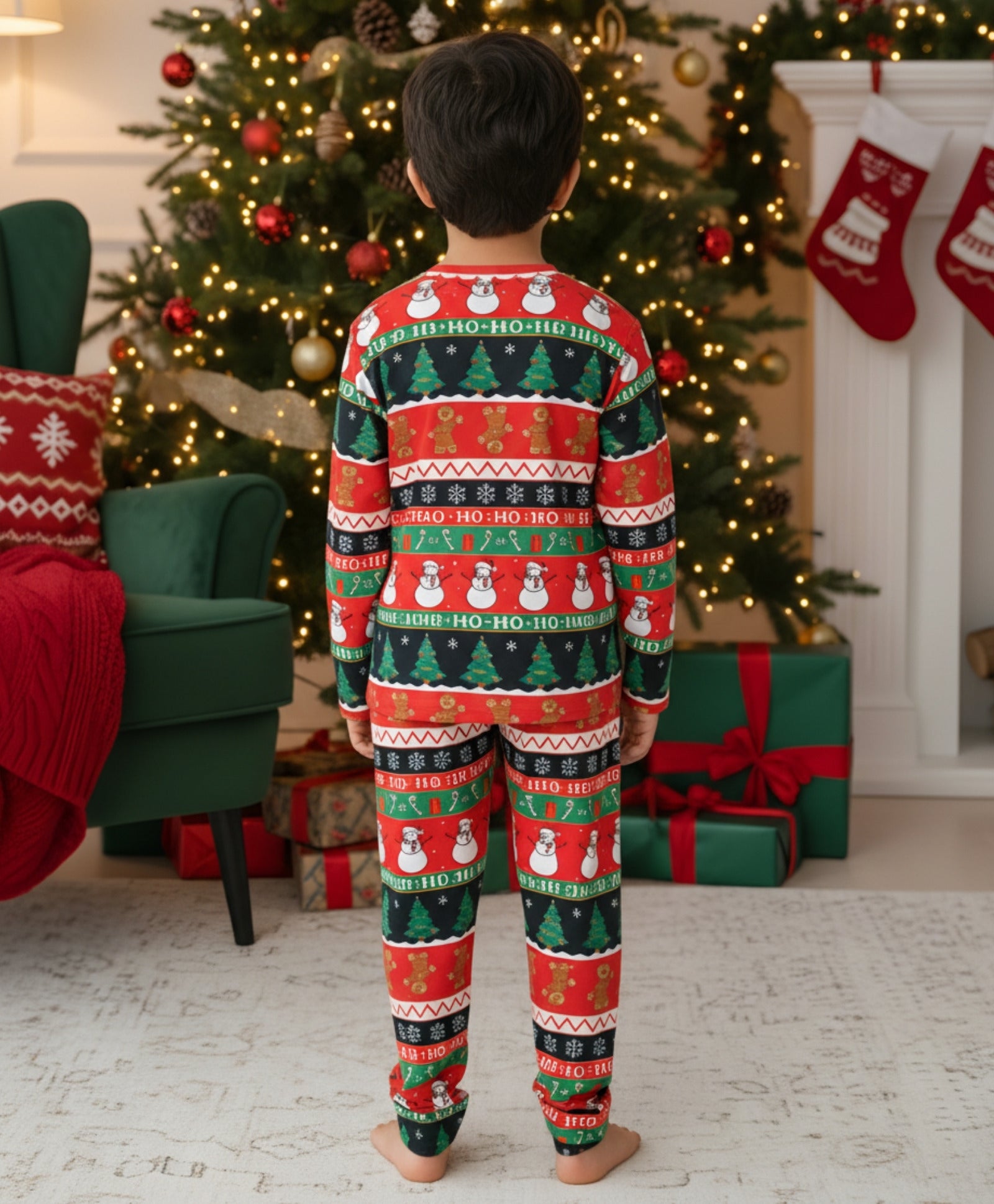 Made from 100% pure cotton, this cozy Christmas red pyjama set keeps kids warm and comfortable all night. Featuring festive holiday prints and a snug fit with elastic cuffs and waistband, it’s perfect for Christmas morning, sleepovers, or family photos. Soft, breathable, and ideal for sensitive skin.