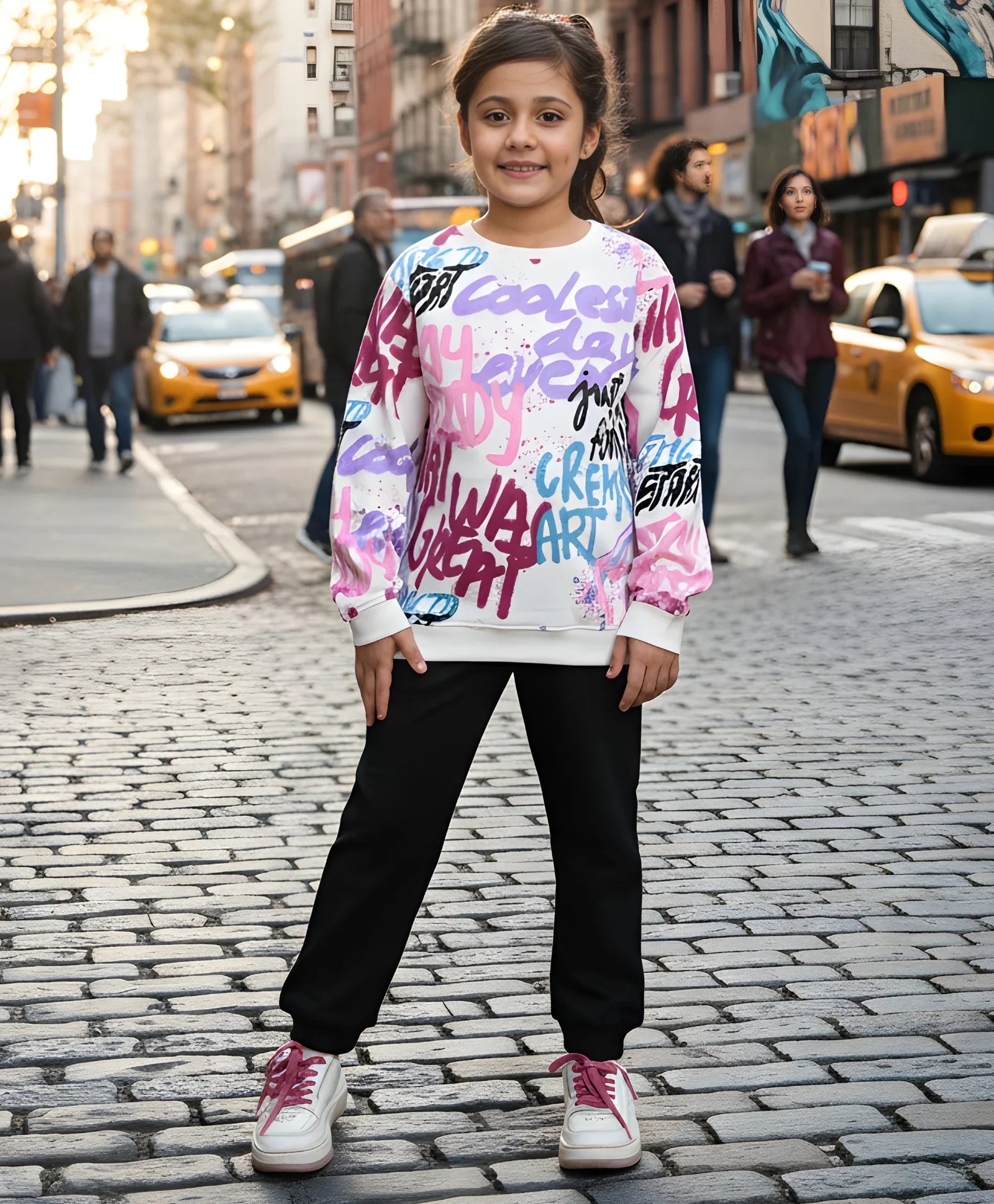 CREATE ART FUN FLEECE SWEATSHIRT AND BLACK JOGGER SET - WHITE/BLACK