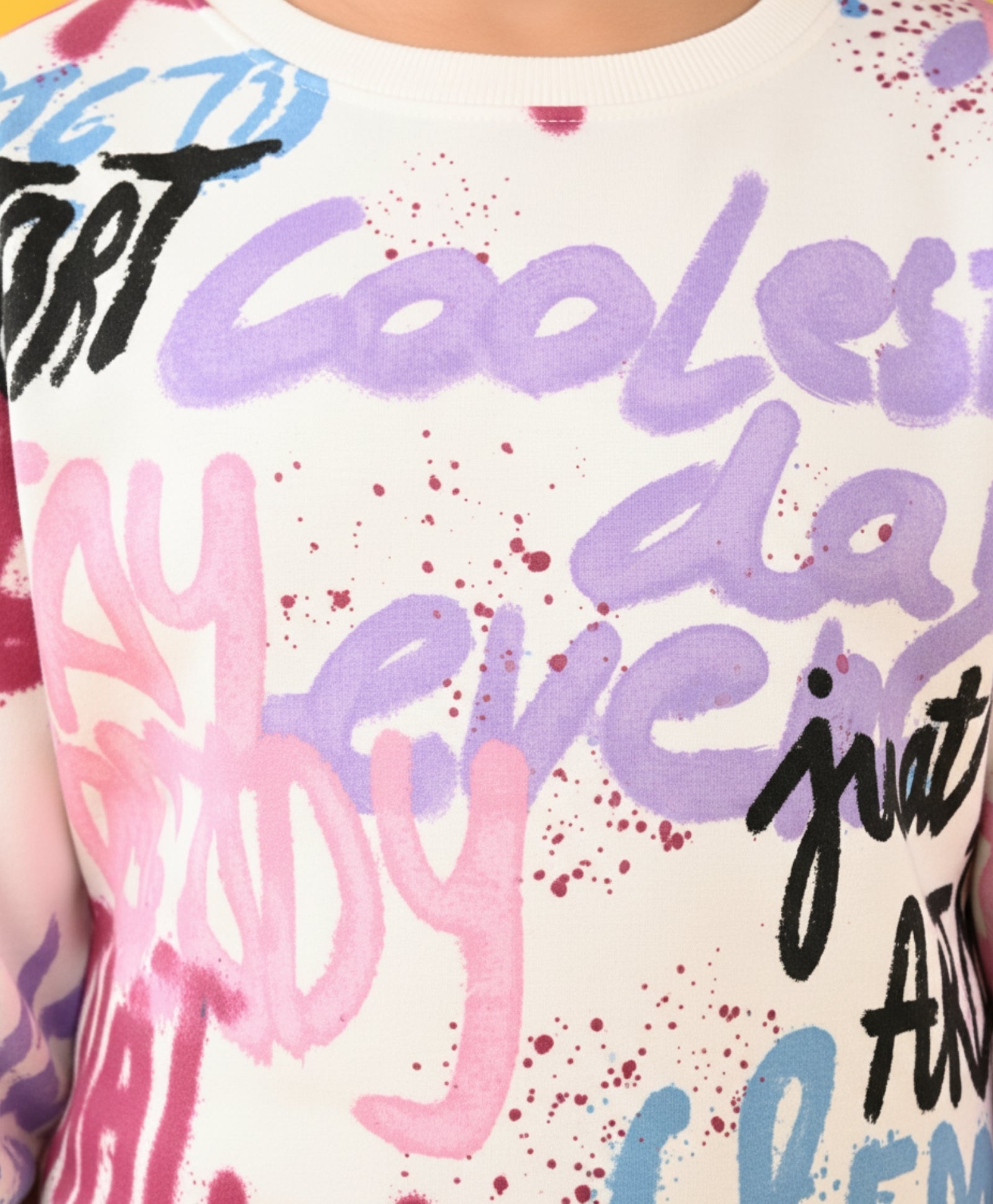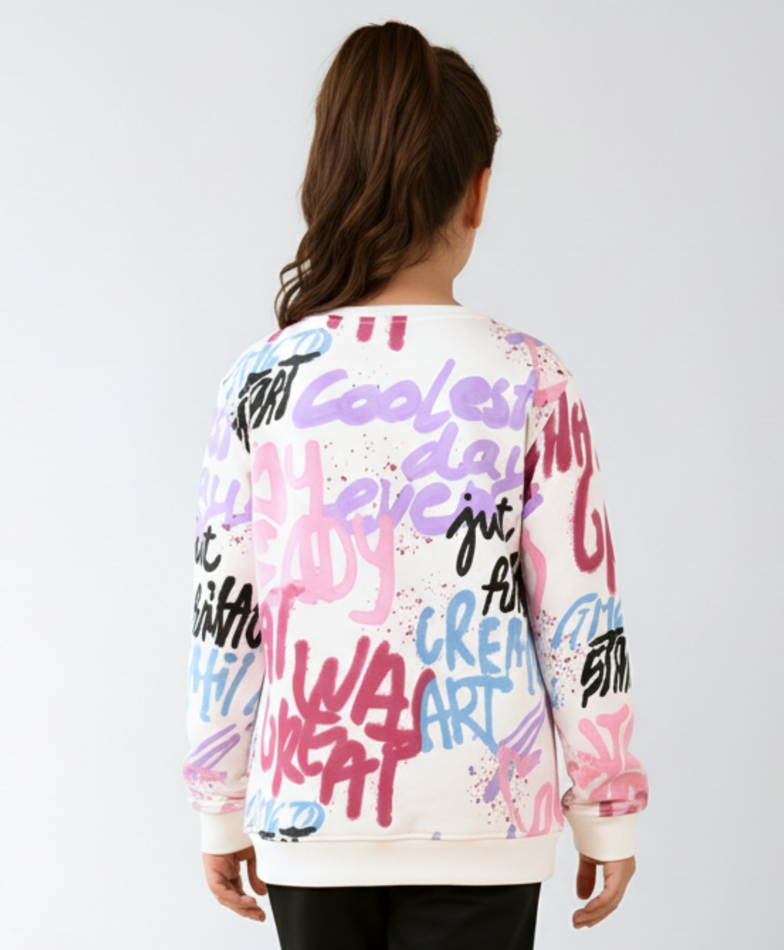 CREATE ART WARM FLEECE GIRLS ROUND NECK SWEATSHIRT - WHITE