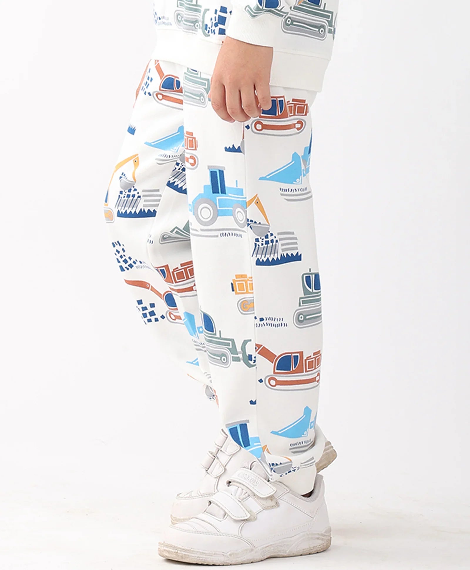 DIGGER PRINT FLEECE BOYS JOGGER - OFF WHITE