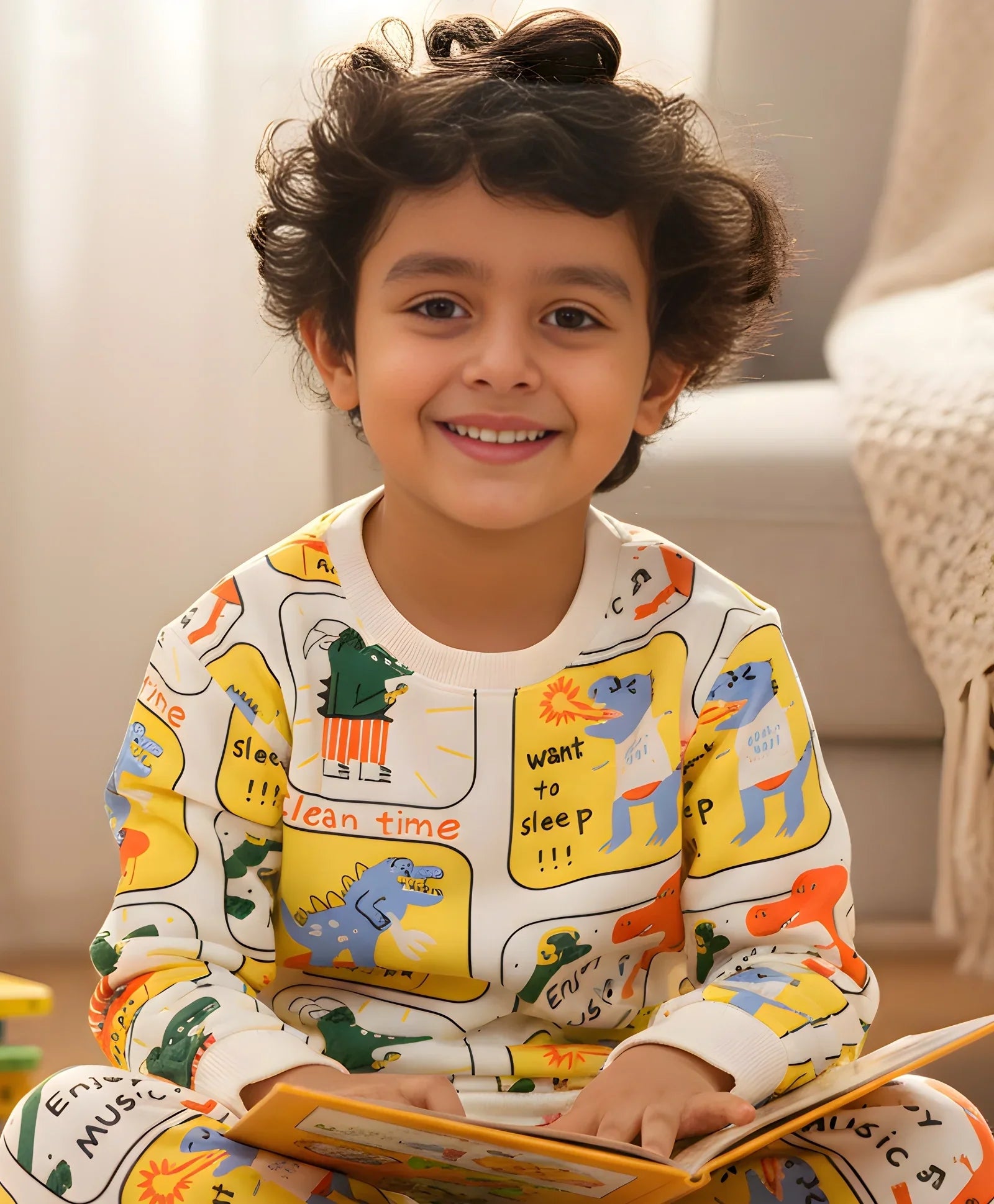 DINOSAUR STAMP FLEECE BOYS SWEATSHIRT - WHITE