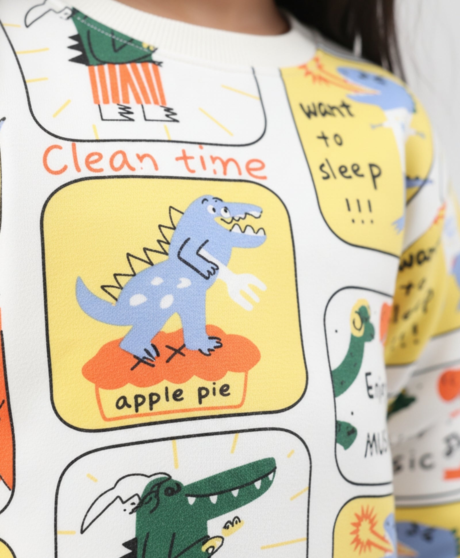 DINOSAUR STAMP FLEECE GIRLS SWEATSHIRT - OFF WHITE
