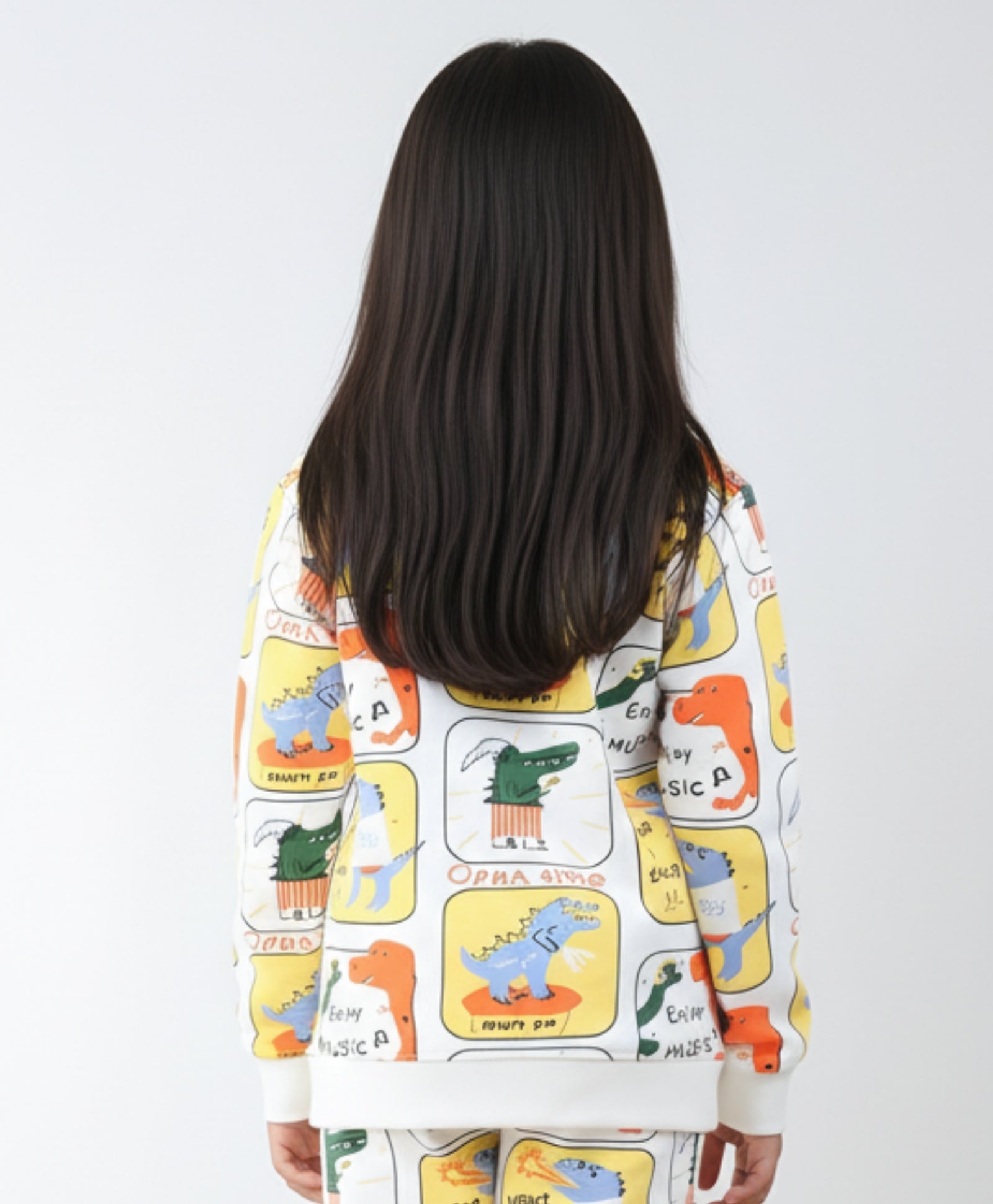 Discover a roar-some layer with the DINOSAUR STAMP FLEECE GIRLS SWEATSHIRT - OFF WHITE! This ultra-cozy fleece top is covered in an awesome, ALL OVER PRINTED collection of vintage-style dinosaur stamps on a creamy off-white base. It locks in warmth with its soft feel, making it the perfect prehistoric piece for spirited play or dino-dreaming.
