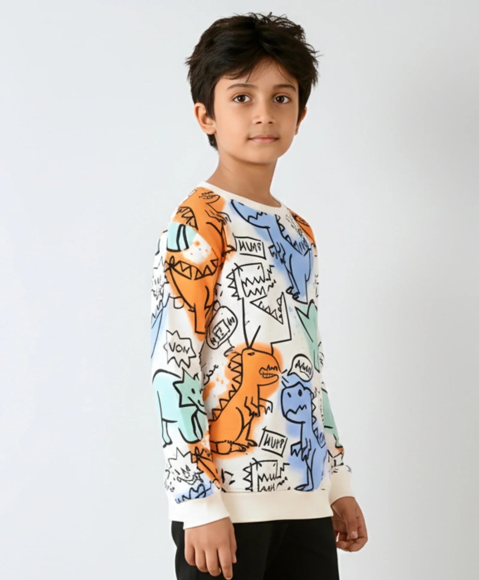 DINOSAUR WOW FLEECE BOYS SWEATSHIRT - WHITE