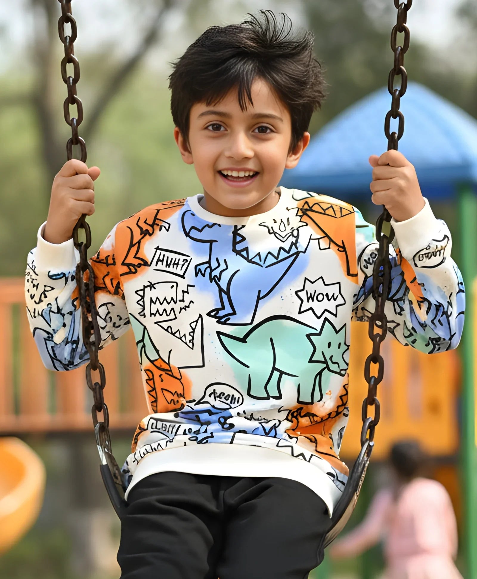The Dinosaur Wow Fleece Boys Sweatshirt in white is perfect for little dinosaur enthusiasts. Adorned with exciting dino graphics, this sweatshirt is made from soft fleece that keeps boys warm and comfortable. Its playful design makes it a fun addition to any outfit, whether they’re exploring or relaxing. Ideal for cool days and adventurous play.