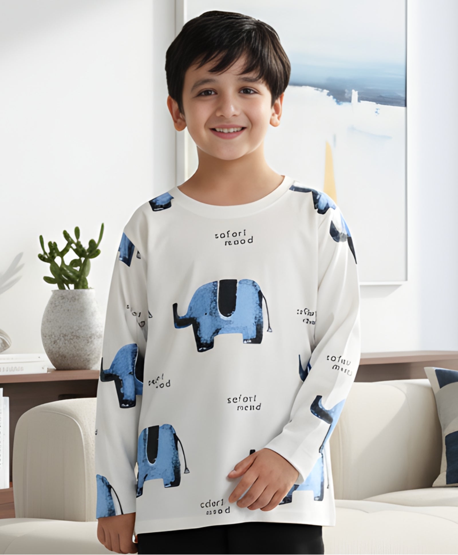 Introduce charm and playfulness to your child’s wardrobe with the Anthrilo Elephant Print Long Sleeve T‑Shirt in Off White. This stylish tee features a friendly elephant graphic printed boldly on a soft off‑white base, perfect for casual wear or fun outings. Crafted with care, this shirt balances comfort, durability, and looks.