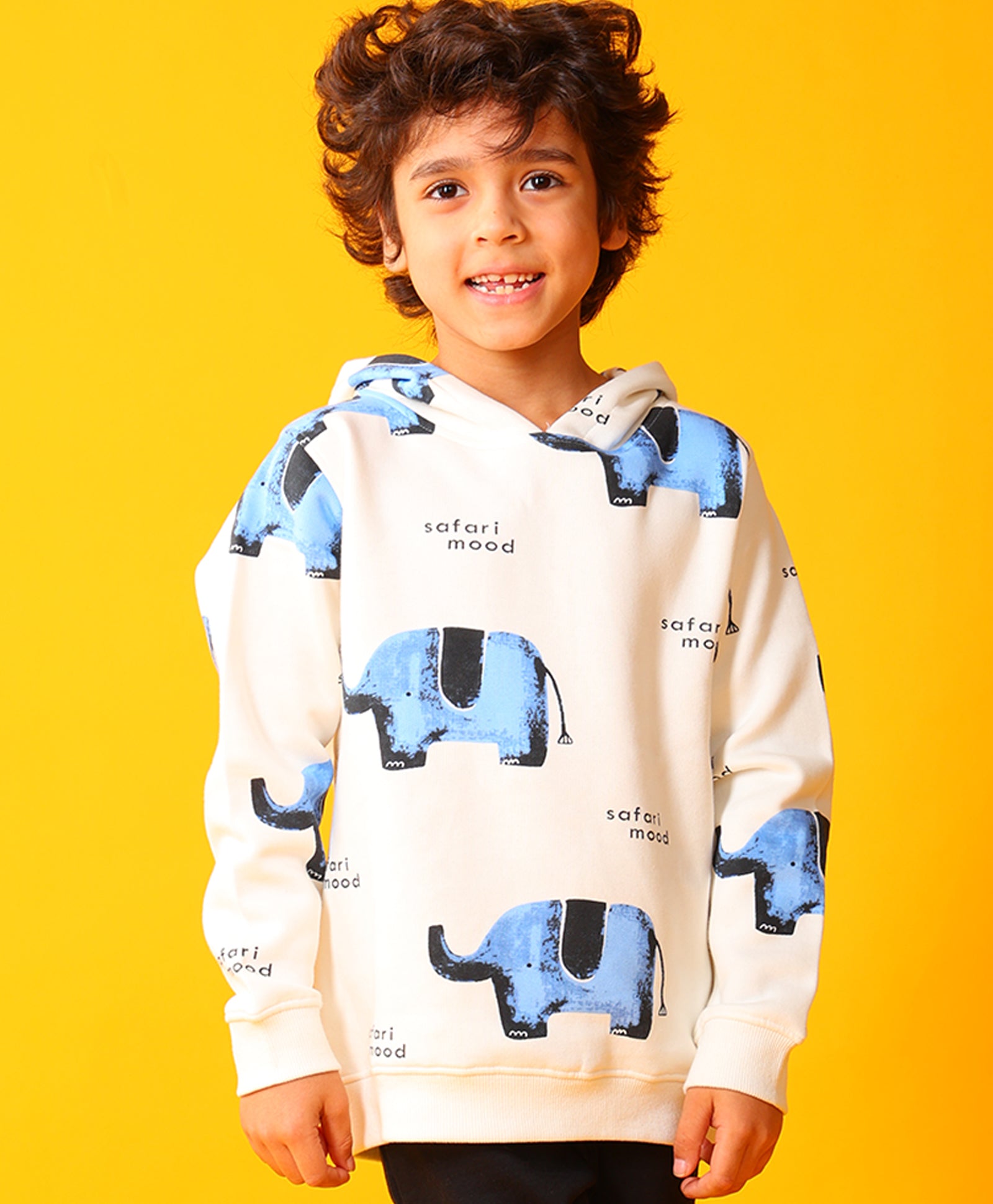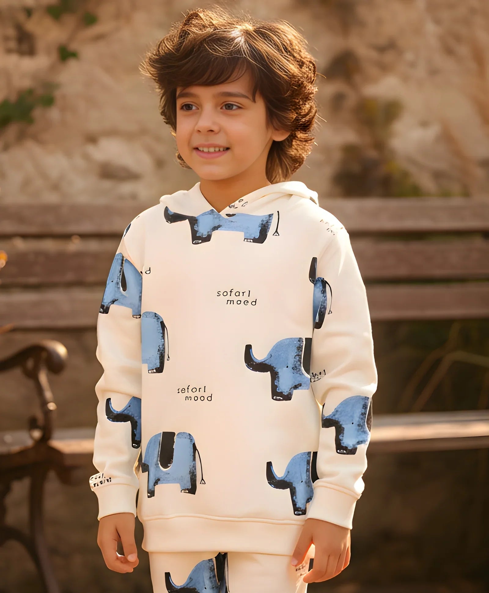 ELEPHANT SAFARI FLEECE HOODIE -OFF WHITE