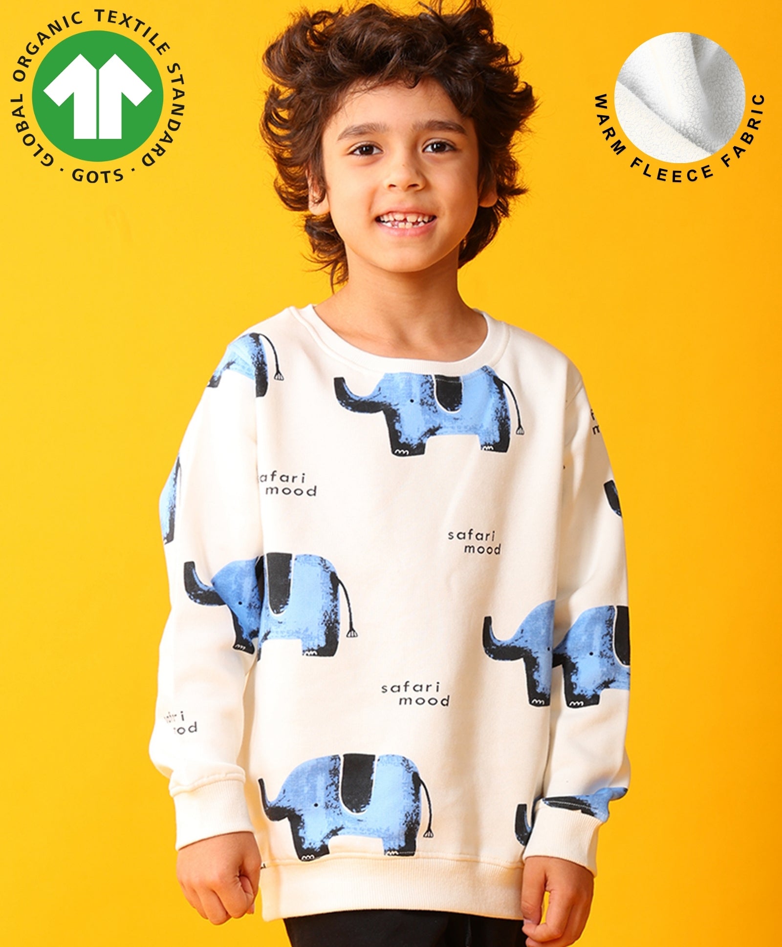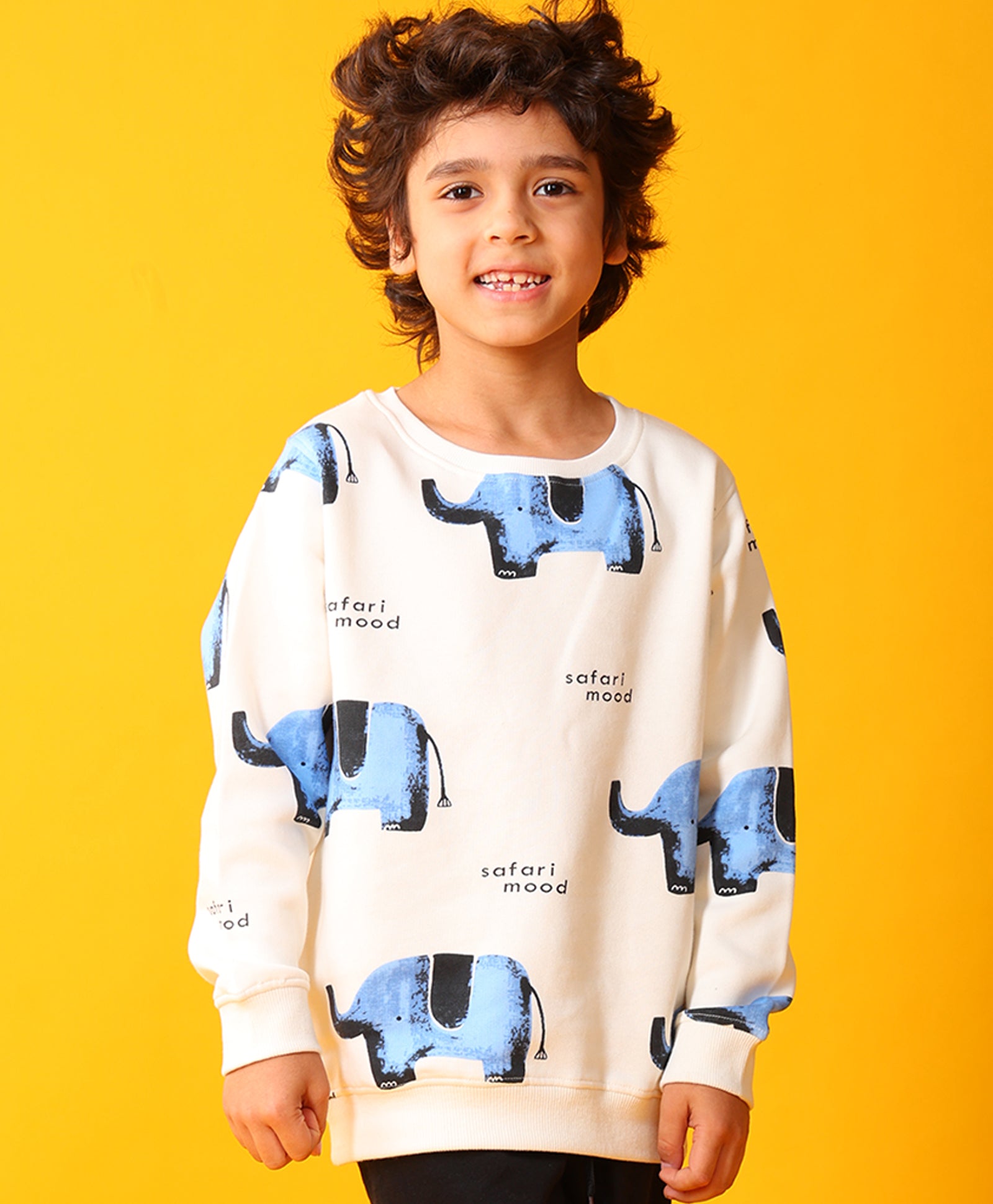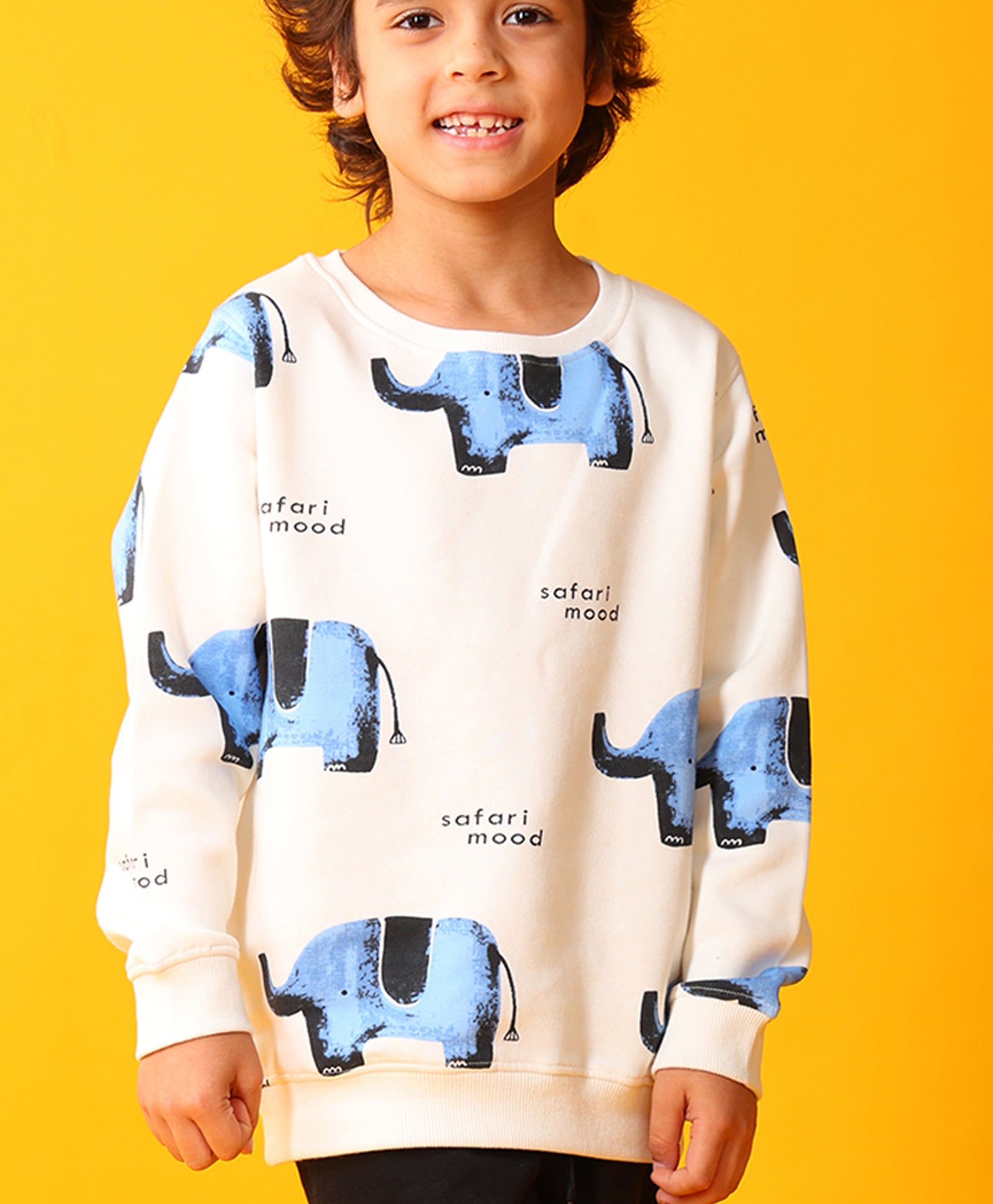 ELEPHANT SAFARI FLEECE SWEATSHIRT -OFF WHITE
