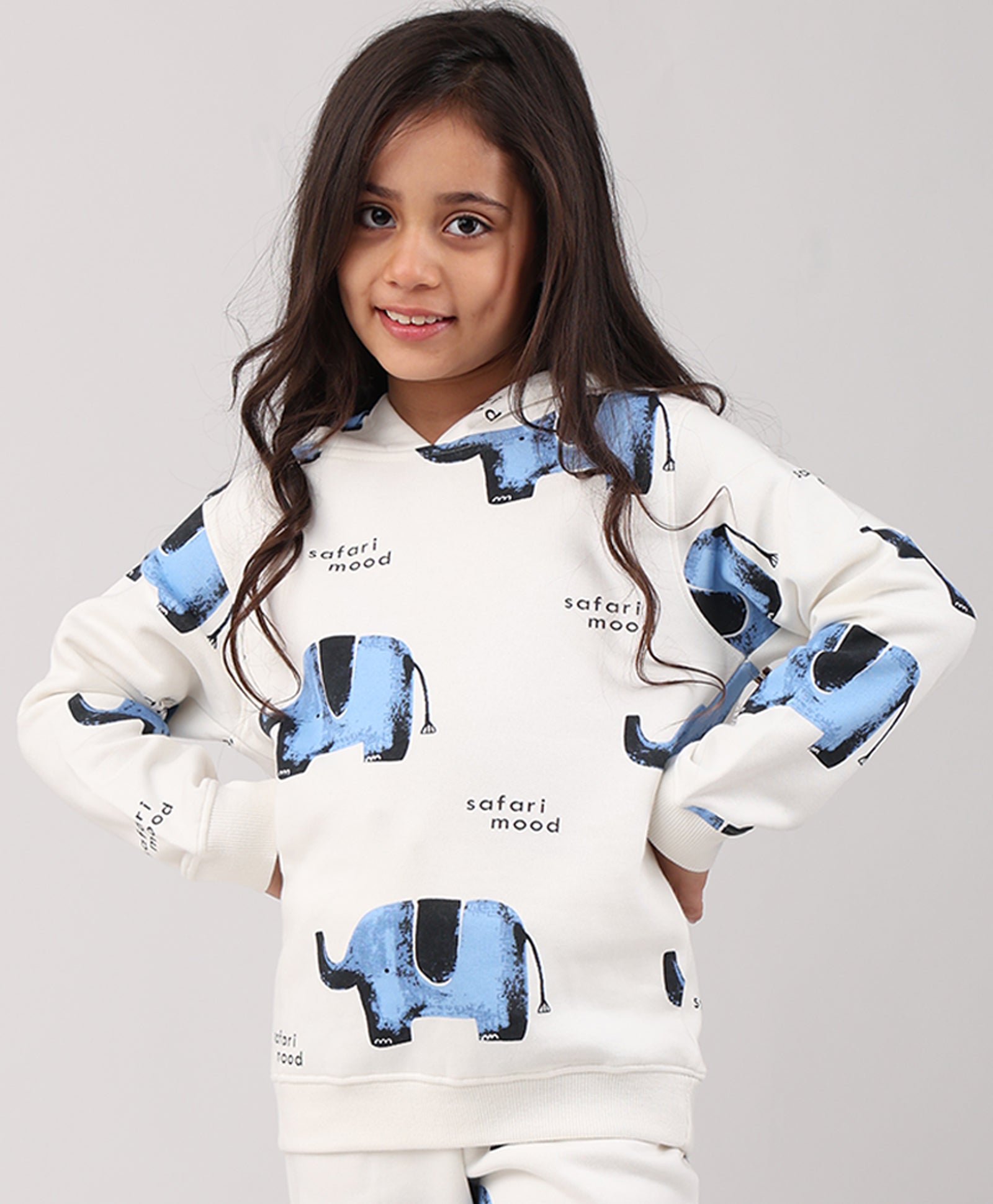 ELEPHANT SAFARI GIRLS FLEECE HOODIE - WHITE