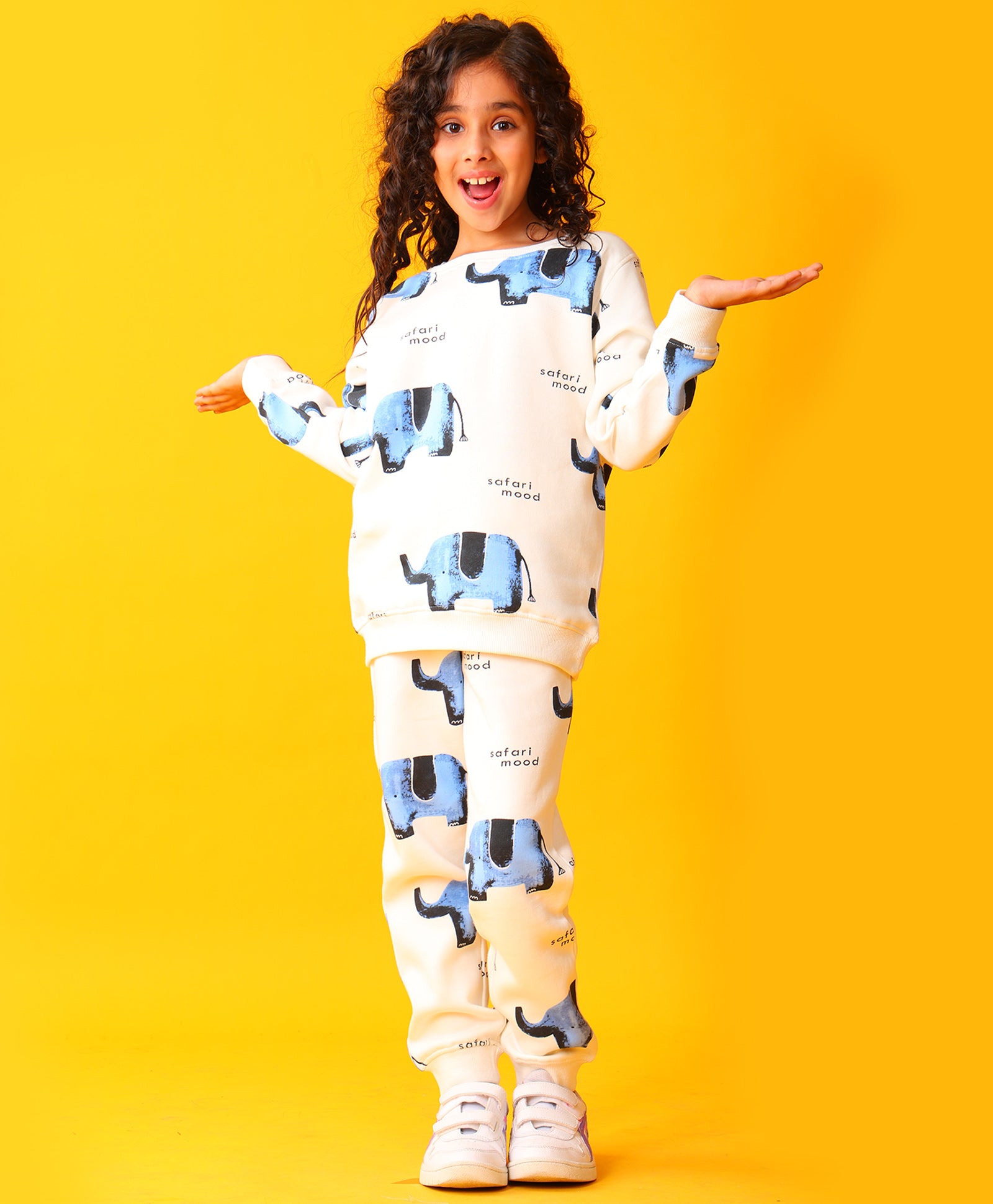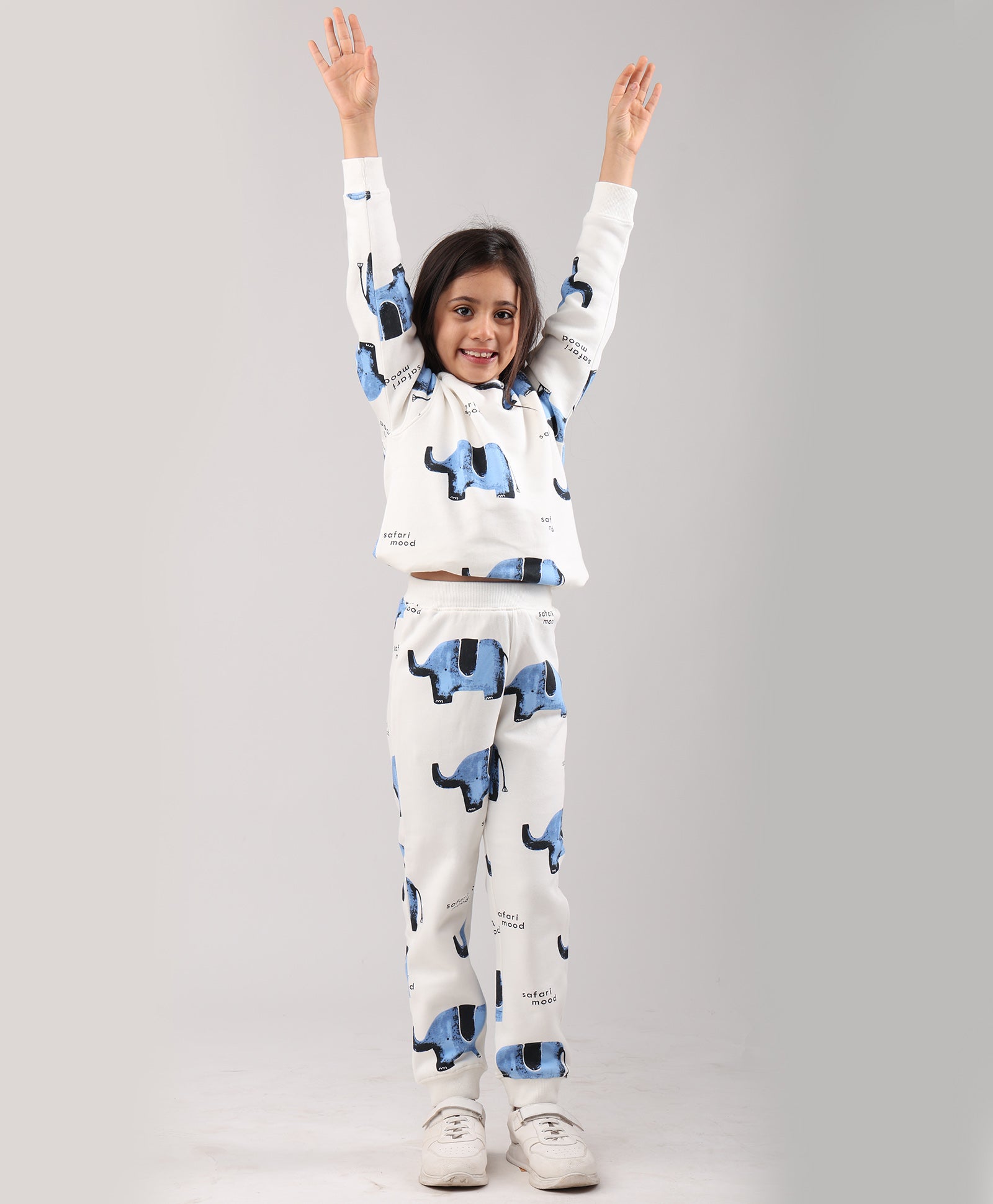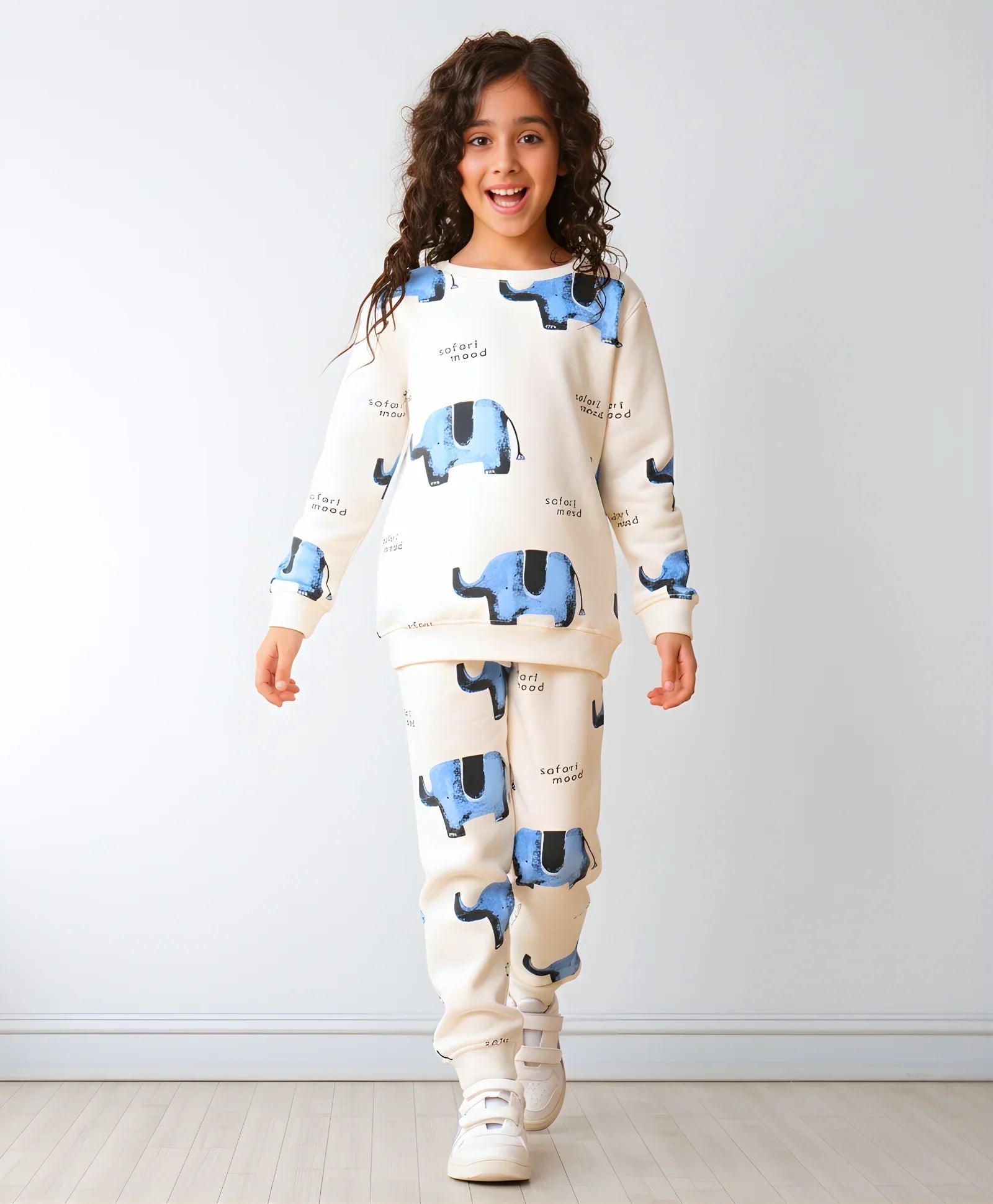 ELEPHANT SAFARI GIRLS FLEECE SWEATSHIRT JOGGER SET - WHITE