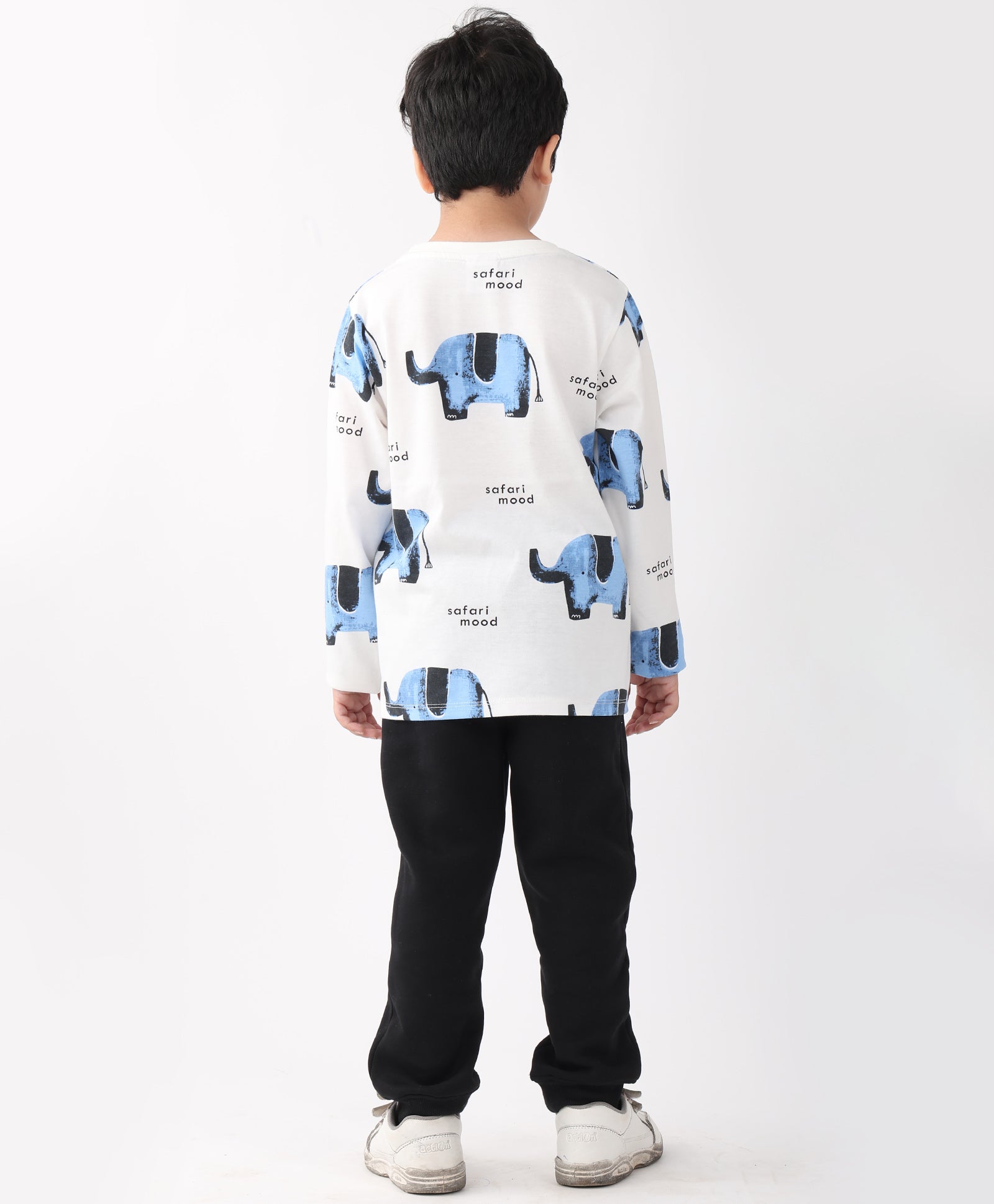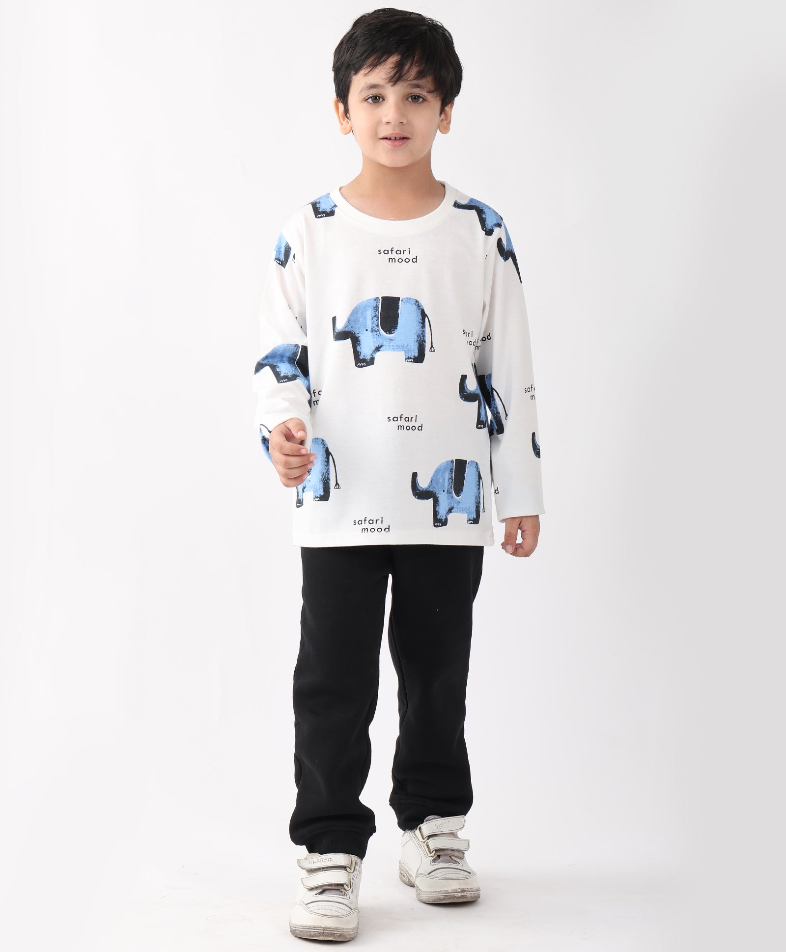 ELEPHANT SAFARI LONG SLEEVE T-SHIRT FLEECE JOGGER SET - WHITE/BLACK
