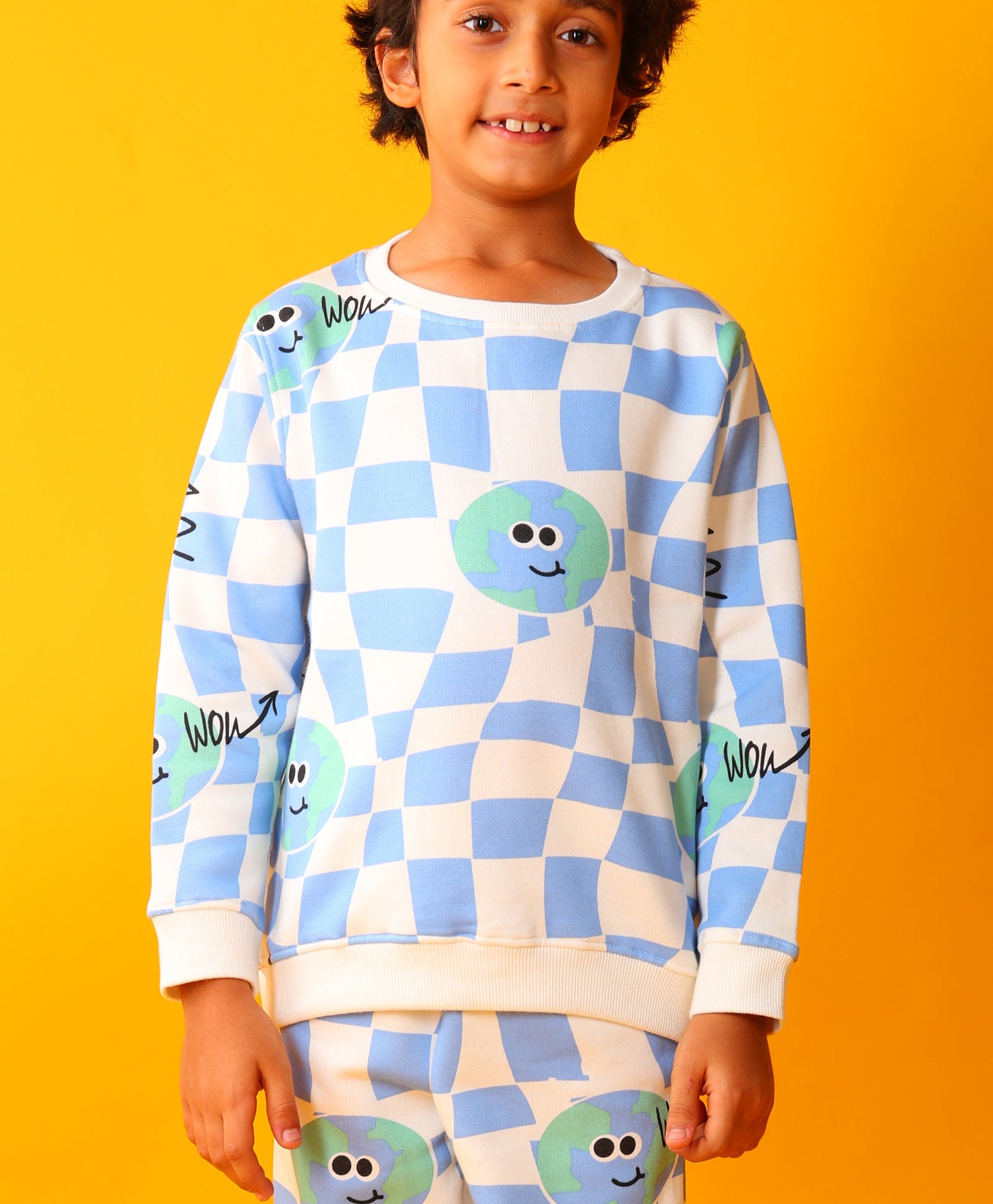 GLOBE CHECK BOYS FLEECE SWEATSHIRT - BLUE