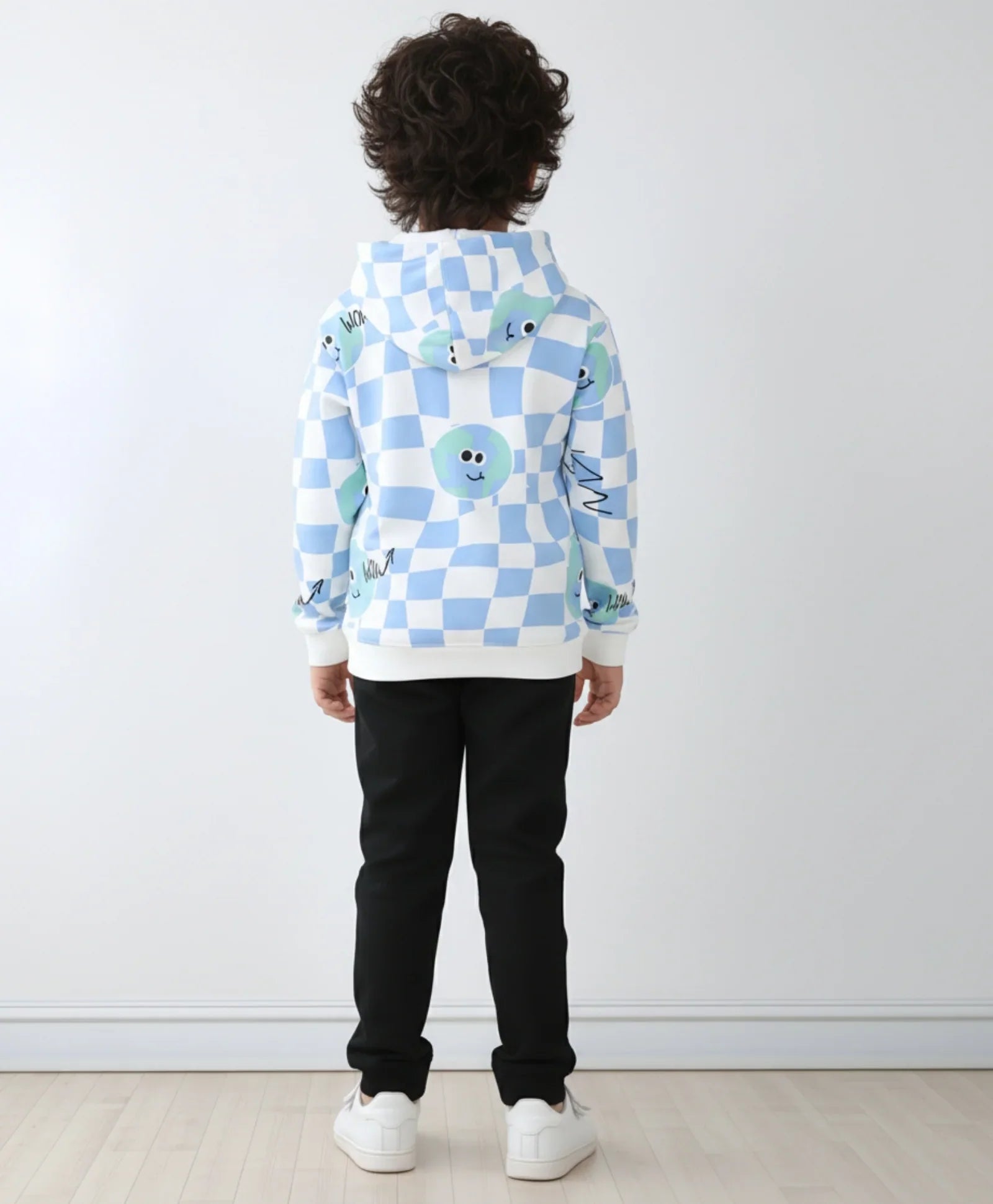 Keep your little one warm and stylish with the Globe Check Fleece Boys Hoodie and Black Jogger Set. The off-white hoodie features a trendy globe check pattern, perfectly paired with black joggers for a cool, casual look. Made from soft fleece fabric, this set offers comfort, warmth, and easy movement—ideal for school, play, or outdoor fun.