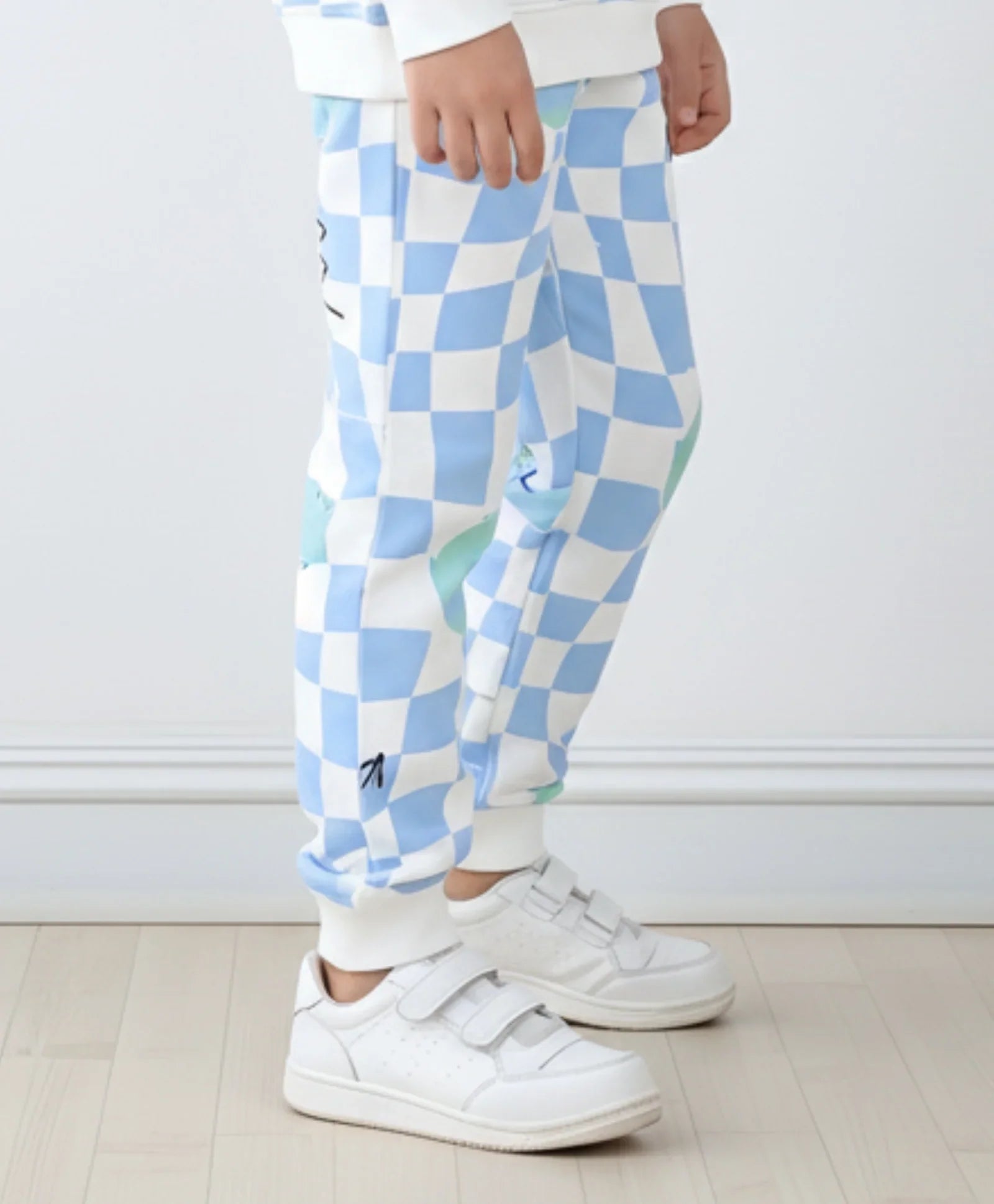 GLOBE CHECK GIRLS FLEECE JOGGER - BLUE