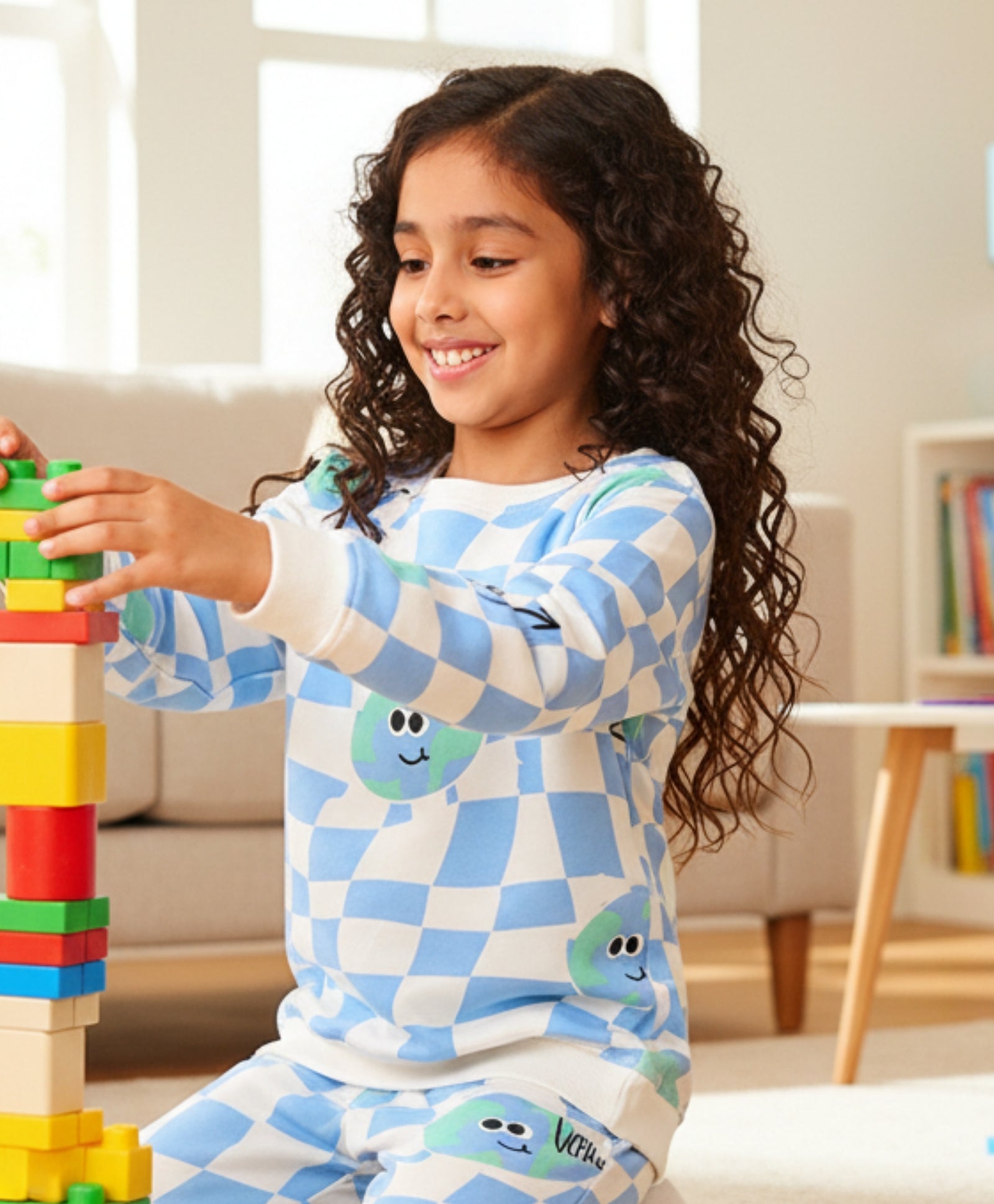 GLOBE CHECK GIRLS FLEECE SWEATSHIRT - BLUE