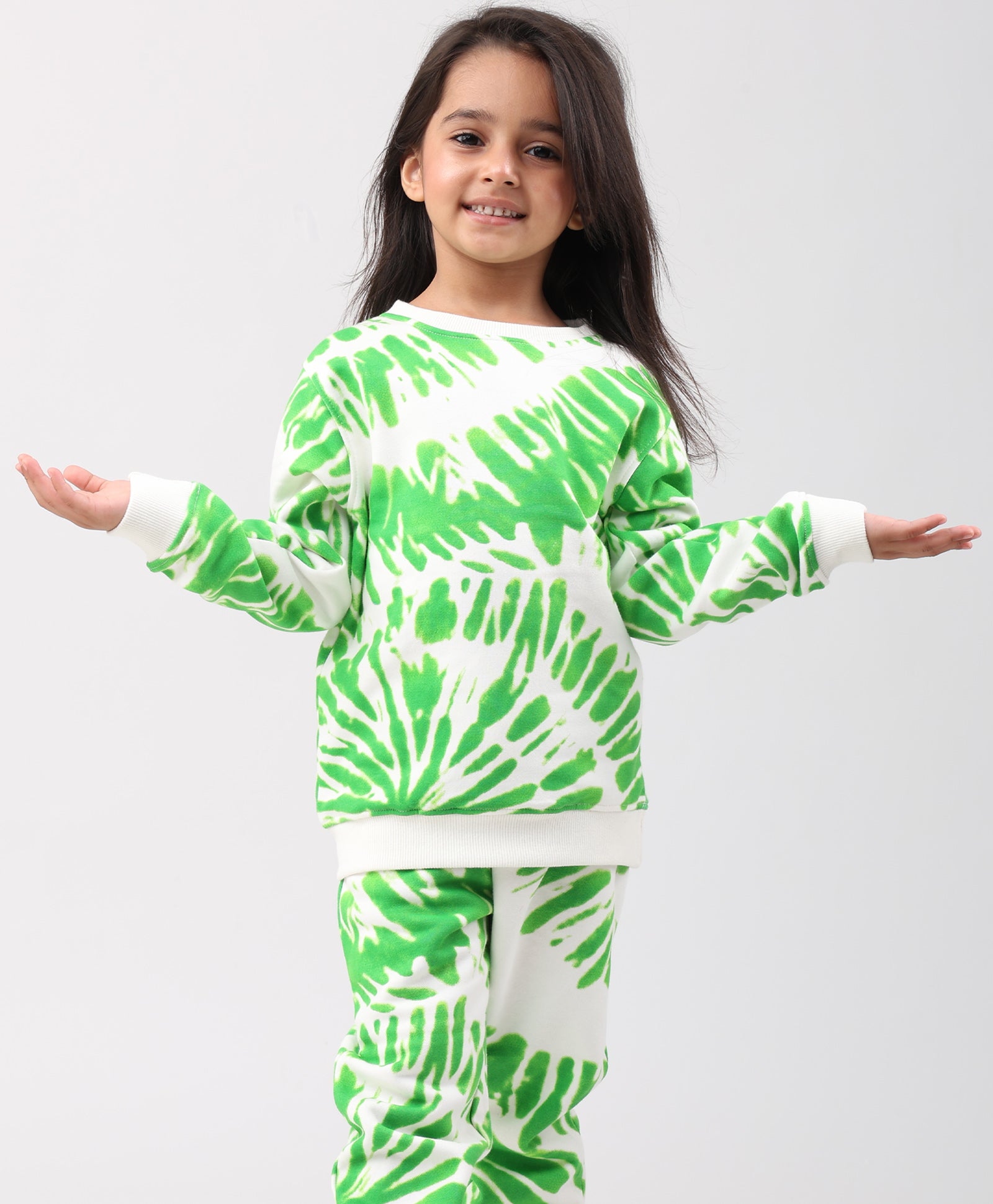 GREEN SWIRL GIRLS FLEECE SWEATSHIRT - GREEN